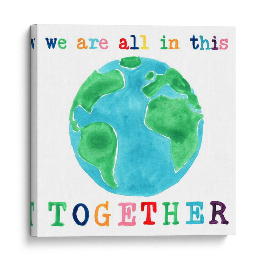 Celebra la unidad global con "Arco Iris Espero II", una obra de arte vibrante y emotiva de June Erica Vess. Este cuadro decorativo captura la esencia de nuestro planeta Tierra, representado con trazos de acuarela que evocan un espíritu optimista y esperanzador. La paleta de colores, dominada por azules serenos y verdes vivos para el globo terráqueo, contrasta armoniosamente con el texto "we are all in this TOGETHER" escrito en un arco iris de tonalidades alegres y cálidas. Cada letra, en colores distintos, refuerza el mensaje de diversidad y unión, haciendo de esta pieza un símbolo poderoso de solidaridad y conexión. Su estilo, cercano al arte naïf o infantil por su simplicidad y calidez, la convierte en una adición encantadora para cualquier espacio que busque transmitir un mensaje positivo. Imagina este cuadro decorativo añadiendo un toque de color y optimismo a tu sala de estar, oficina o dormitorio. "Arco Iris Espero II" no es solo una pieza decorativa, sino un recordatorio diario de nuestra interconexión y la belleza de la comunidad. Ideal para quienes buscan arte inspirador y lleno de significado que resuene con valores universales de esperanza y colaboración.