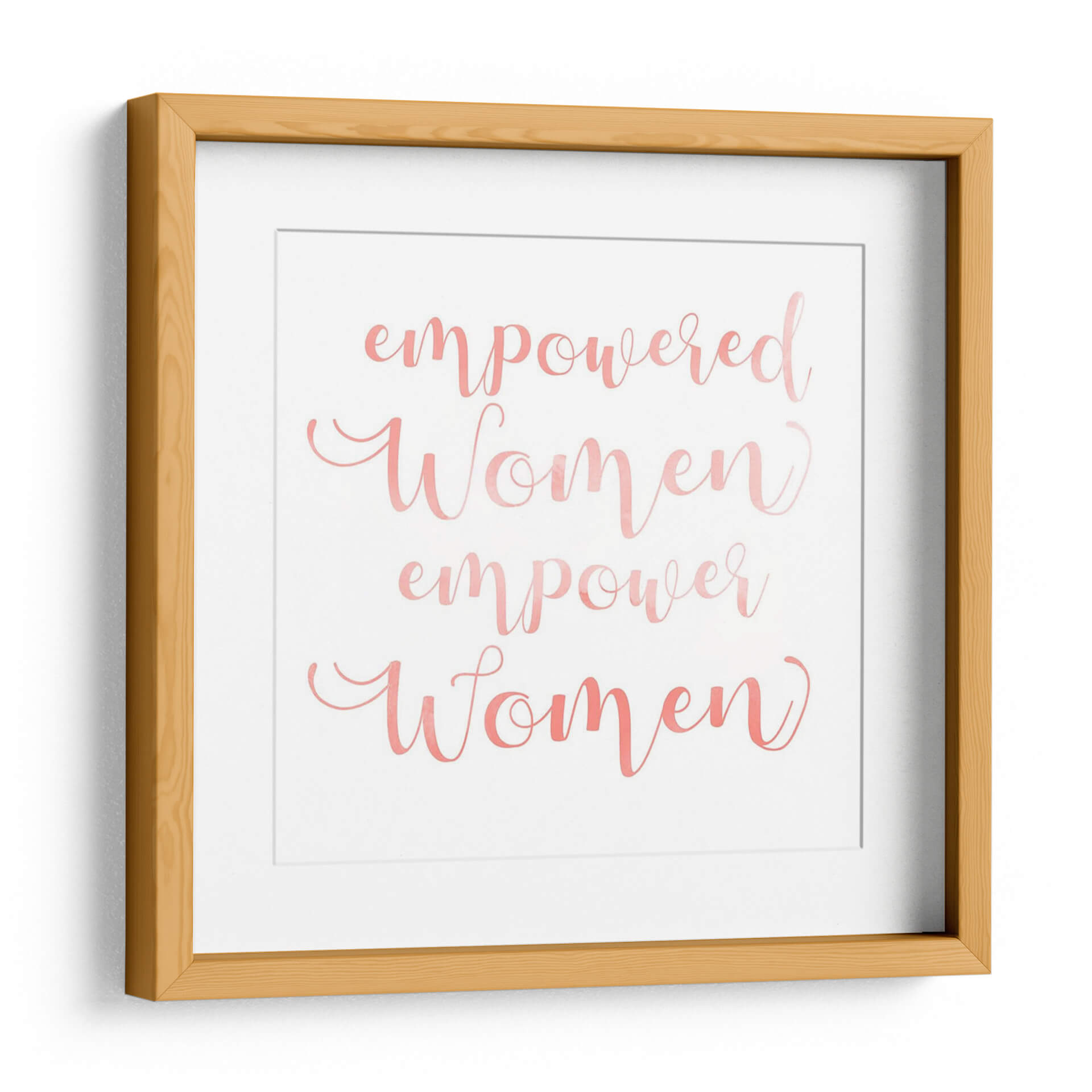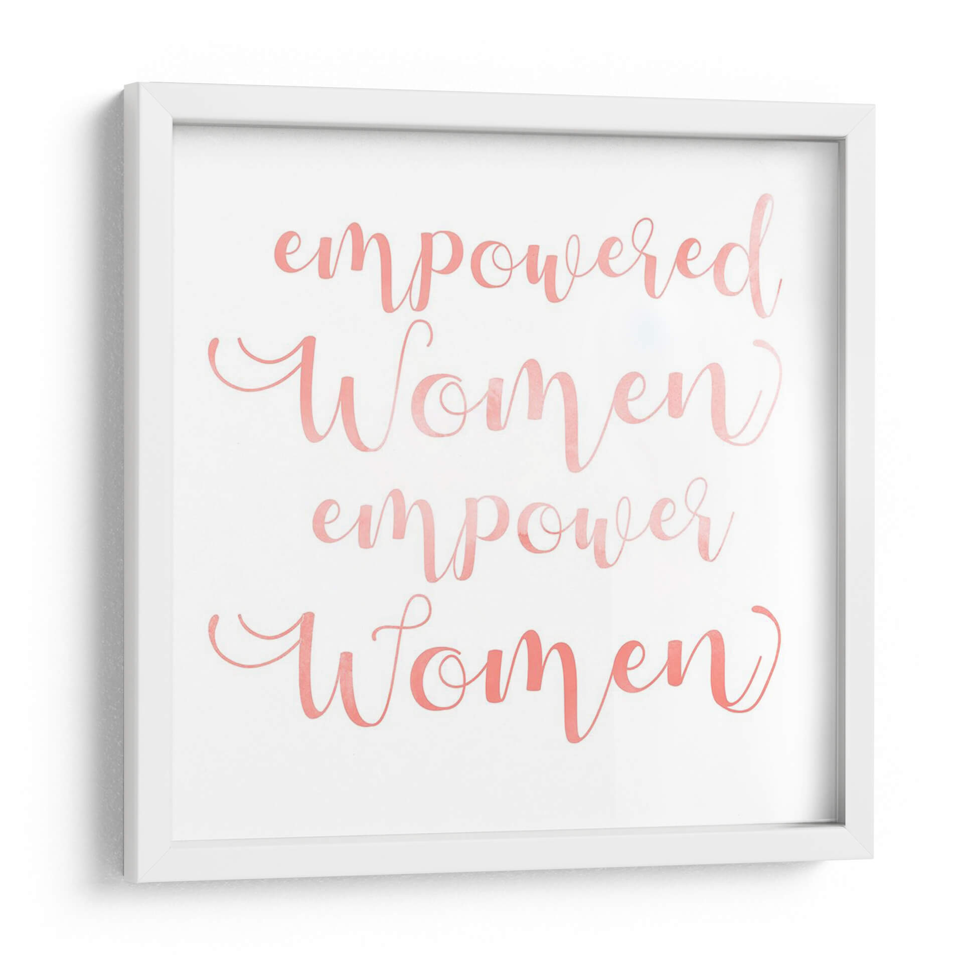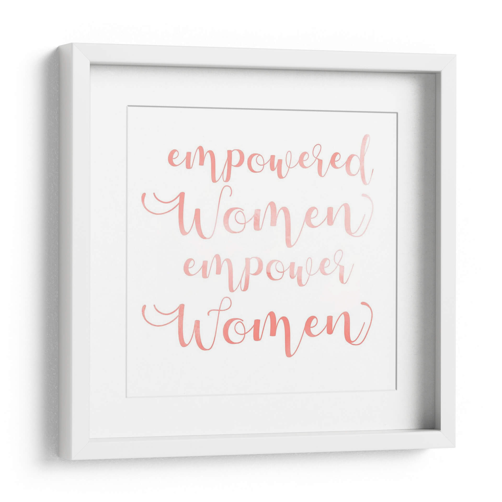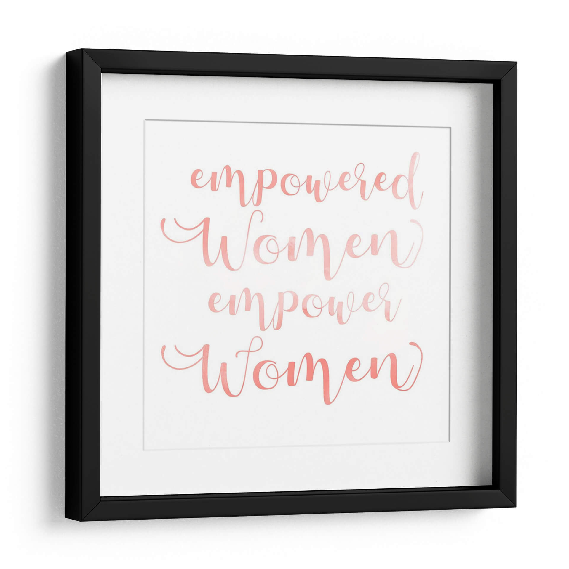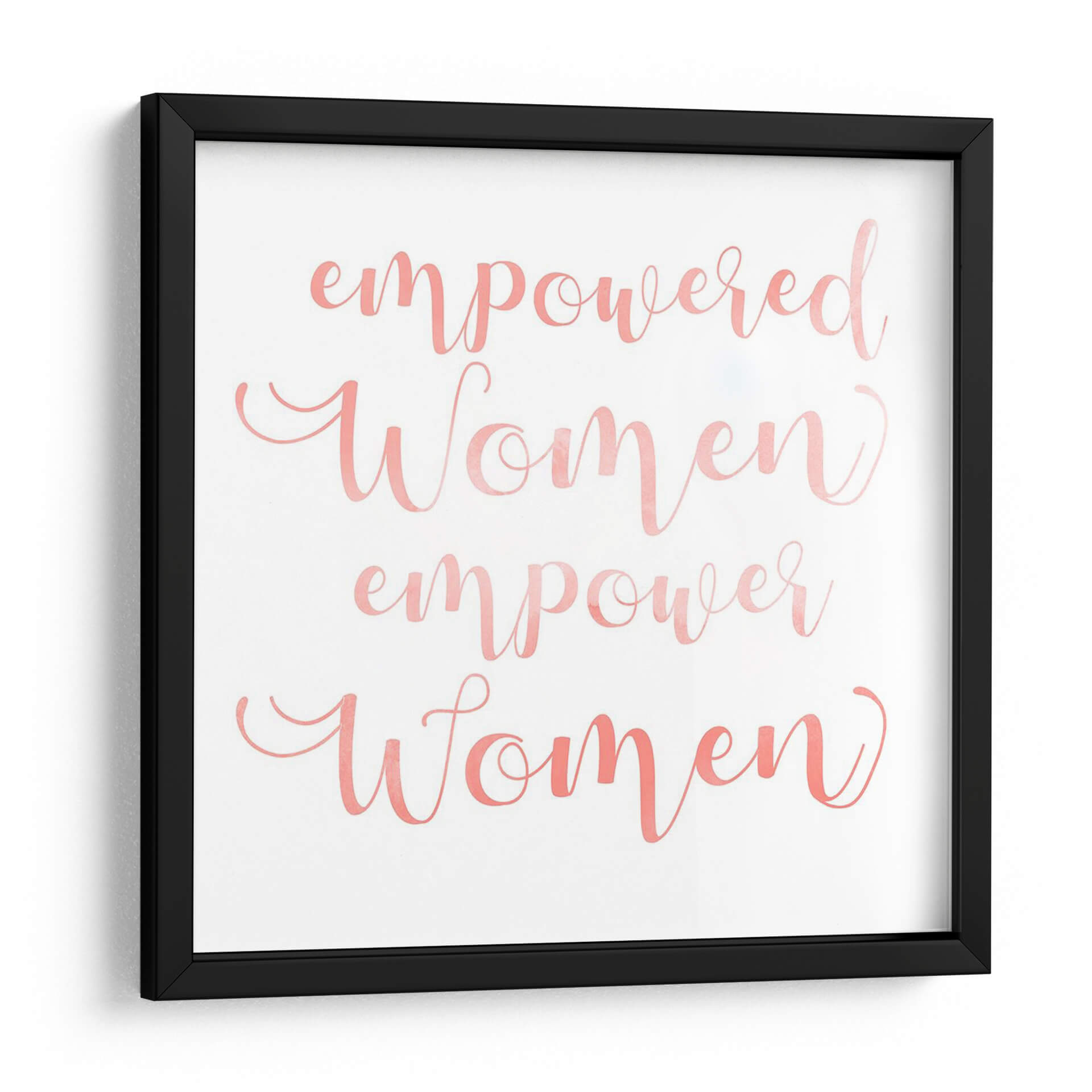 Inyecta inspiración y empoderamiento en tu espacio con el cuadro decorativo "Asesoramiento Femenino II" de Grace Popp. Esta obra de arte presenta una poderosa declaración escrita con una elegante caligrafía en tonos coral sobre un fondo blanco nítido. Las palabras "Empowered Women empower Women" (Mujeres empoderadas empoderan a mujeres) no solo adornan la pared, sino que también transmiten un mensaje universal de apoyo y fortaleza femenina. La delicadeza de la tipografía, reminiscente de una acuarela suave, aporta un toque de sofisticación y calidez, haciendo que esta pieza sea ideal para cualquier ambiente que busque una dosis de positividad y elegancia. Su estilo minimalista y el vibrante pero sutil mensaje la convierten en una adición perfecta para oficinas, estudios, dormitorios o cualquier rincón que necesite un recordatorio inspirador. El contraste entre la claridad del fondo y la expresividad de las letras crea una composición visualmente atractiva que atrae la mirada y el corazón. Este cuadro es más que una simple decoración; es una declaración de principios, un símbolo de unidad y un estímulo diario para alcanzar metas. Añade este lienzo lleno de significado a tu hogar u oficina y celebra el poder de la conexión femenina.