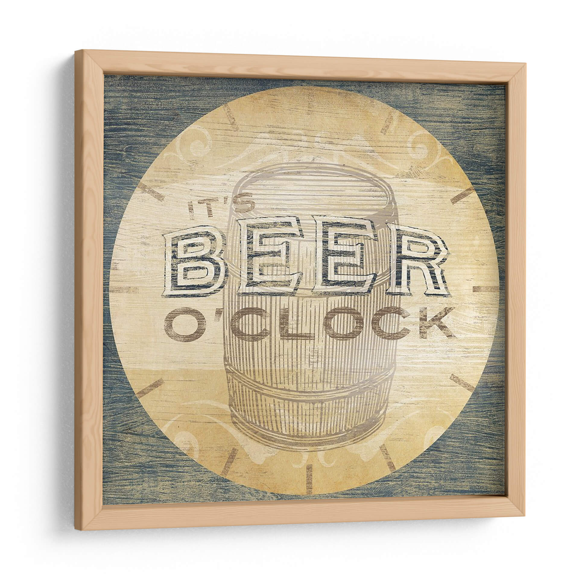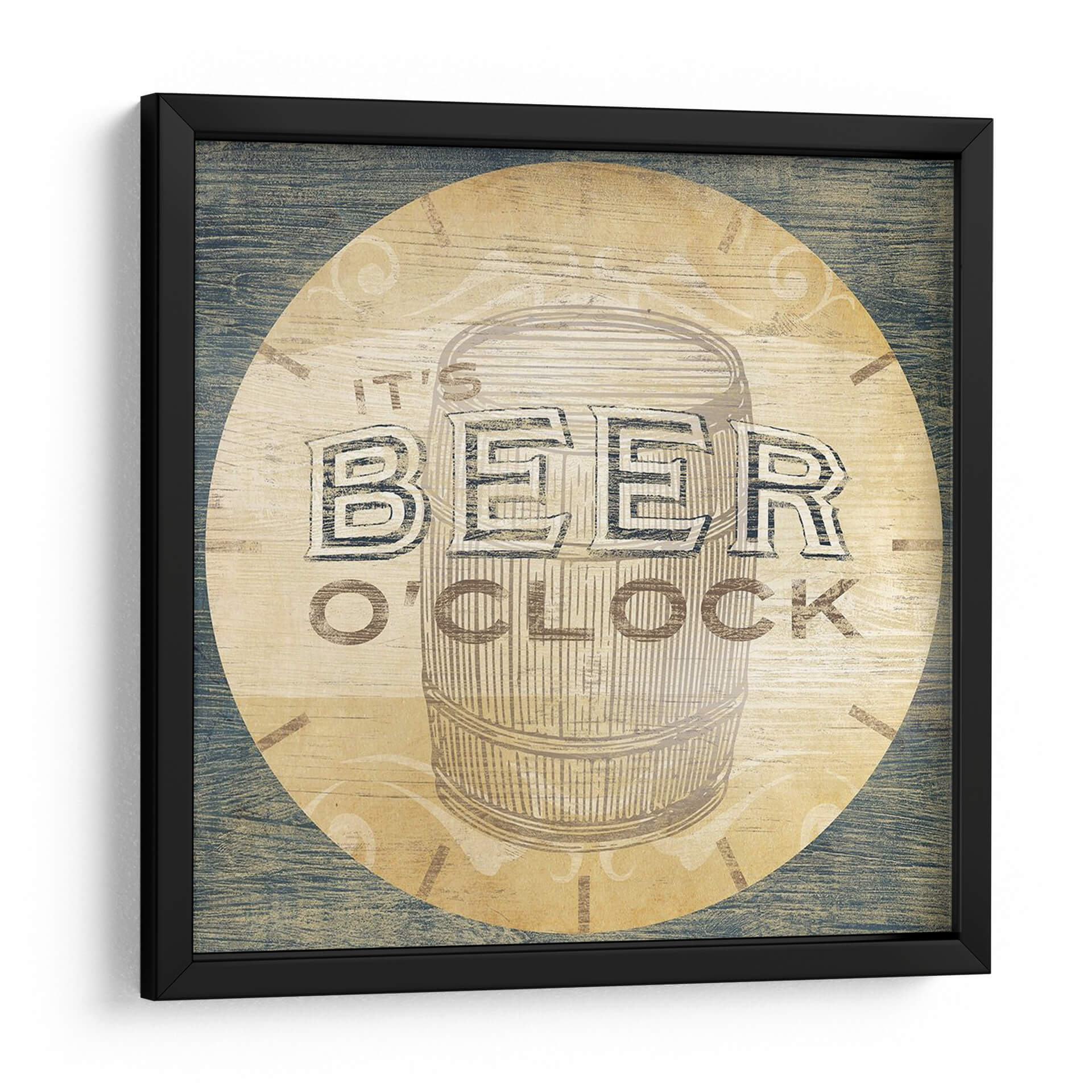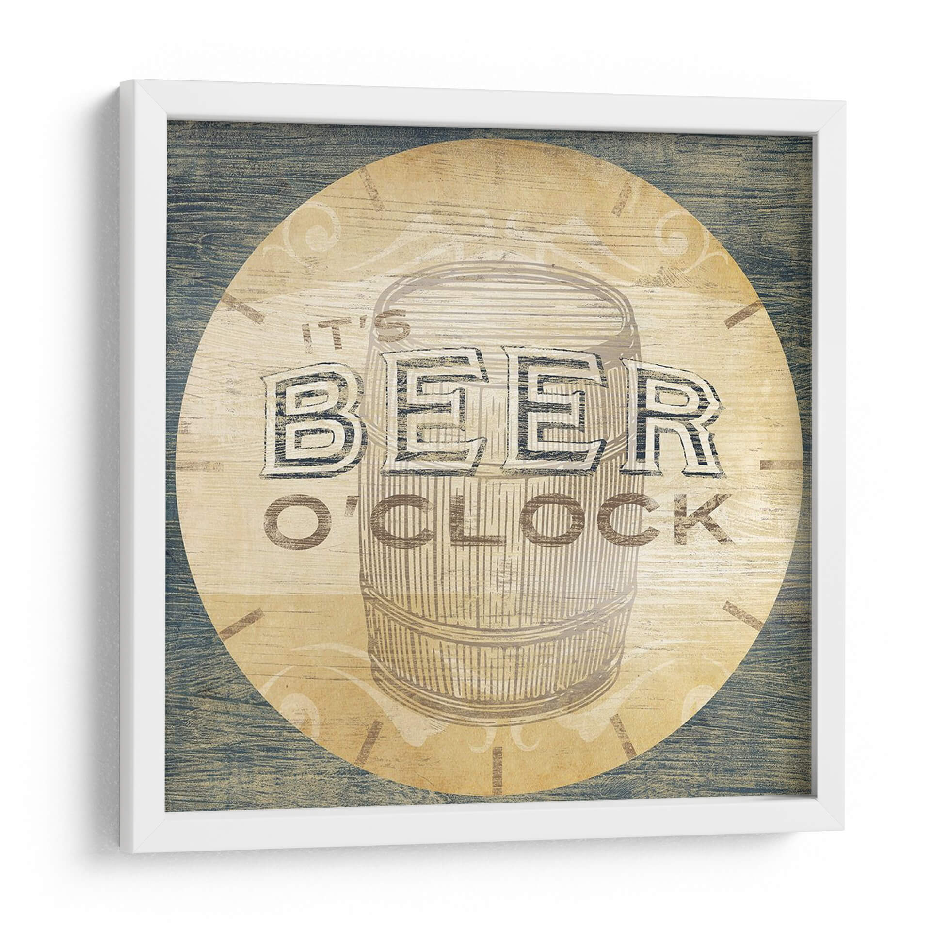 Captura la esencia de la diversión y la relajación con este llamativo cuadro decorativo 'Bebida Oclock Iii' de June Erica Vess. La obra presenta una representación estilizada de un barril de cerveza, con la frase icónica "It's Beer O'Clock" integrada de manera audaz y atractiva. La paleta de colores se centra en tonos cálidos de beige y madera, contrastando con el azul rústico del fondo y las letras en un tono grisáceo, creando una atmósfera acogedora y nostálgica. El estilo, con un toque vintage y un acabado que simula madera texturizada, evoca una sensación de camaradería y disfrute. Este cuadro es ideal para dar vida a espacios como bares en casa, salas de juegos, o cualquier rincón donde se celebre la buena compañía y los momentos de ocio. Su diseño único y temático lo convierte en un punto focal perfecto para conversaciones y en una expresión de un estilo de vida desenfadado y social. Añade un toque de personalidad y buen humor a tu decoración con esta pieza que celebra los buenos momentos.