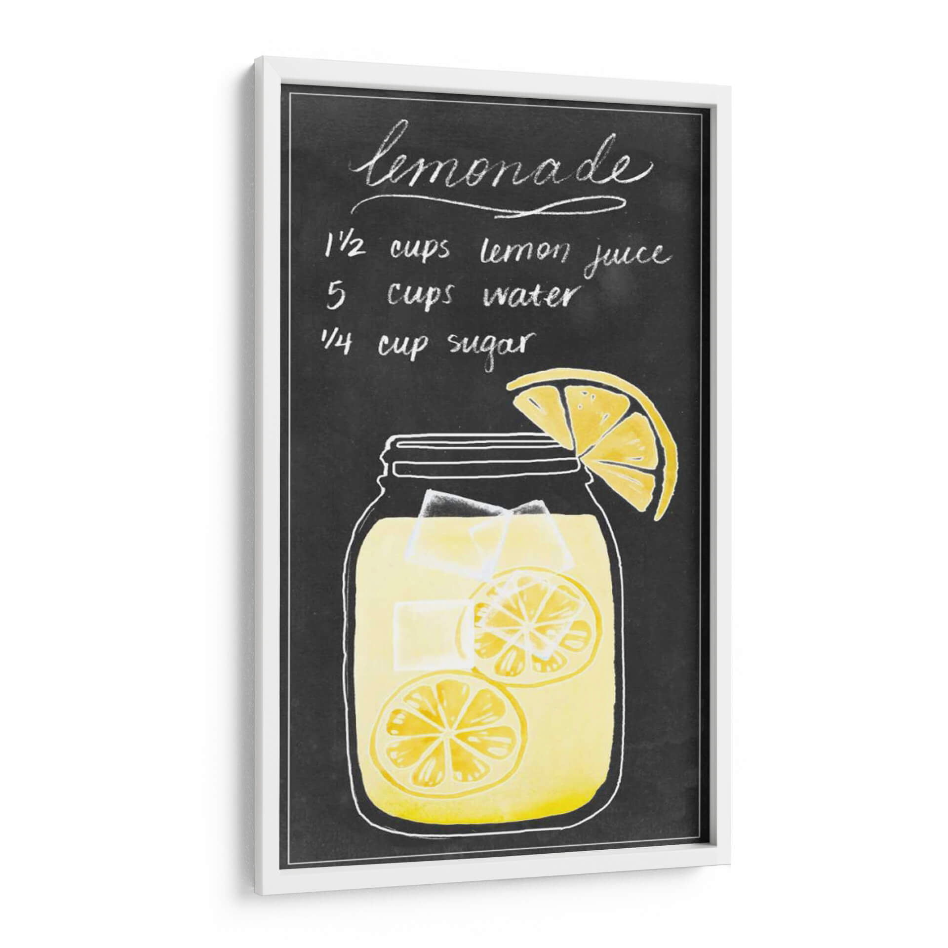 Transforma tu espacio con el cuadro decorativo "Bebidas De Verano Ii" de Grace Popp, una pieza que evoca la frescura y la alegría del verano. Esta obra captura la esencia de un refrescante vaso de limonada, presentado sobre un fondo que simula una pizarra, con la receta escrita a mano en tiza blanca. La paleta de colores se centra en vibrantes tonos amarillos y blancos, contrastando con el oscuro fondo para crear un efecto visual llamativo y apetitoso. El estilo, que combina elementos de ilustración y tipografía, aporta un toque lúdico y nostálgico, ideal para cocinas, comedores o cualquier rincón que necesite un toque de sol y vitalidad. Imagina cómo esta pieza puede ser el punto focal de tu decoración, invitando a la conversación y añadiendo un ambiente ligero y optimista a tu hogar u oficina. Es la elección perfecta para quienes buscan añadir personalidad y un aire desenfadado a su entorno, recordando los placeres sencillos de un día caluroso y una bebida deliciosa. Añade un toque de dulzura y color con este encantador cuadro decorativo que celebra el espíritu del verano durante todo el año.