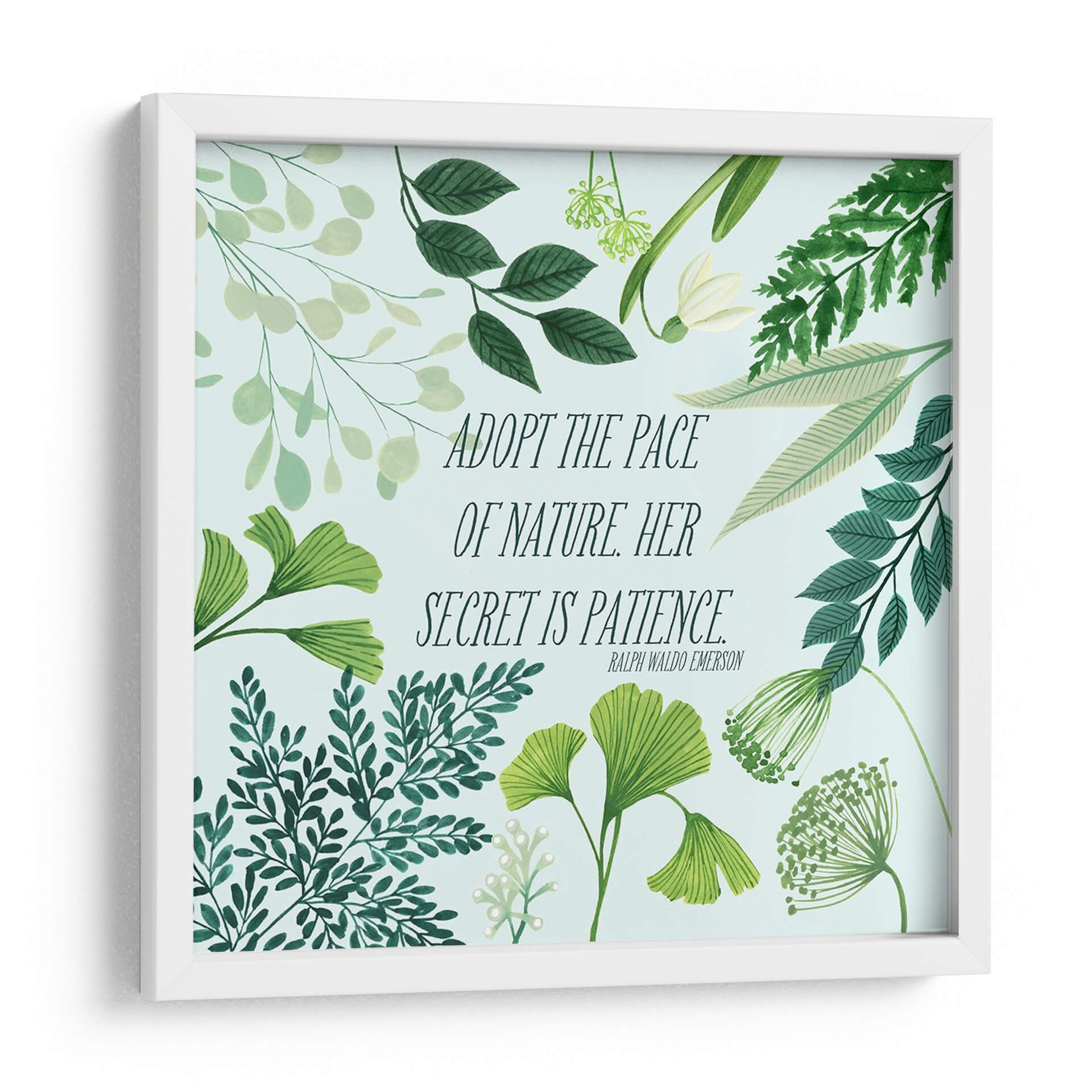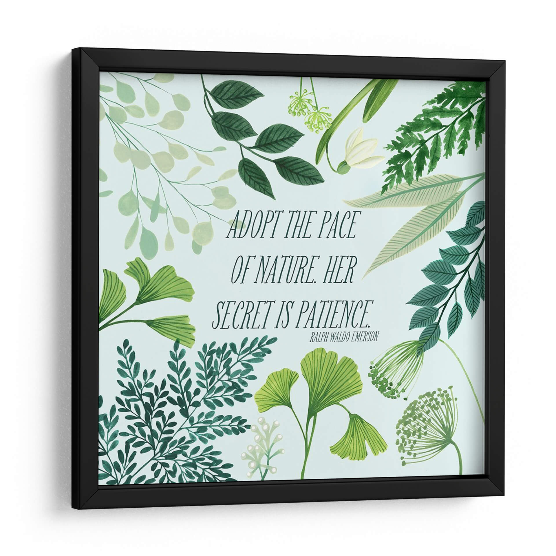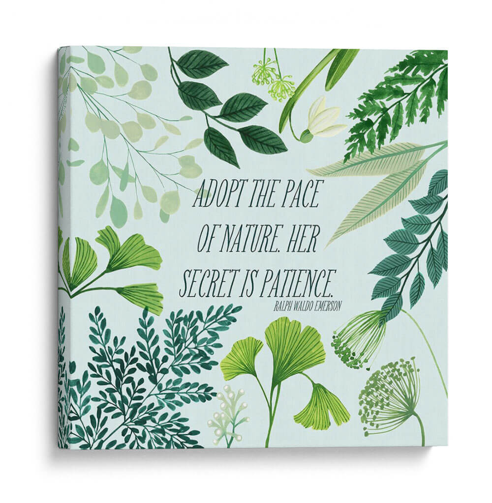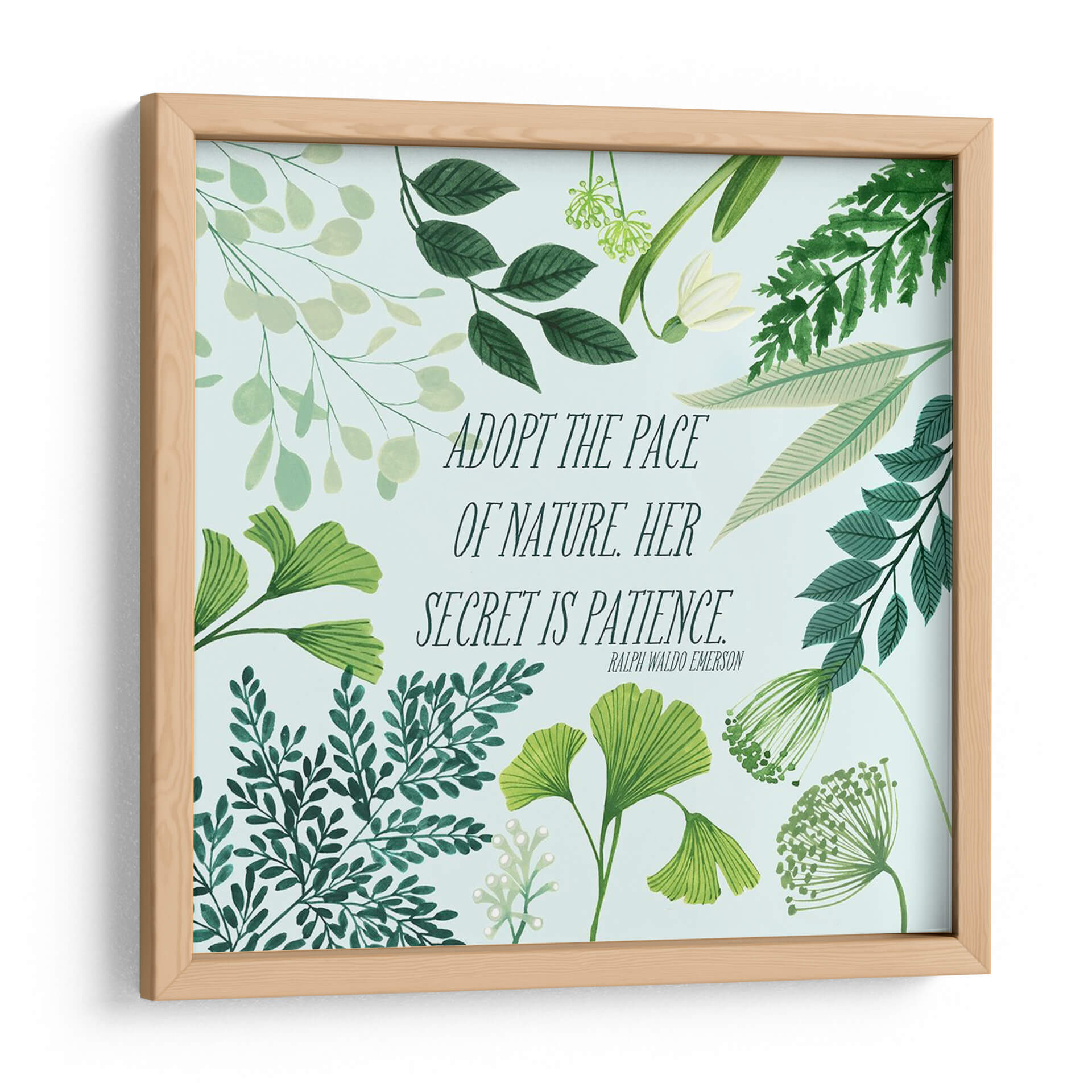 Transforma tu espacio con el cuadro decorativo "Bliss Natural Ii" de Grace Popp, una obra que encapsula la serenidad y la sabiduría de la naturaleza. Esta pieza presenta una delicada composición botánica en tonos verdes y menta, con una variedad de follajes que van desde hojas de ginkgo hasta helechos y delicadas flores, todo sobre un fondo celeste pálido. La obra está realzada por una inspiradora cita de Ralph Waldo Emerson: "ADOPT THE PACE OF NATURE. HER SECRET IS PATIENCE." ("Adopta el ritmo de la naturaleza. Su secreto es la paciencia."). Esta combinación de elementos visuales y textuales crea una atmósfera de calma, reflexión y conexión con el mundo natural. Su estilo, que fusiona la ilustración botánica detallada con un toque contemporáneo, la hace perfecta para añadir un acento de tranquilidad y elegancia a cualquier habitación. Ideal para dormitorios, salas de estar, estudios u oficinas, este cuadro decorativo es una invitación a desacelerar y apreciar la belleza de los procesos naturales. Es una pieza que no solo embellece, sino que también inspira y eleva el espíritu, aportando un toque de naturaleza y mindfulness a tu vida diaria. El diseño, con su frescura y sutileza, se adapta a diversos estilos decorativos, desde el escandinavo hasta el moderno o el bohemio.