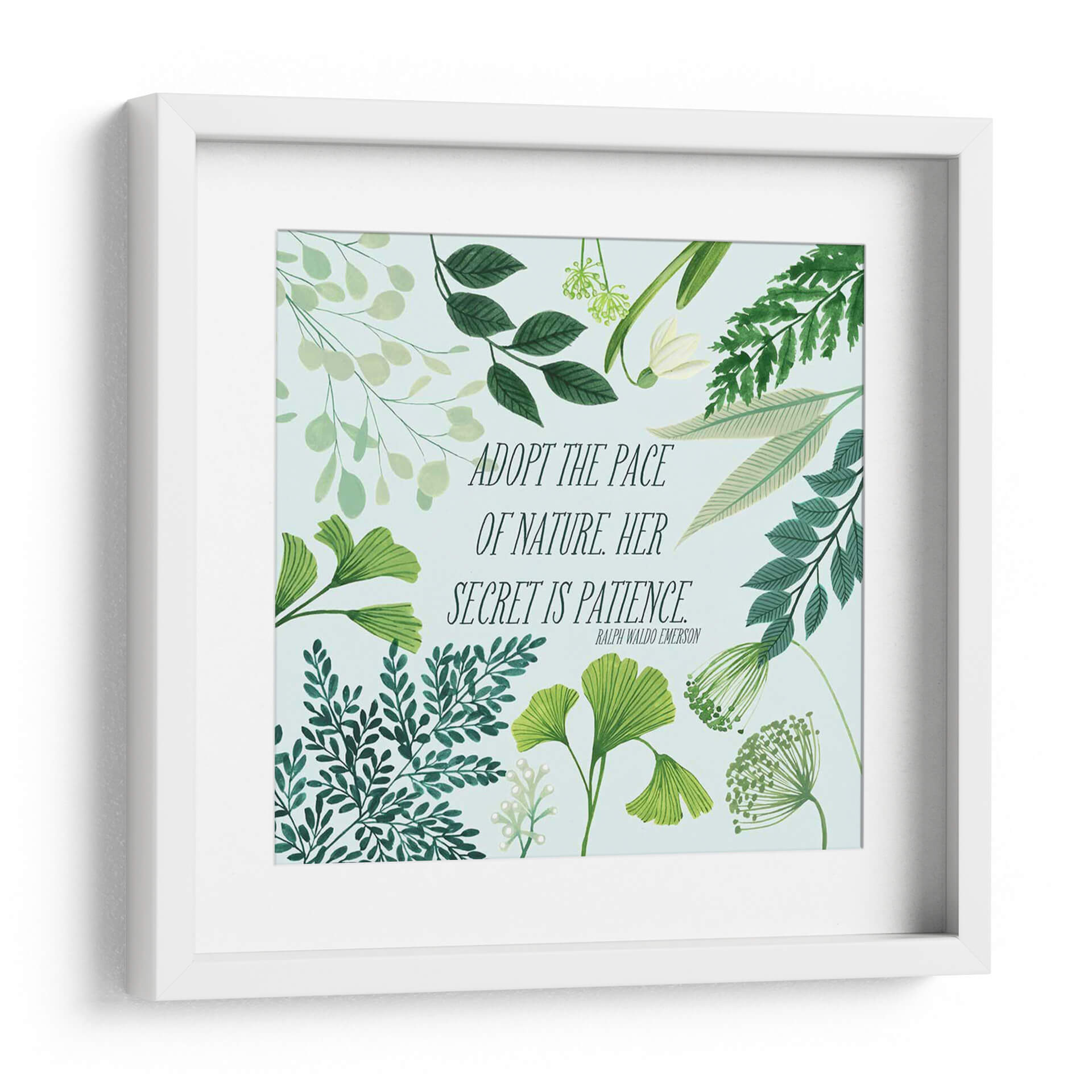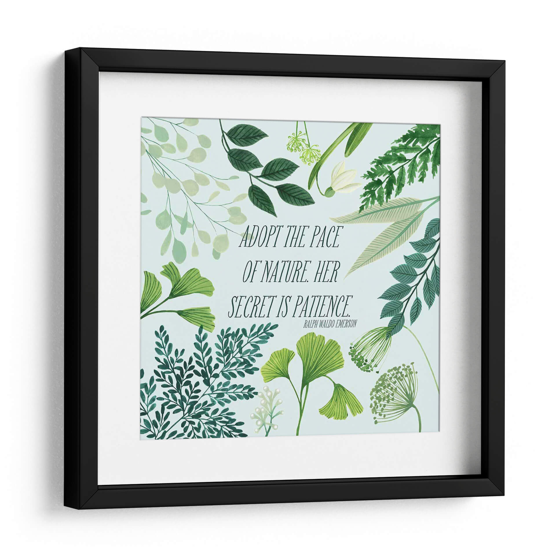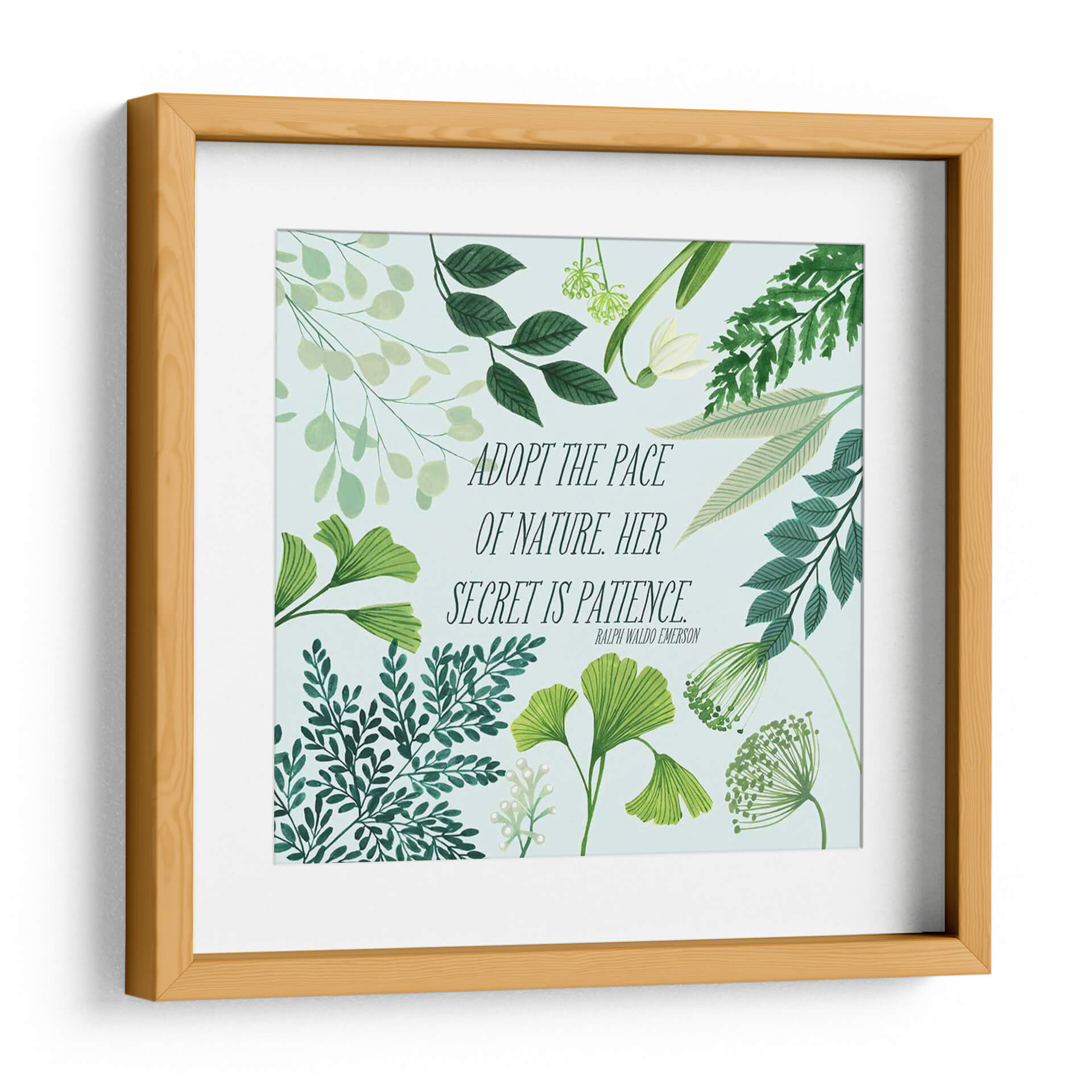Transforma tu espacio con el cuadro decorativo "Bliss Natural Ii" de Grace Popp, una obra que encapsula la serenidad y la sabiduría de la naturaleza. Esta pieza presenta una delicada composición botánica en tonos verdes y menta, con una variedad de follajes que van desde hojas de ginkgo hasta helechos y delicadas flores, todo sobre un fondo celeste pálido. La obra está realzada por una inspiradora cita de Ralph Waldo Emerson: "ADOPT THE PACE OF NATURE. HER SECRET IS PATIENCE." ("Adopta el ritmo de la naturaleza. Su secreto es la paciencia."). Esta combinación de elementos visuales y textuales crea una atmósfera de calma, reflexión y conexión con el mundo natural. Su estilo, que fusiona la ilustración botánica detallada con un toque contemporáneo, la hace perfecta para añadir un acento de tranquilidad y elegancia a cualquier habitación. Ideal para dormitorios, salas de estar, estudios u oficinas, este cuadro decorativo es una invitación a desacelerar y apreciar la belleza de los procesos naturales. Es una pieza que no solo embellece, sino que también inspira y eleva el espíritu, aportando un toque de naturaleza y mindfulness a tu vida diaria. El diseño, con su frescura y sutileza, se adapta a diversos estilos decorativos, desde el escandinavo hasta el moderno o el bohemio.