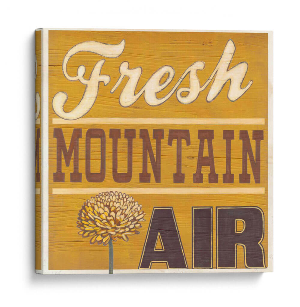 Captura la esencia revitalizante de la naturaleza con el cuadro decorativo "Cabina Vida Iv", una obra de arte que evoca la pureza y la frescura del aire de montaña. La pieza presenta una paleta de colores cálidos dominada por el amarillo ocre, simulando la textura de la madera, sobre la cual se inscriben las palabras "Fresh Mountain Air" en tipografías contrastantes. Un delicado detalle floral, una flor amarilla y blanca de pétalos abundantes, añade un toque orgánico y vibrante al diseño. Este cuadro es perfecto para crear un ambiente acogedor y lleno de energía positiva en cualquier espacio. Su estilo rústico-moderno lo hace ideal para salas de estar, cocinas o incluso oficinas que buscan un toque de inspiración natural. Las líneas limpias y la tipografía clara invitan a la contemplación, mientras que los tonos tierra y los acentos florales aportan calidez y vitalidad. "Cabina Vida Iv" no es solo una decoración, es una invitación a respirar profundo y disfrutar de la serenidad que la montaña nos regala, convirtiendo tu hogar en un refugio personal de tranquilidad y buen gusto. Añade un toque de naturaleza y optimismo a tu decoración.
