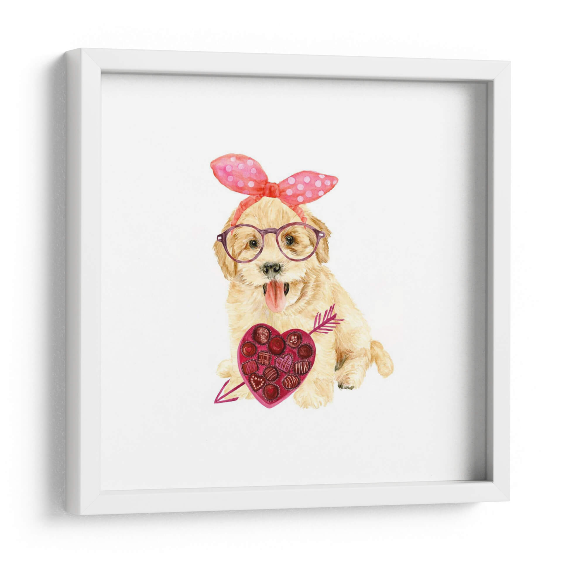 Acurrúcate con la ternura de este encantador cuadro decorativo que captura la esencia juguetona de un "Cachorro de San Valentín Iv". Obra de la talentosa artista Melissa Wang, esta pieza evoca una alegría desenfadada y un encanto inocente, ideal para infundir calidez y personalidad en cualquier espacio. La acuarela presenta a un adorable cachorro de pelaje dorado, ataviado con unas gafas divertidas y un lazo rosa de lunares, sosteniendo una caja de chocolates en forma de corazón atravesada por una flecha de Cupido. Los tonos cálidos del pelaje del cachorro contrastan sutilmente con los vibrantes rojos y rosas del corazón de chocolate y el lazo, creando una composición visualmente atractiva y llena de dulzura. La técnica de acuarela aporta una textura suave y etérea, realzando la expresividad de la mirada del cachorro y los delicados detalles de los chocolates. Este cuadro decorativo es perfecto para añadir un toque de humor y afecto a salones, dormitorios infantiles, oficinas o cualquier rincón que necesite una dosis de felicidad y amor. Su temática lo convierte en una opción idónea para celebrar el día de San Valentín o para regalar a cualquier amante de los perros y las cosas bonitas. Integra tu espacio con esta obra que irradia pura adoración y un espíritu juguetón, invitando a la sonrisa y creando un ambiente acogedor.