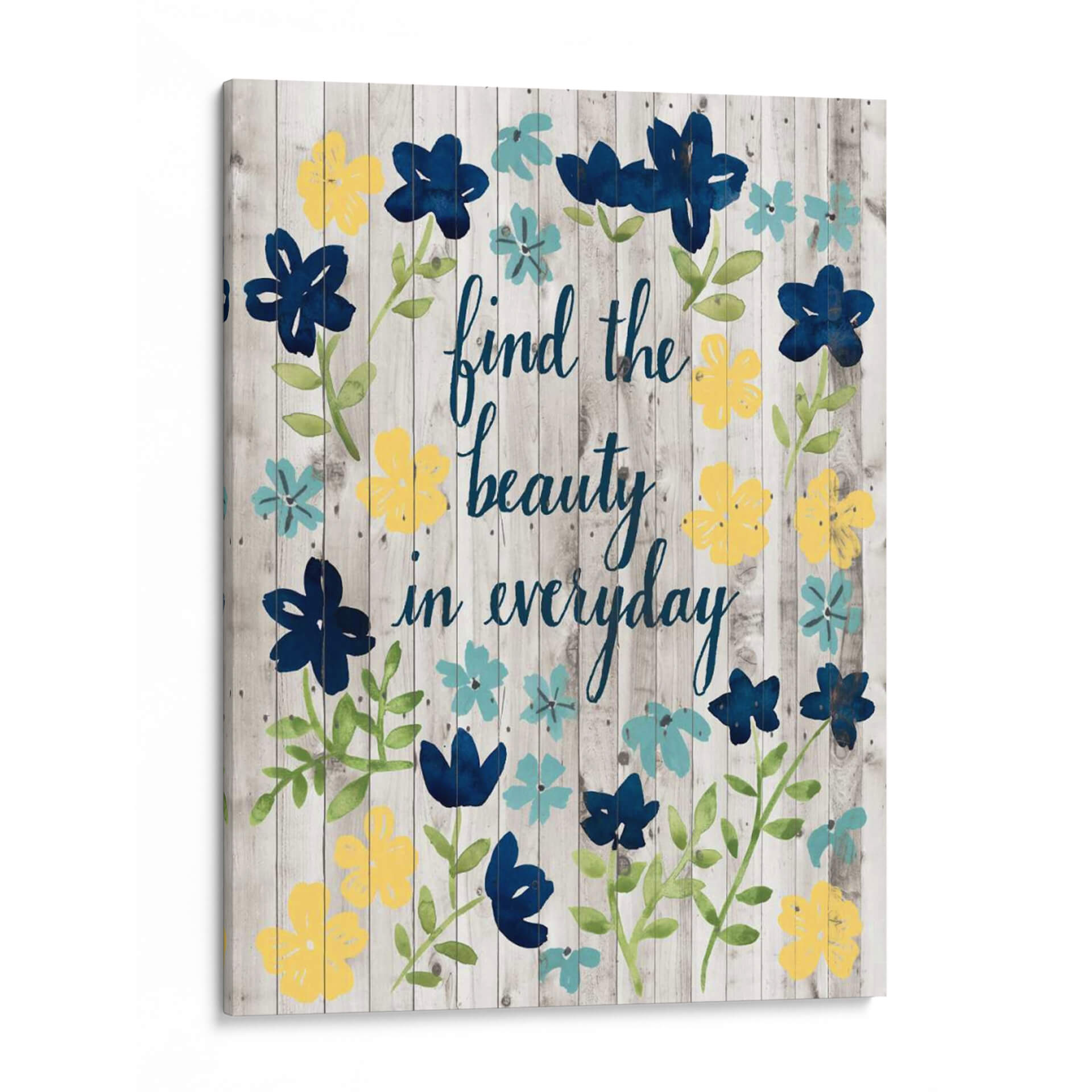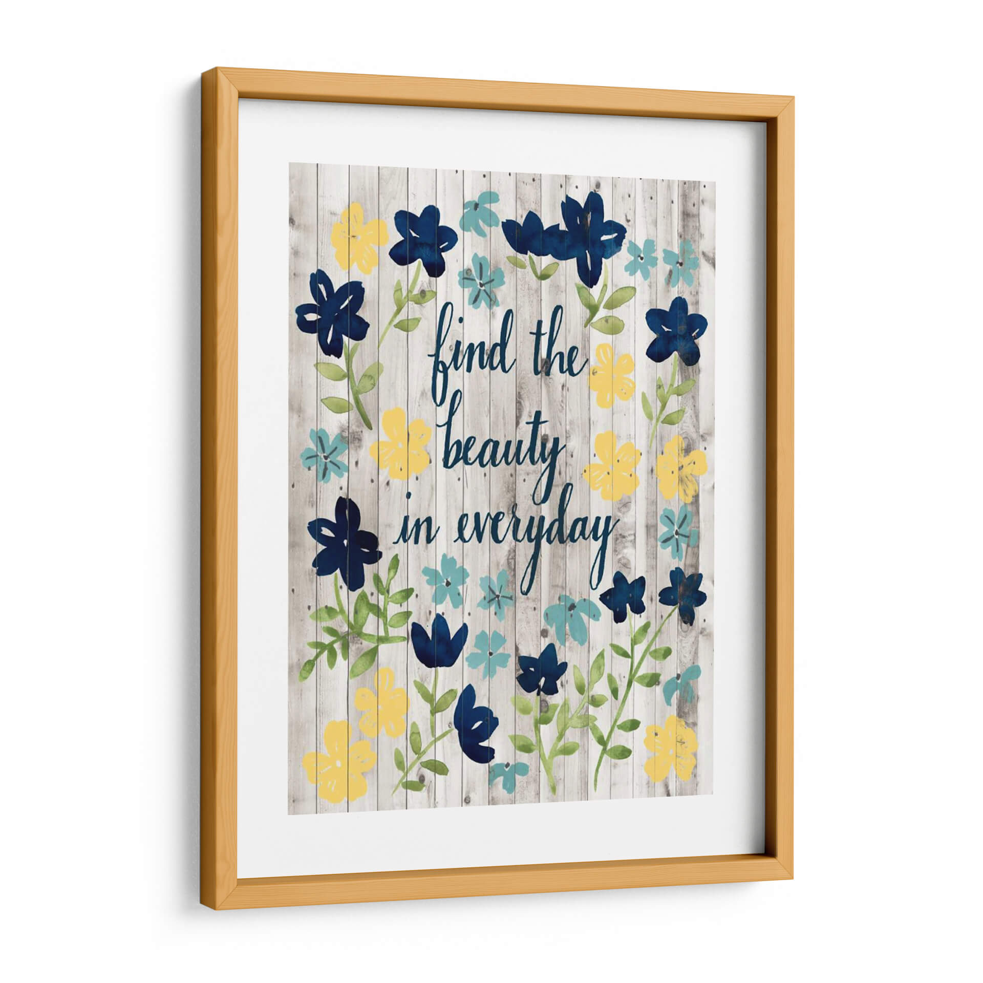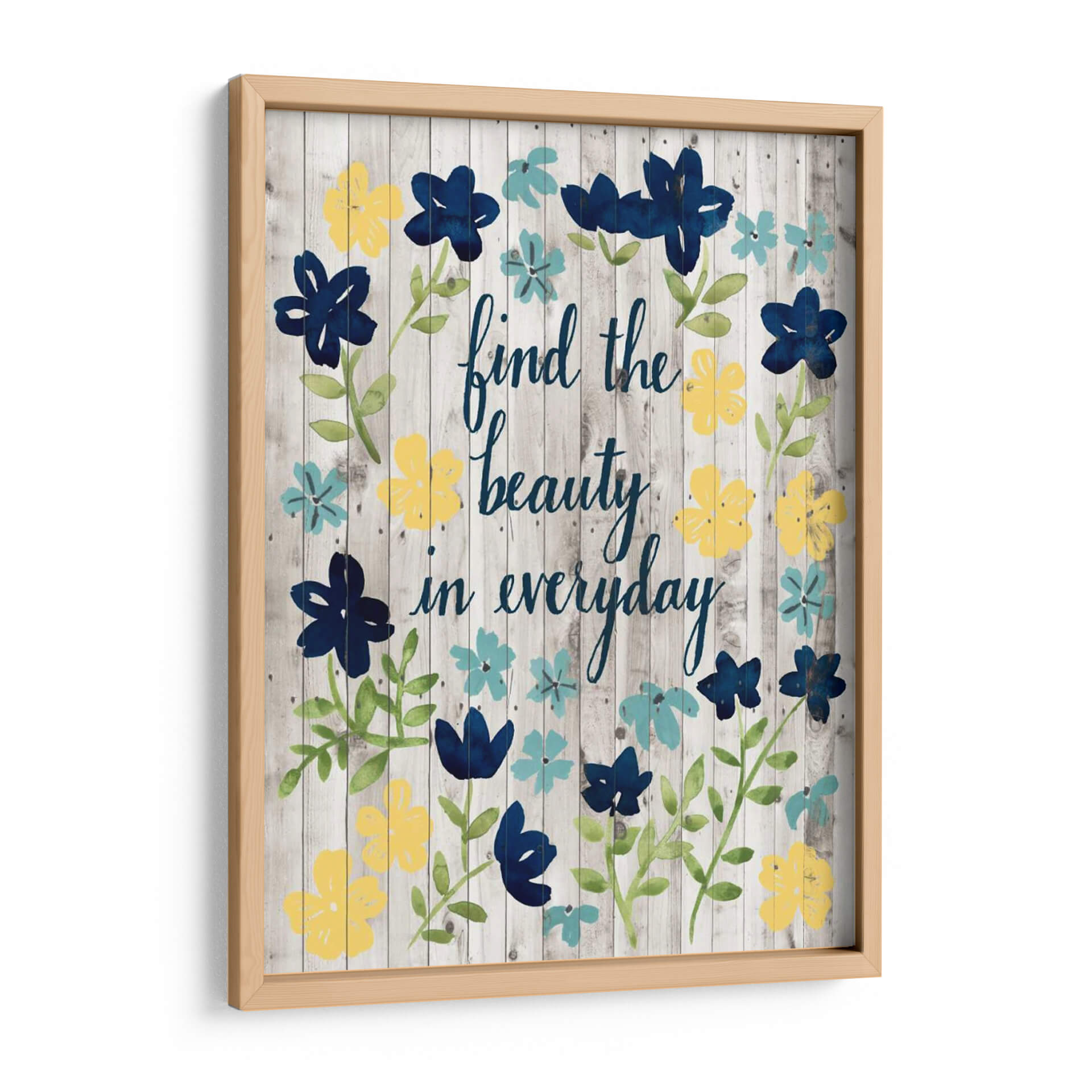 Transforma tu espacio con la inspiradora obra "Cottage Inspiration II" de Grace Popp. Este cautivador cuadro decorativo presenta un delicado arreglo floral pintado con acuarelas sobre un fondo de tablones de madera rústica en tonos grises. Las flores, representadas en vibrantes azules, amarillos alegres y suaves toques de turquesa, contrastan armoniosamente con las hojas verdes, creando una sensación de frescura y vitalidad. El estilo, que evoca la simplicidad y el encanto de las ilustraciones botánicas, se complementa con la frase "find the beauty in everyday" (encuentra la belleza en lo cotidiano) escrita en una elegante caligrafía azul. Esta pieza transmite un mensaje de optimismo y paz, perfecta para infundir serenidad en tu hogar u oficina. Su paleta de colores versátil y su temática universal la convierten en una adición ideal para cualquier decoración, desde la más rústica hasta la más moderna. Imagina este cuadro aportando un toque de color y positividad a tu sala de estar, dormitorio o incluso a un espacio de trabajo. "Cottage Inspiration II" no es solo una decoración, es una invitación diaria a apreciar las pequeñas maravillas que nos rodean, un recordatorio visual de la belleza que se esconde en la rutina.
