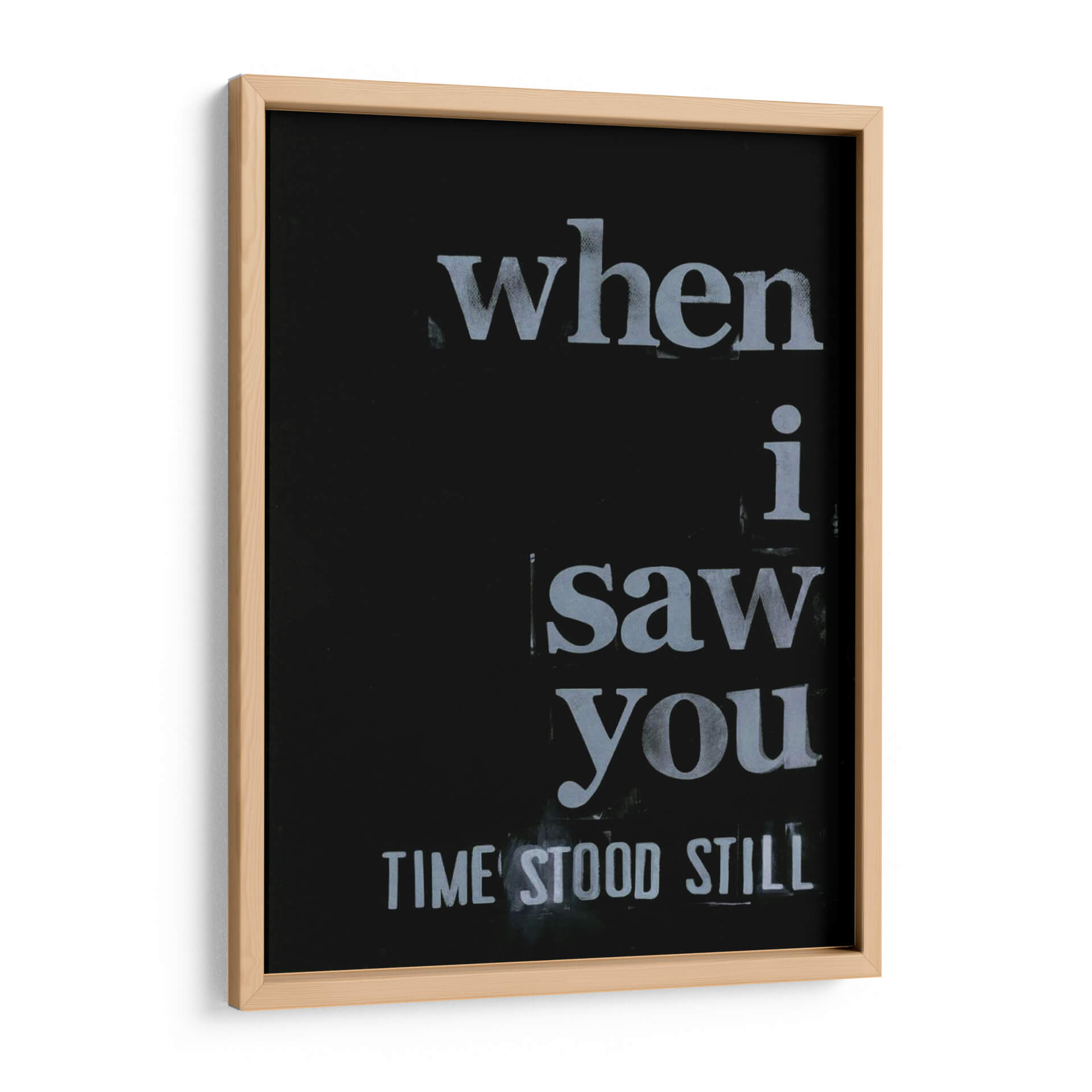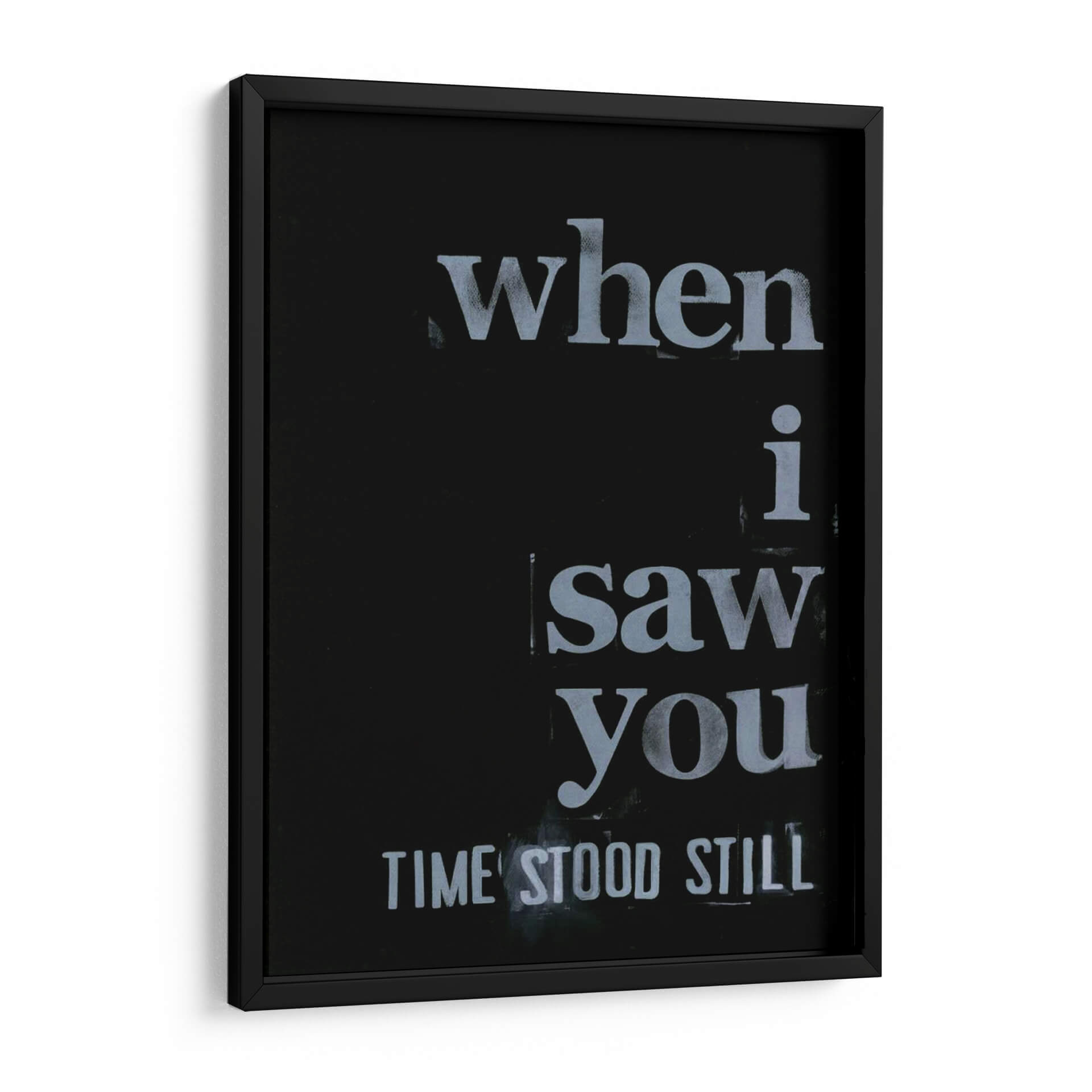 Captura la esencia de un momento inolvidable con "Cuando Te Vi ... Iv", una obra de arte de Deborah Velasquez que evoca la magia de un encuentro significativo. Este cuadro decorativo, con su fondo oscuro intenso y tipografía clara y contrastante en tonos blancos y grises pálidos, presenta un mensaje poético que invita a la reflexión: "when i saw you i saw you TIME STOOD STILL". La composición tipográfica es moderna y minimalista, con una estela sutil de lo que parece ser pintura o polvo, añadiendo una textura visual intrigante. El estilo es decididamente contemporáneo, ideal para espacios que buscan un toque de sofisticación y profundidad emocional. Perfecto para salones, dormitorios o estudios, este cuadro decorativo actúa como un recordatorio visual de esos instantes que detienen el tiempo. Su paleta de colores neutros pero impactantes lo hace increíblemente versátil, complementando una amplia gama de estilos decorativos, desde el moderno y minimalista hasta el industrial o incluso el ecléctico. Añade un toque de intimidad y estilo a tu hogar con esta pieza única que habla de conexiones y recuerdos imborrables. "Cuando Te Vi ... Iv" no es solo una decoración, es una declaración emocional.