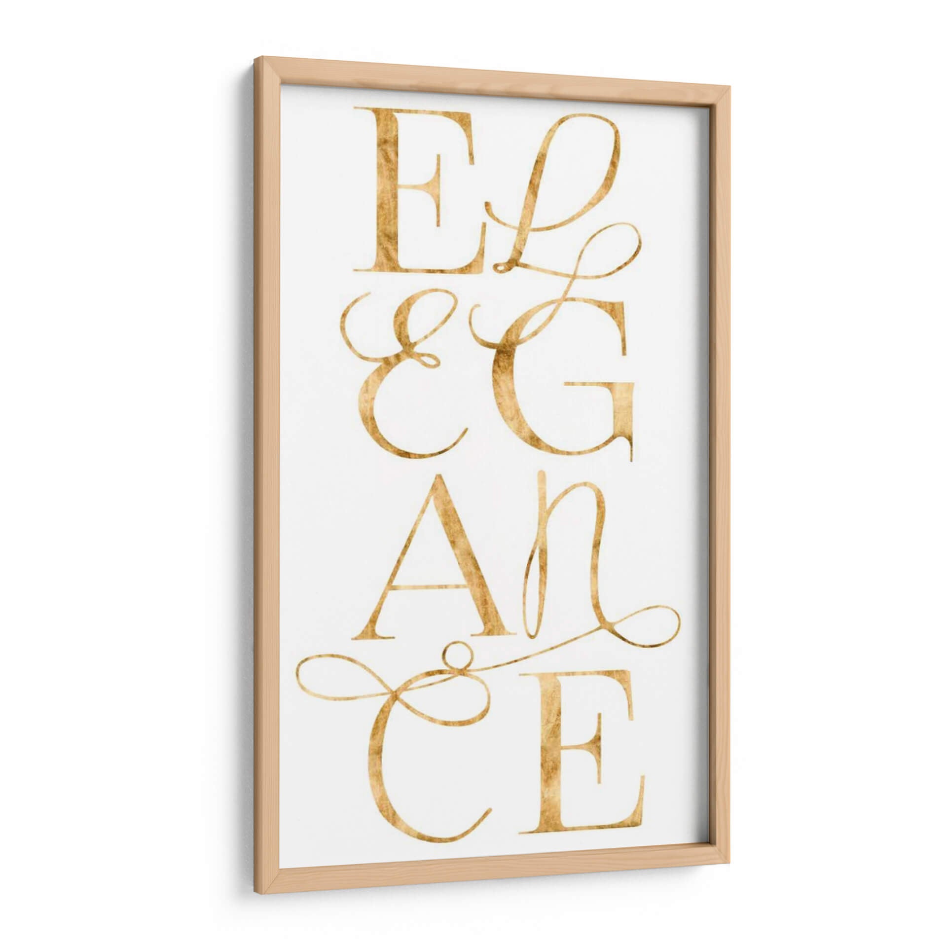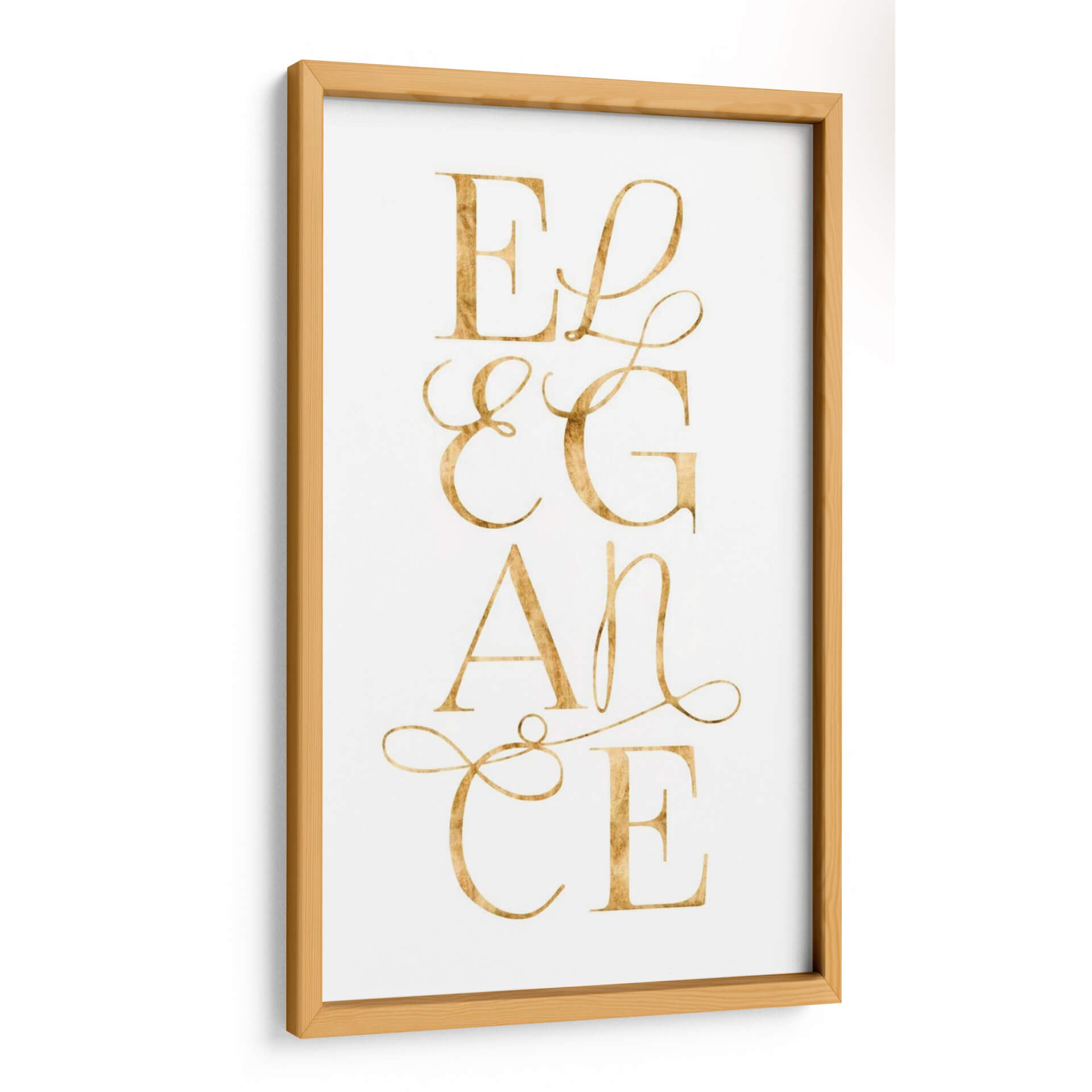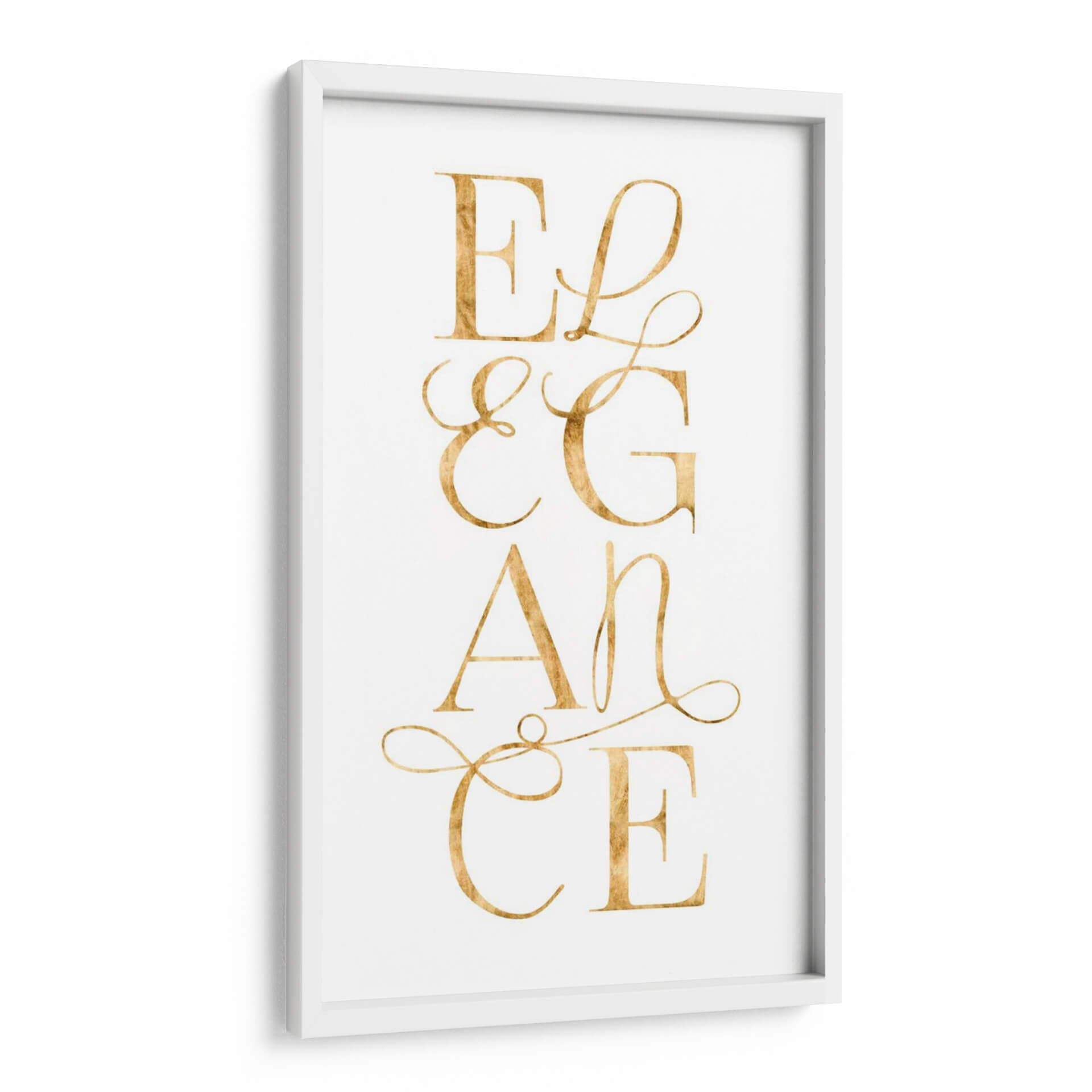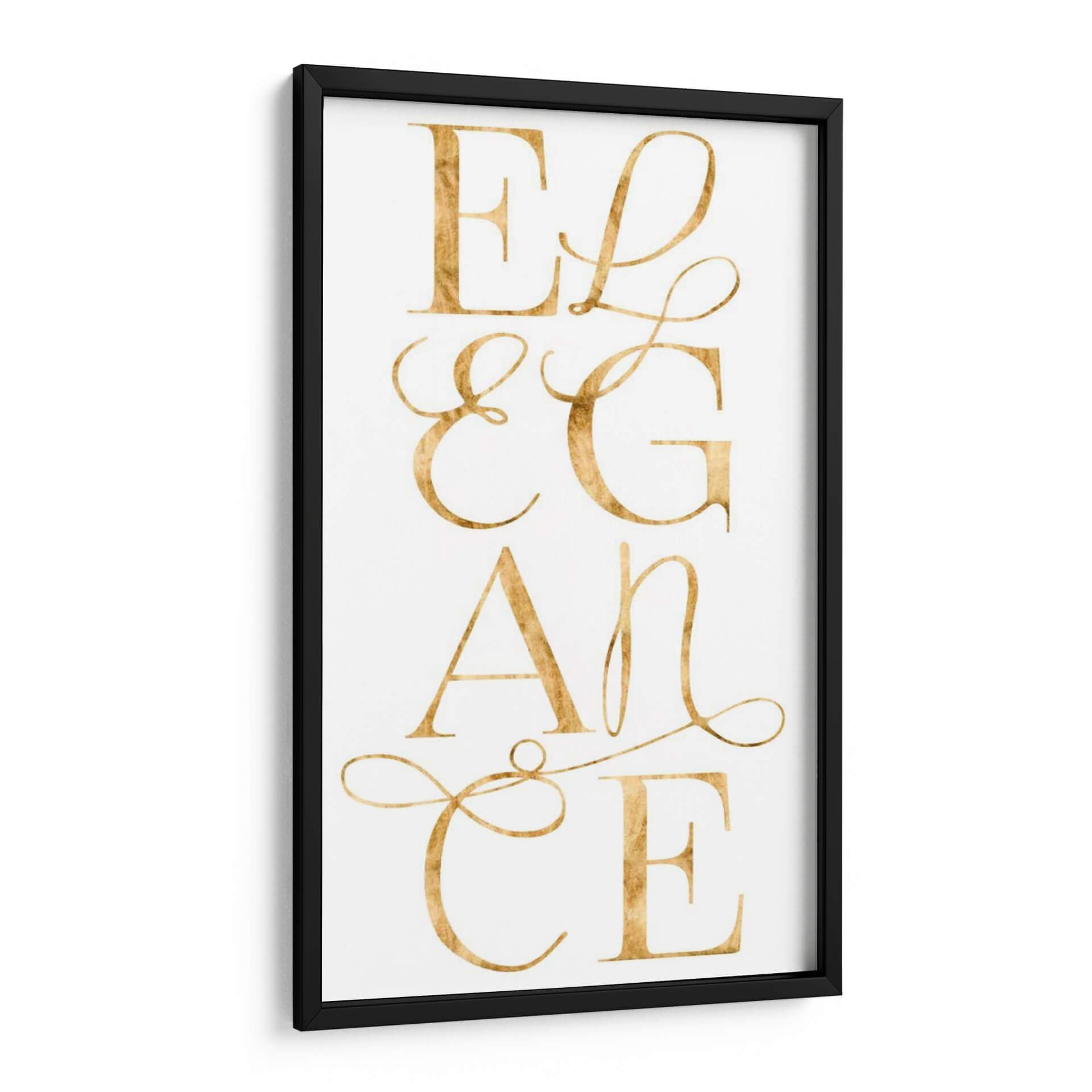 Sumérgete en la sofisticación con "Elegante Y Deslumbrante I", una obra de arte contemporáneo de Grace Popp que irradia lujo y estilo. Este cuadro decorativo presenta la palabra "Elegance" escrita en una tipografía cursiva dorada, que parece flotar sobre un fondo blanco nítido. Los detalles sutiles y el acabado metálico del dorado capturan la luz, añadiendo un brillo dinámico a cualquier habitación. La composición es limpia y centrada, haciendo de esta pieza un punto focal instantáneo sin abrumar el espacio. Su diseño minimalista y la paleta de colores sofisticada la convierten en la elección perfecta para interiores modernos, clásicos o de transición. Ideal para quienes buscan infundir un aire de refinamiento en su sala de estar, dormitorio o estudio. Este cuadro decorativo no es solo una pieza de arte, es una declaración de buen gusto y una invitación a la admiración. Su presencia evoca una sensación de calma y opulencia, transformando cualquier pared en una obra maestra. Añade un toque de distinción que refleje tu aprecio por la belleza atemporal y el diseño impecable a tu hogar u oficina. Descubre cómo este diseño puede elevar tu decoración.