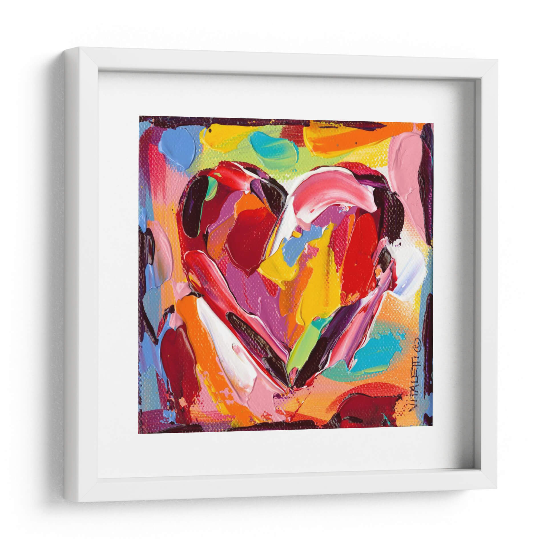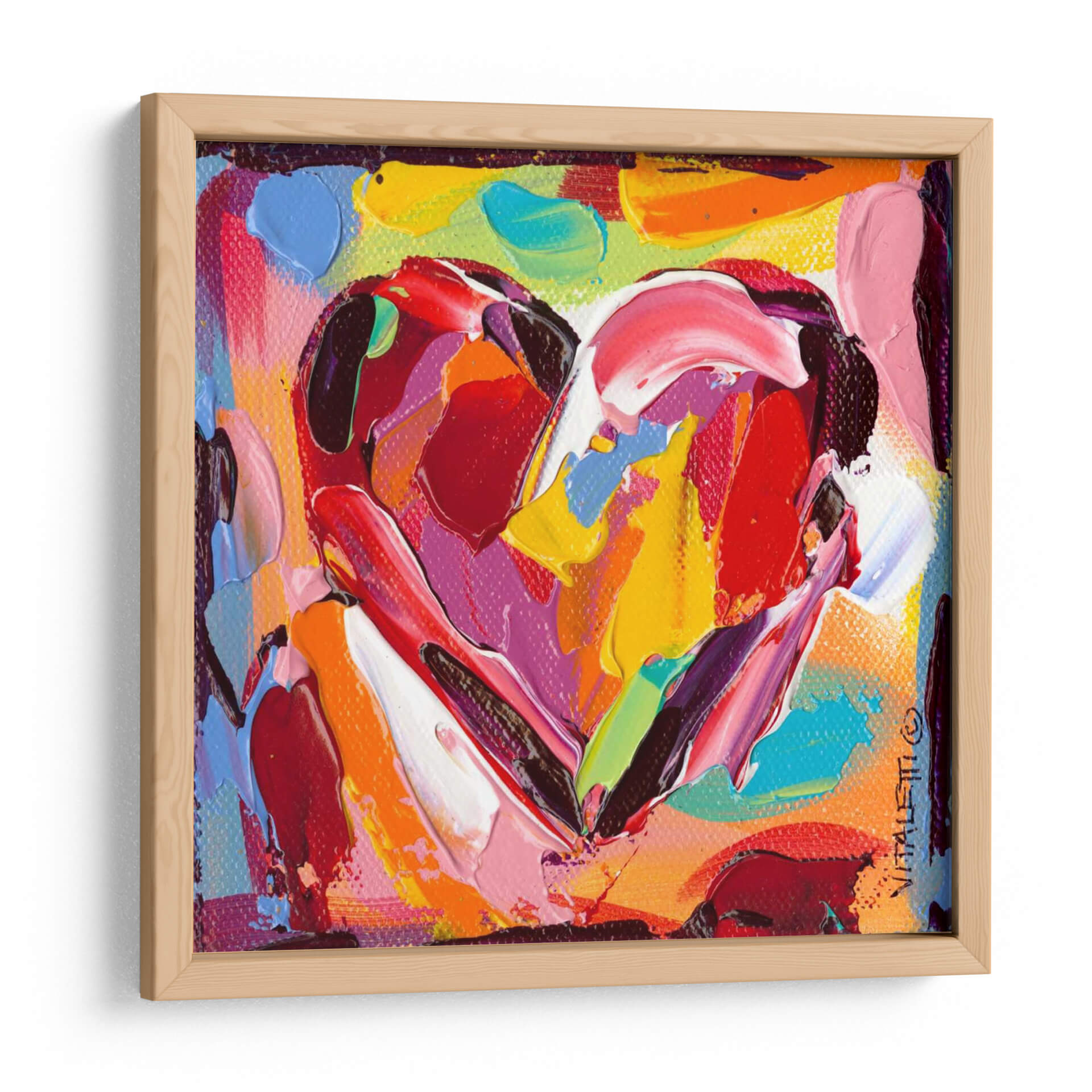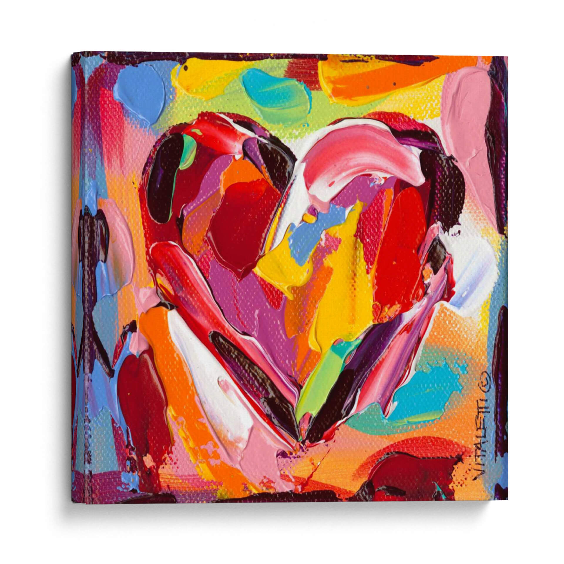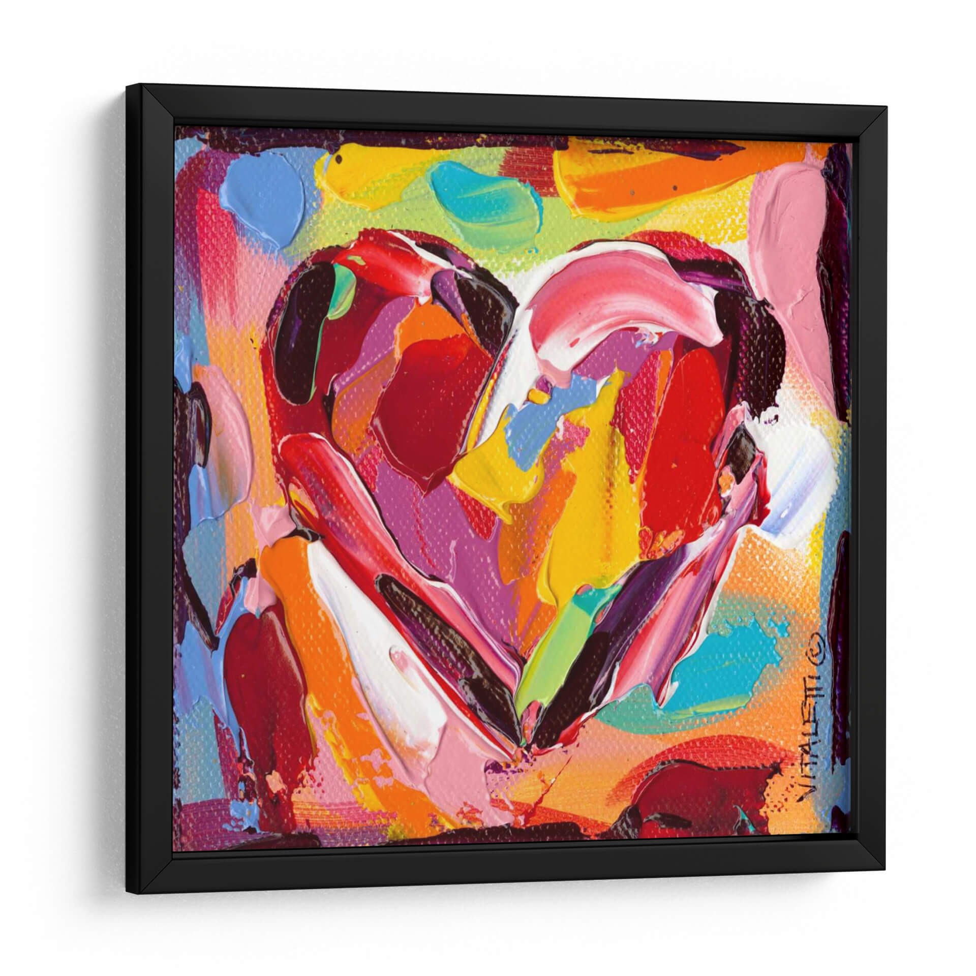 Sumérgete en la vibrante energía de "Expresiones Coloridas I", una obra de arte contemporáneo que captura la esencia del amor y la pasión a través de una explosión de tonos vivos. Carolee Vitaletti, la talentosa artista detrás de esta pieza, utiliza pinceladas audaces y texturizadas para dar vida a un corazón abstracto, lleno de matices y profundidad. Los colores primarios y secundarios se entrelazan en una danza armoniosa, desde rojos intensos y rosas apasionados hasta amarillos alegres y azules vibrantes, creando una atmósfera de pura vitalidad y optimismo. Este cuadro decorativo es perfecto para infundir alegría y un toque de calidez en cualquier espacio. Su estilo abstracto y expresionista lo convierte en un punto focal ideal para salas de estar modernas, estudios creativos u oficinas que buscan inspiración. La textura palpable de la pintura invita a la contemplación, permitiendo que cada espectador descubra sus propias interpretaciones y conexiones emocionales. "Expresiones Coloridas I" no es solo una decoración de pared, es una declaración de emociones, un recordatorio constante de la belleza y la intensidad de la vida. Añade esta pieza única a tu colección y deja que su fuerza cromática transforme tu hogar en un santuario de inspiración y buen gusto, atrayendo miradas y conversaciones.