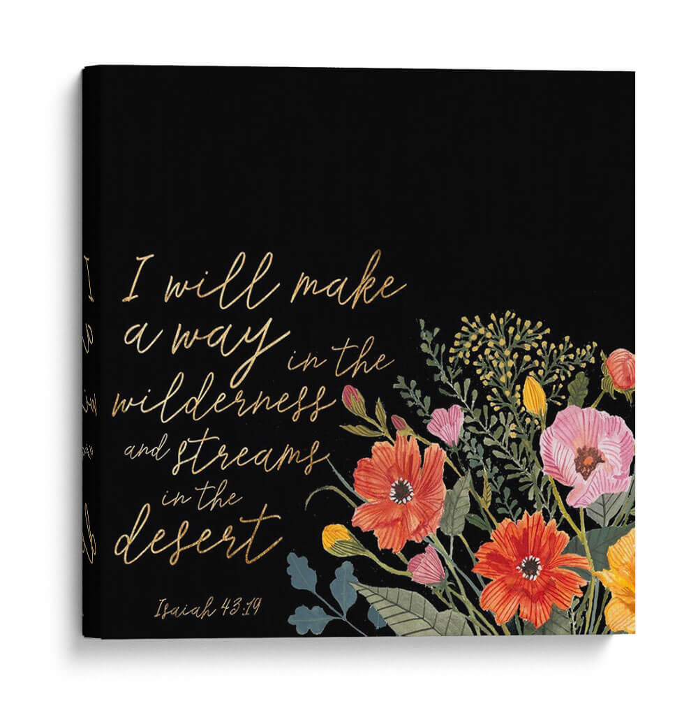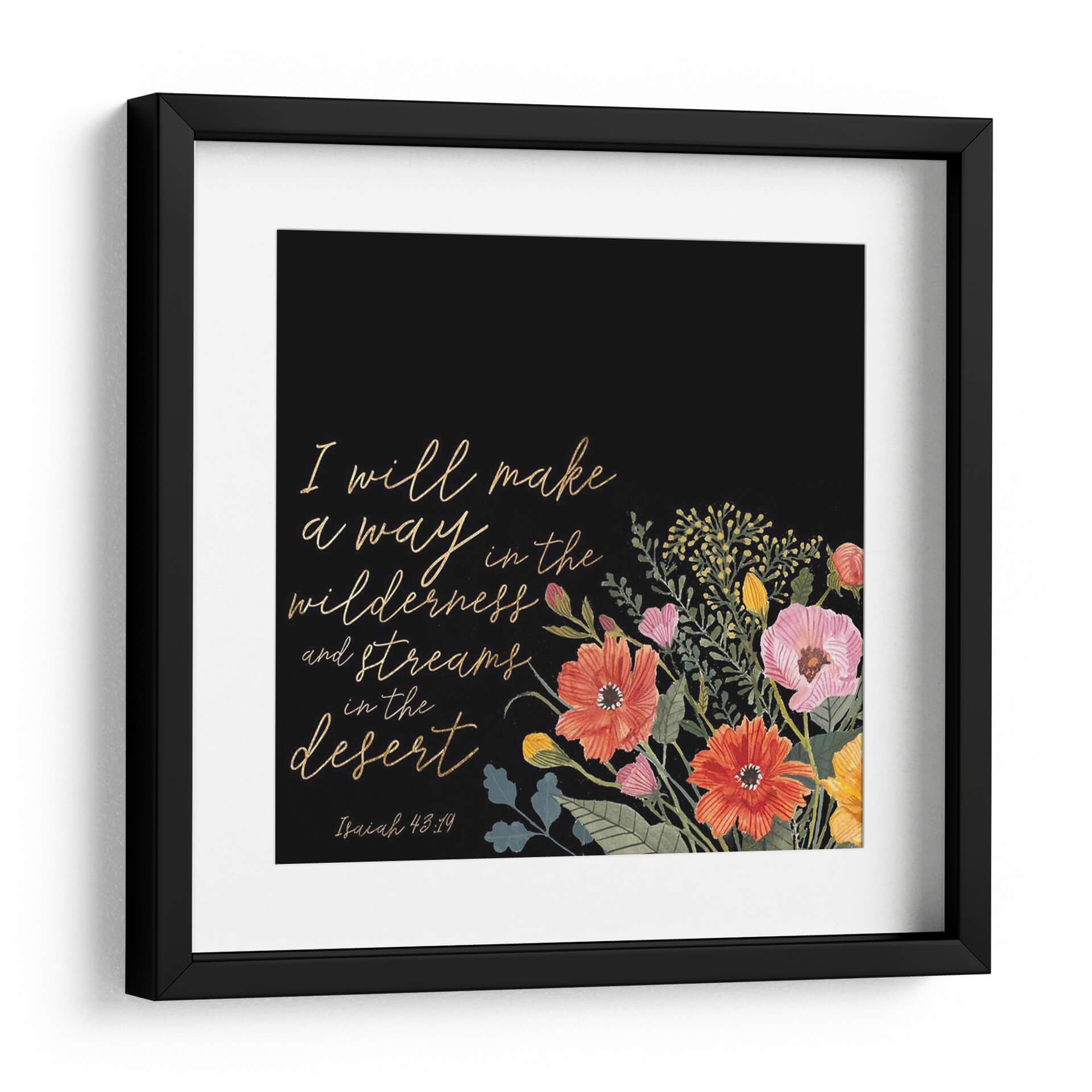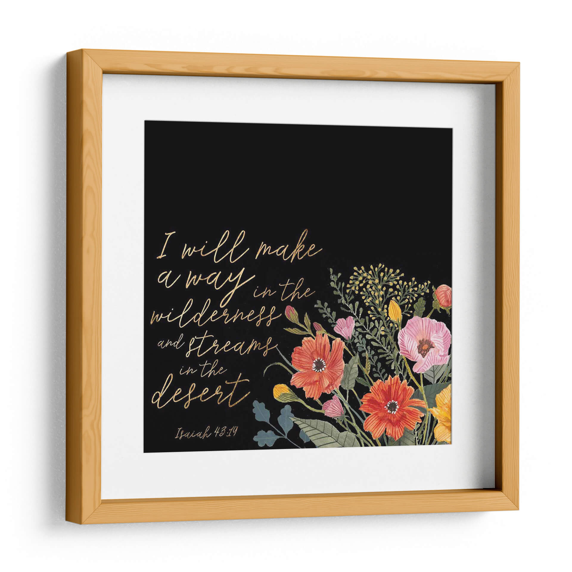 Embellece tu hogar con el evocador cuadro decorativo 'Fa Floral Iv', una obra maestra del artista Studio W que combina una explosión de flores vibrantes con una cita inspiradora. El fondo negro profundo contrasta magistralmente con los tonos cálidos de los pétalos de amapola en rojo anaranjado y rosa, complementados por delicados toques de amarillo y verde follaje. La caligrafía dorada, que proclama "I will make a way in the wilderness and streams in the desert" (Isaías 43:19), añade un toque de elegancia y significado espiritual, convirtiendo esta pieza en un punto focal poderoso para cualquier habitación. Este cuadro decorativo es ideal para quienes buscan infundir sus espacios con un mensaje de esperanza y resiliencia, o simplemente añadir un toque de color y naturaleza. Su estilo botánico detallado y la composición equilibrada lo hacen perfecto para salas de estar modernas, dormitorios serenos o incluso oficinas, aportando una atmósfera de calma y optimismo.
