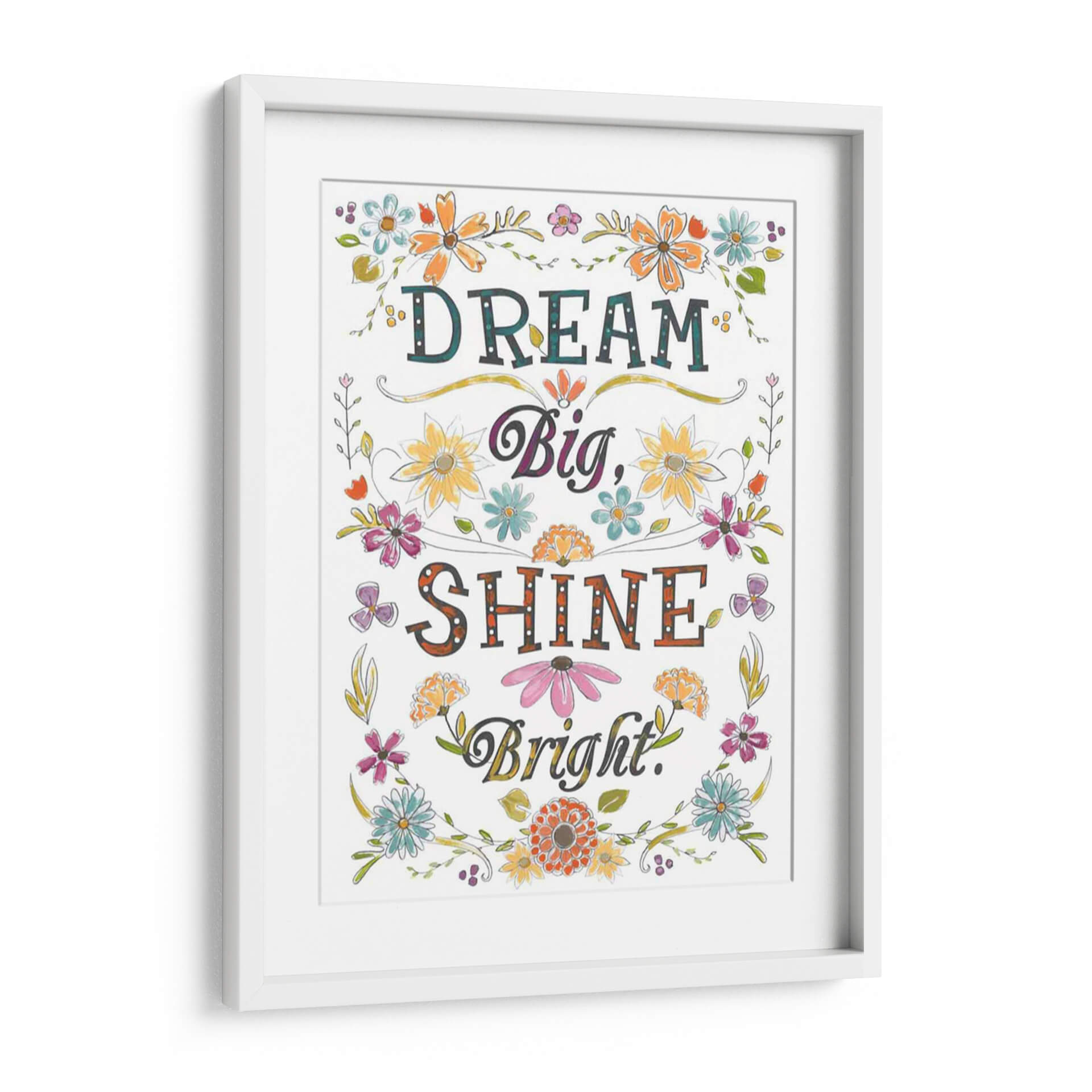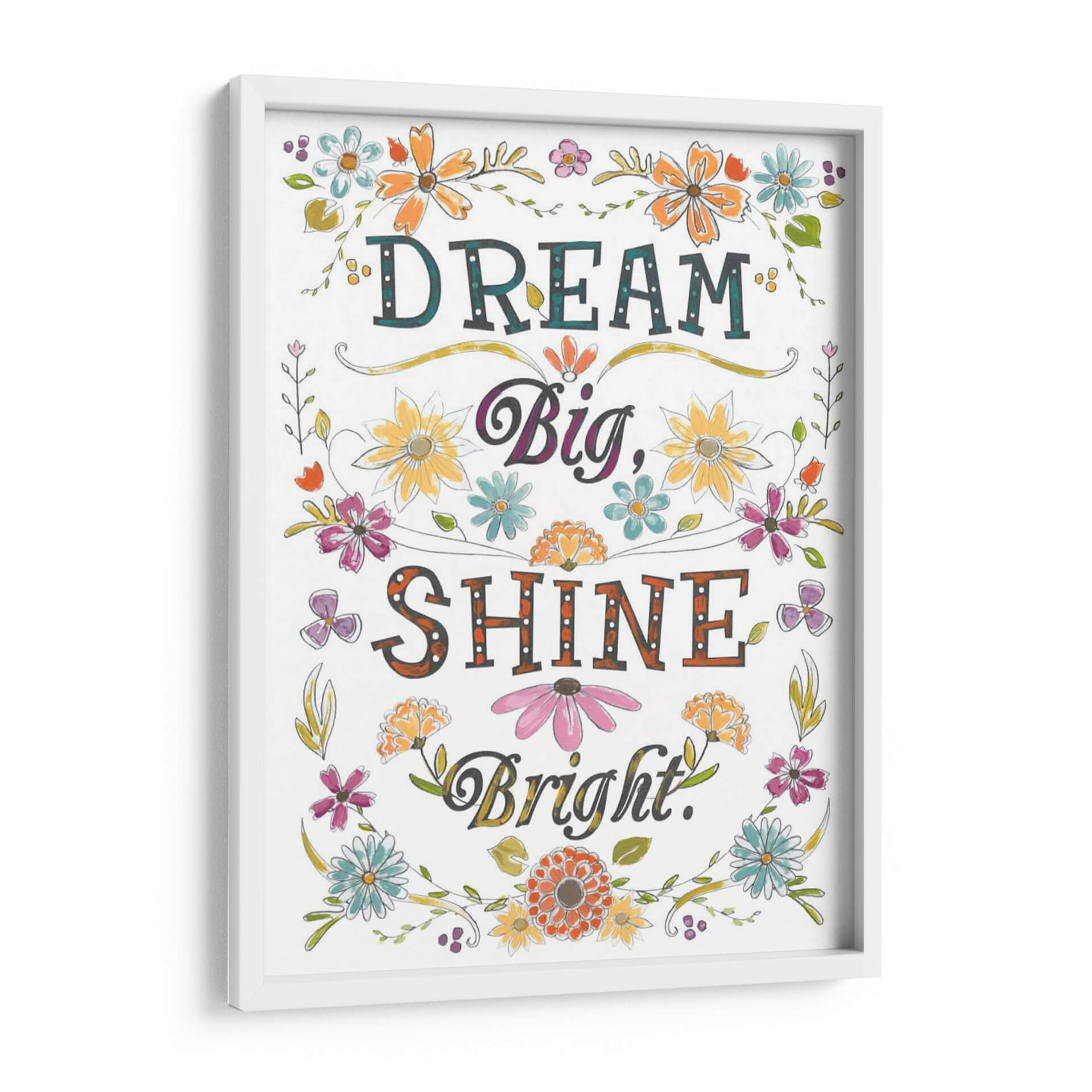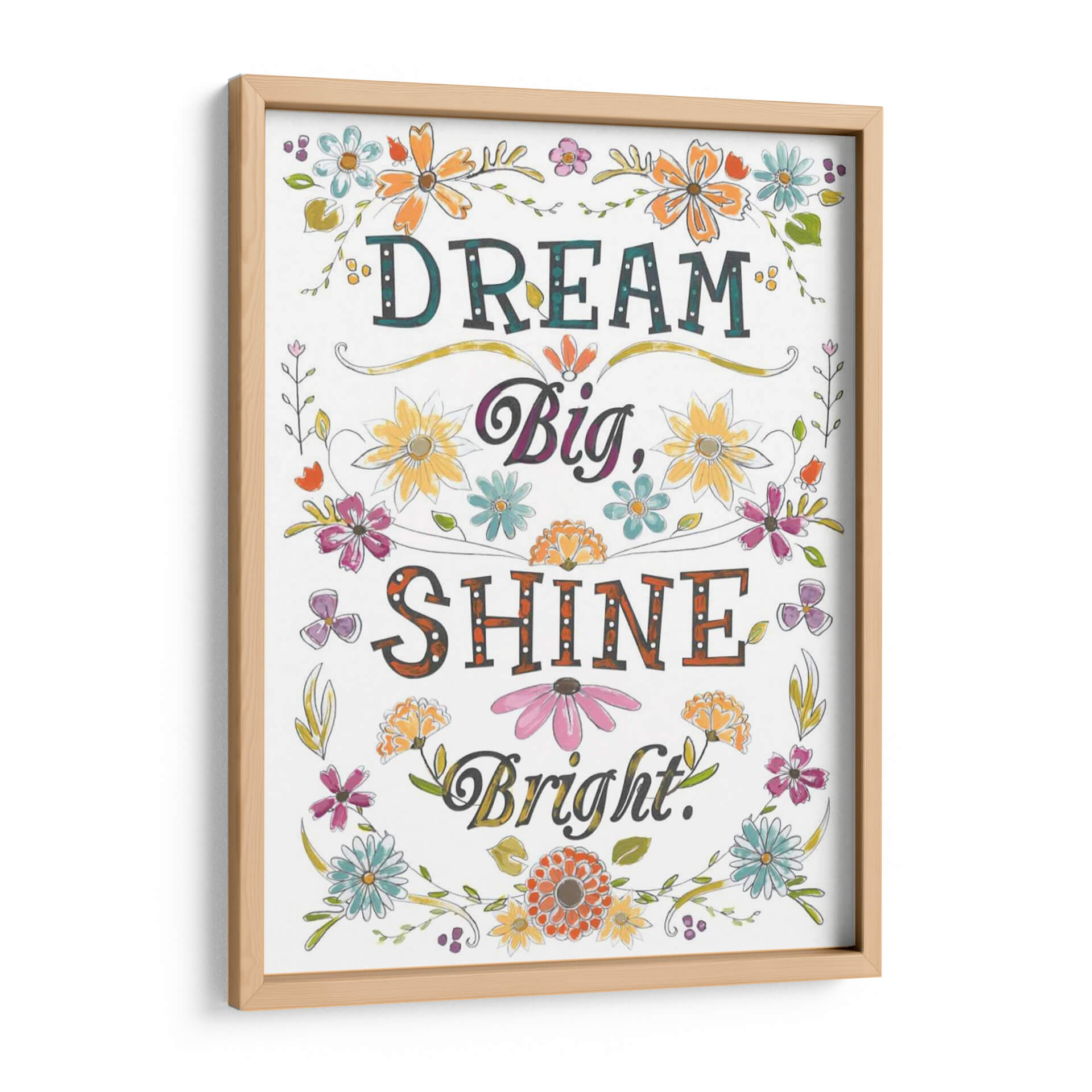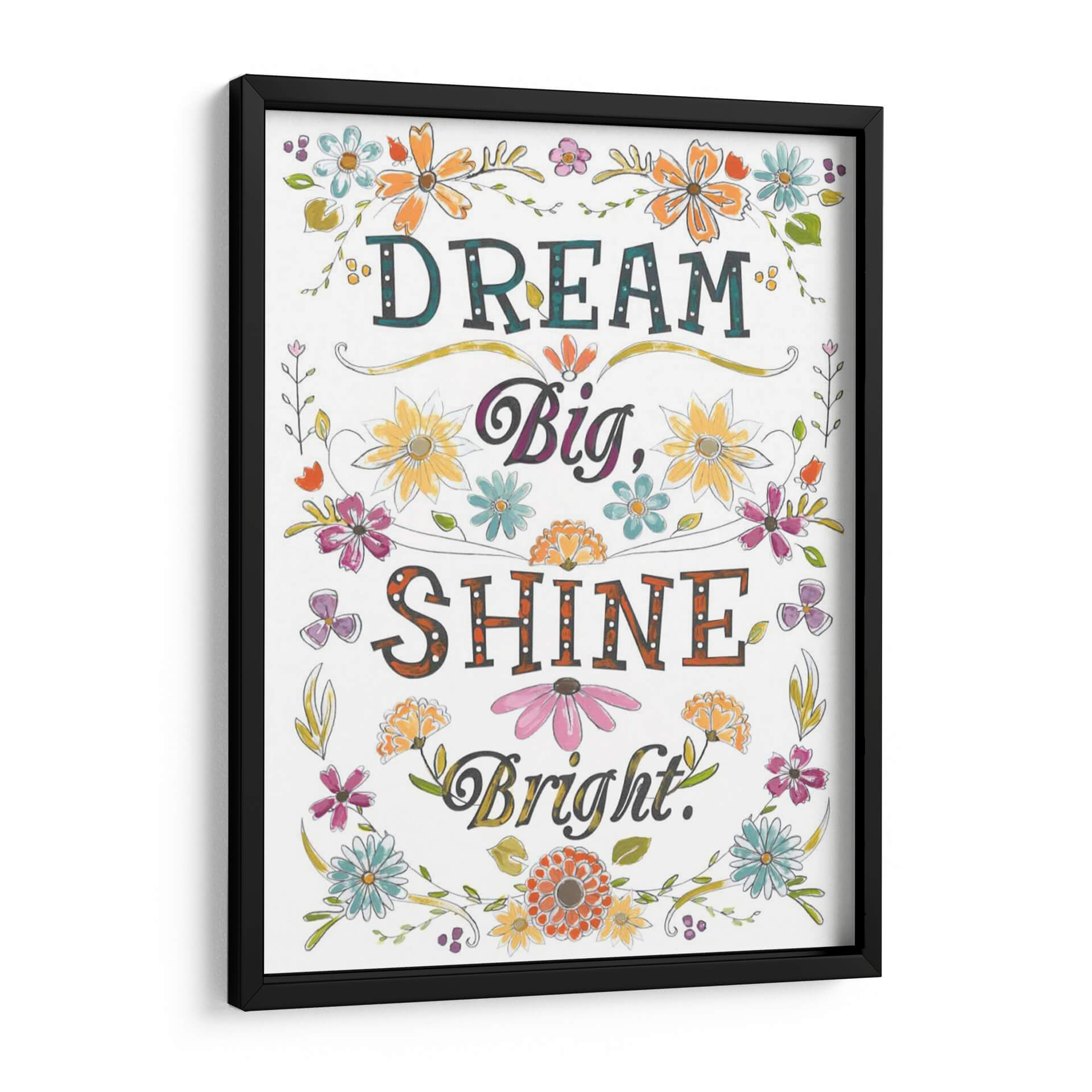 Inyecta positividad y estilo en tu hogar con "Feliz Sentimientos Yo", una obra de arte inspiradora de June Erica Vess. Este vibrante cuadro decorativo es una explosión de color y optimismo, presentando la frase "DREAM BIG, SHINE BRIGHT" (Sueña en grande, brilla intensamente) rodeada de un encantador y detallado borde floral. Las flores, dibujadas con un estilo delicado y casi artesanal, aportan una textura visual y una alegría contagiosa. La paleta de colores, que combina tonos alegres como el naranja, amarillo, azul turquesa y toques de morado, crea una atmósfera enérgica pero acogedora. La tipografía, una mezcla de estilos script y serif, añade un toque de personalidad y calidez, haciendo que el mensaje sea no solo visible sino también emocionalmente resonante. Ideal para cualquier espacio que necesite un impulso de motivación y belleza, este cuadro es perfecto para salones, dormitorios, oficinas o cualquier rincón donde busques inspiración diaria. Su diseño versátil se adapta a una decoración moderna, bohemia o incluso infantil, convirtiéndose en un punto focal encantador. Añade esta pieza única a tu colección y deja que su energía positiva ilumine tus días.