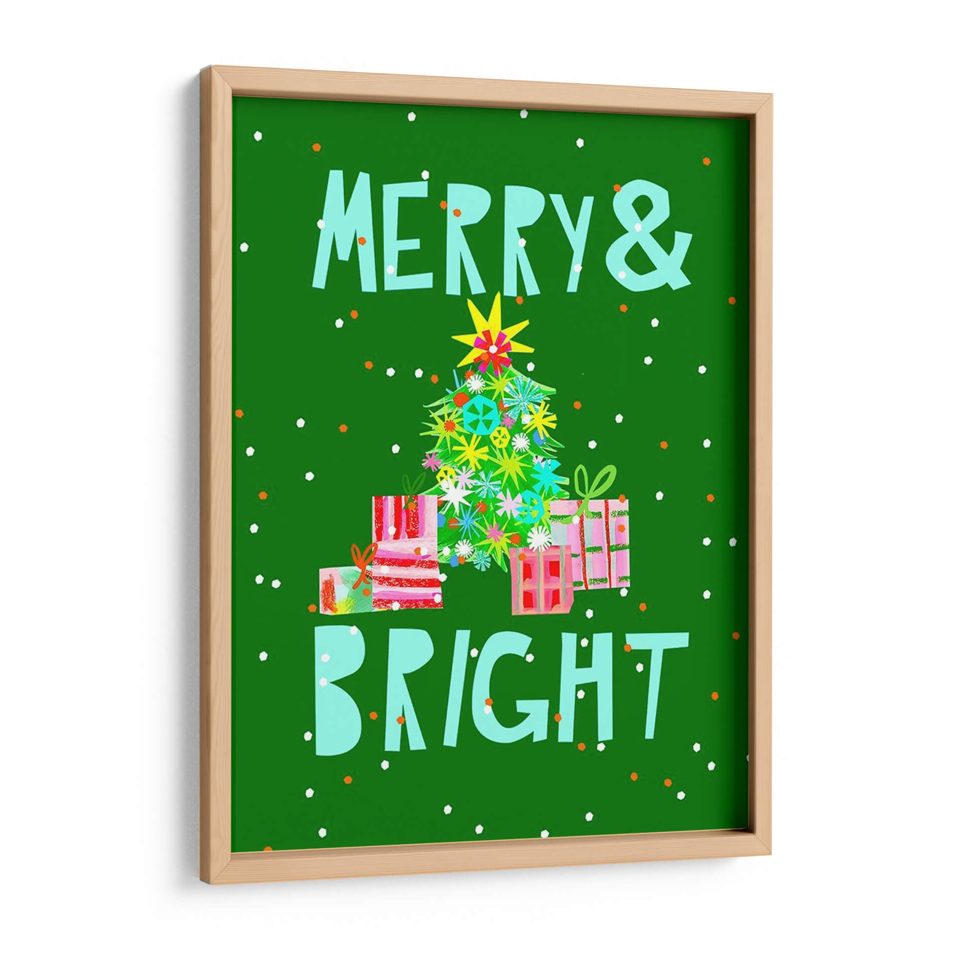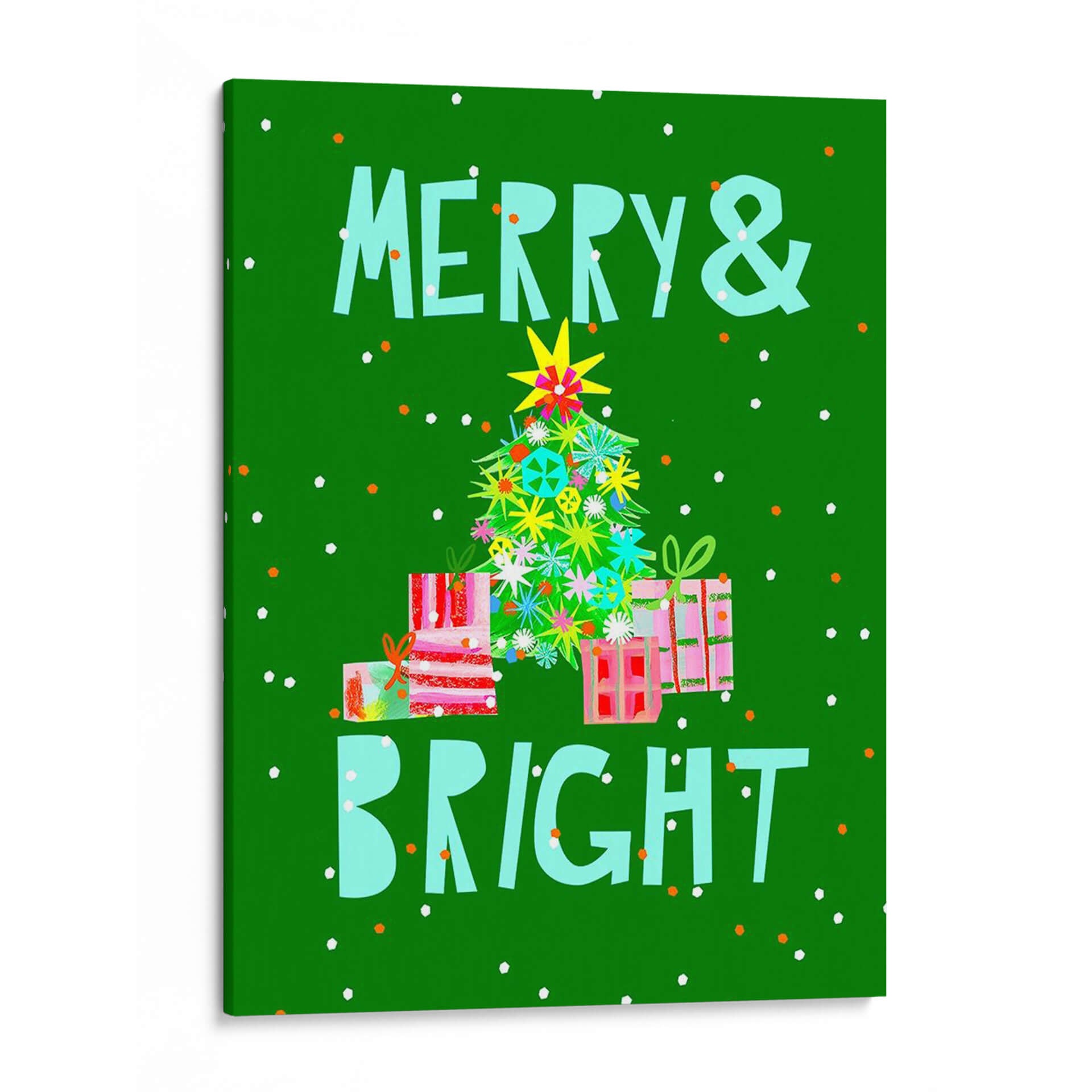 Celebra la alegría y la festividad con este vibrante cuadro decorativo "Feliz Y Brillante Vi" de Stephen Switzer. La obra captura la esencia de la temporada navideña con una paleta de colores vivos y un estilo audaz que irradia energía positiva. En un fondo verde intenso, se despliega un árbol de Navidad ricamente decorado con ornamentos coloridos y brillantes, rodeado de regalos envueltos con esmero. Las letras estilizadas "Feliz &" y "Brillante" en un tono turquesa complementan perfectamente la escena, reforzando el mensaje de celebración. Este cuadro es ideal para añadir un toque de optimismo y espíritu festivo a cualquier espacio, desde la sala de estar hasta una oficina o un espacio comercial. Su diseño contemporáneo y su atmósfera alegre lo convierten en una pieza perfecta para quienes buscan infundir calidez y optimismo en su decoración durante las fiestas o todo el año. La composición dinámica y el uso audaz del color hacen de esta obra un punto focal cautivador, invitando a la reflexión y al gozo. Añade este toque de felicidad a tu hogar y crea un ambiente acogedor y lleno de luz.