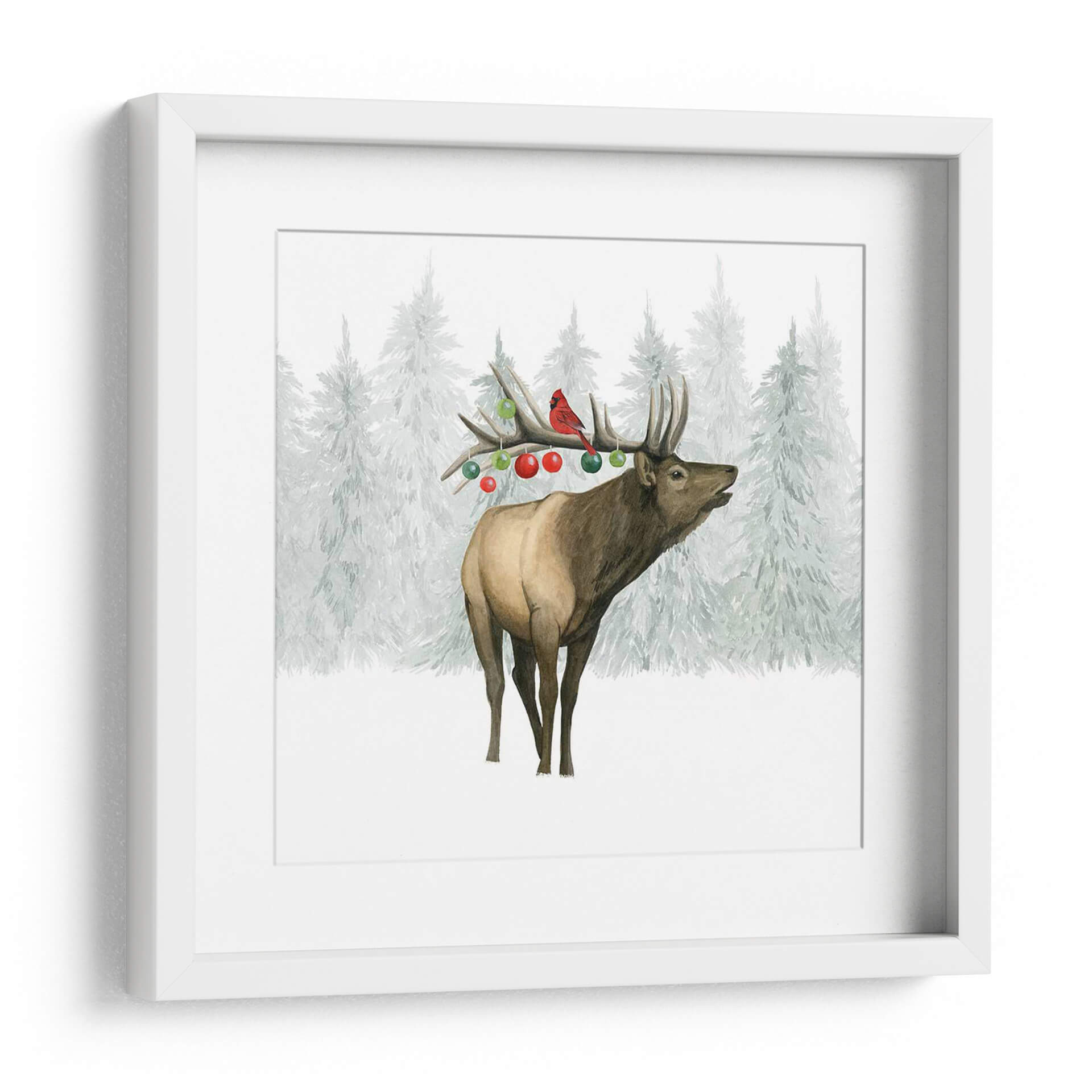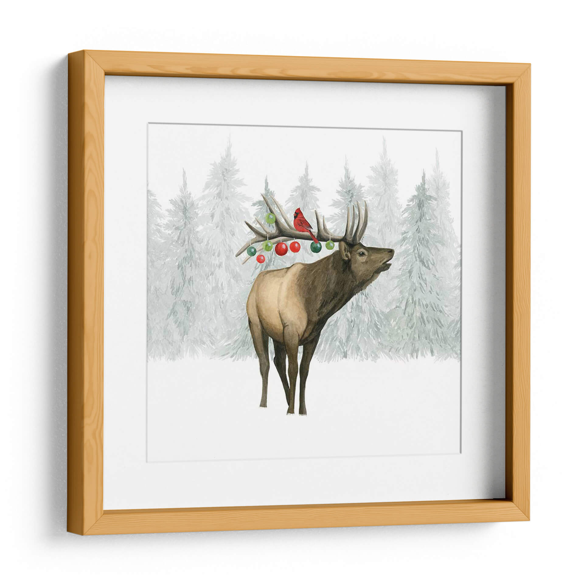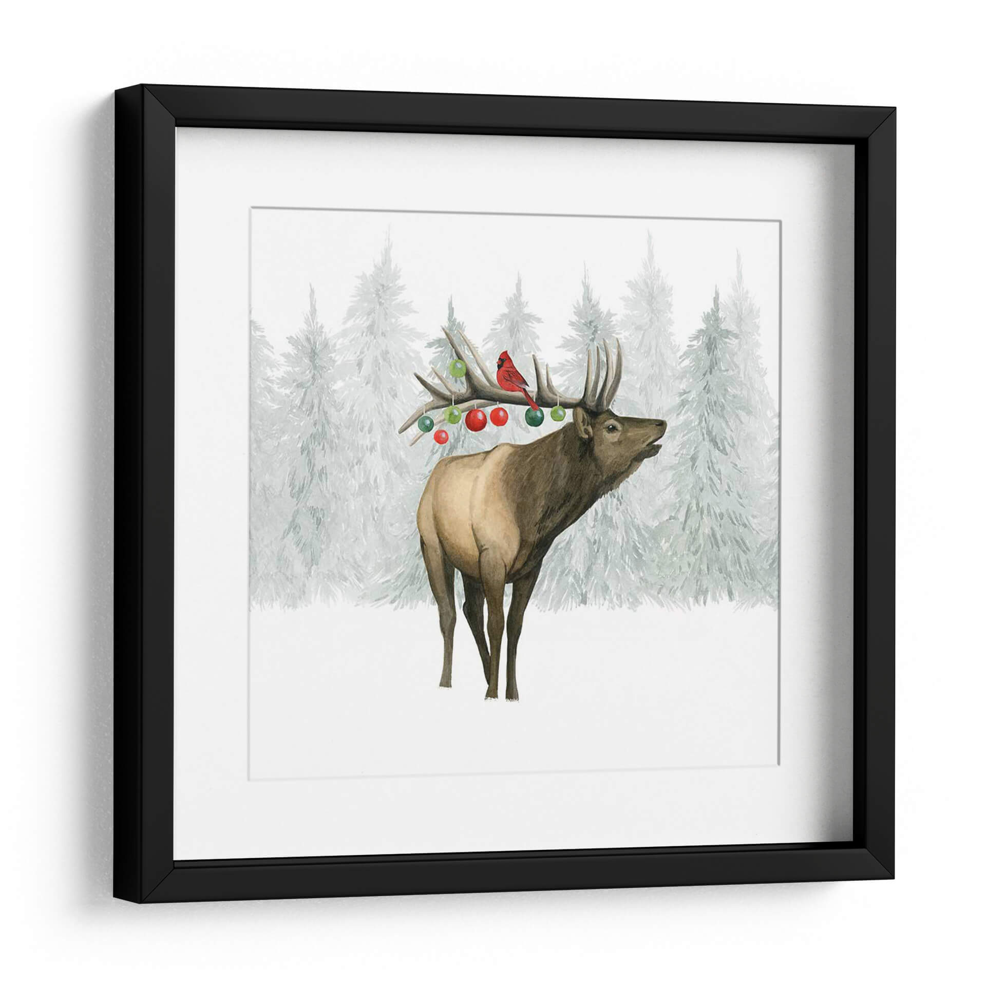 Sumérgete en la magia invernal con "Forest Festive II", una cautivadora obra de arte de Grace Popp que celebra la alegría de la temporada. Este cuadro decorativo presenta un majestuoso alce de pie en un paisaje nevado, adornado con sus astas festivas con delicadas esferas navideñas en tonos rojo y verde, y un vibrante pájaro cardenal posado con gracia. El fondo, compuesto por árboles de coníferas en un suave tono grisáceo, crea una atmósfera serena y acogedora, evocando la tranquilidad de un bosque cubierto de nieve. La paleta de colores, dominada por marrones cálidos, blancos puros, verdes esmeralda y toques de rojo intenso, aporta vida y espíritu festivo a la composición. El estilo acuarela de Grace Popp infunde a la pieza una sensación etérea y encantadora, perfecta para añadir un toque de calidez y alegría navideña a cualquier hogar u oficina durante la temporada de fiestas o como una pieza decorativa encantadora durante todo el año. Ideal para salas de estar, comedores o incluso como un detalle festivo en un espacio de trabajo, "Forest Festive II" es una adición conmovedora y estilizada a tu colección de arte de pared.