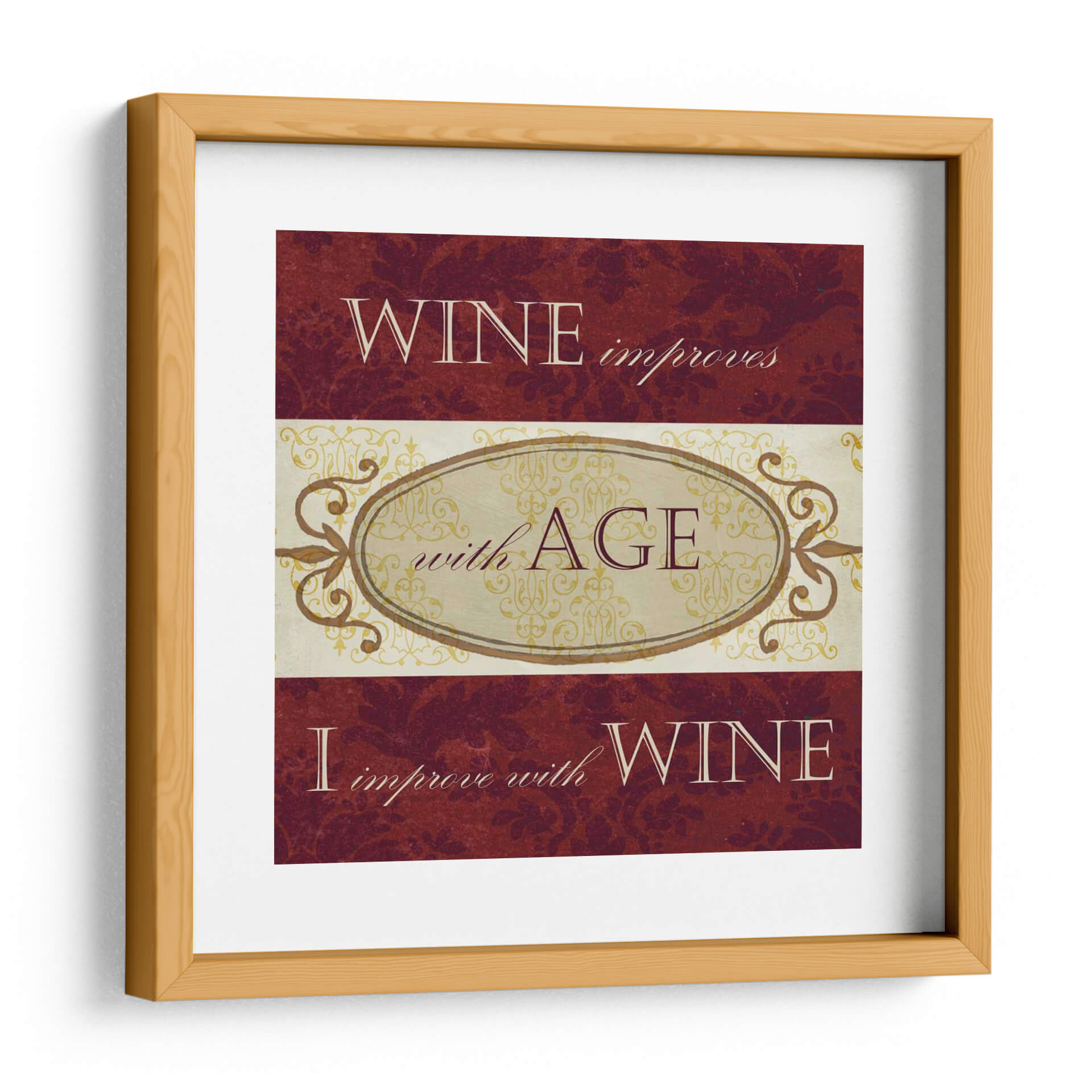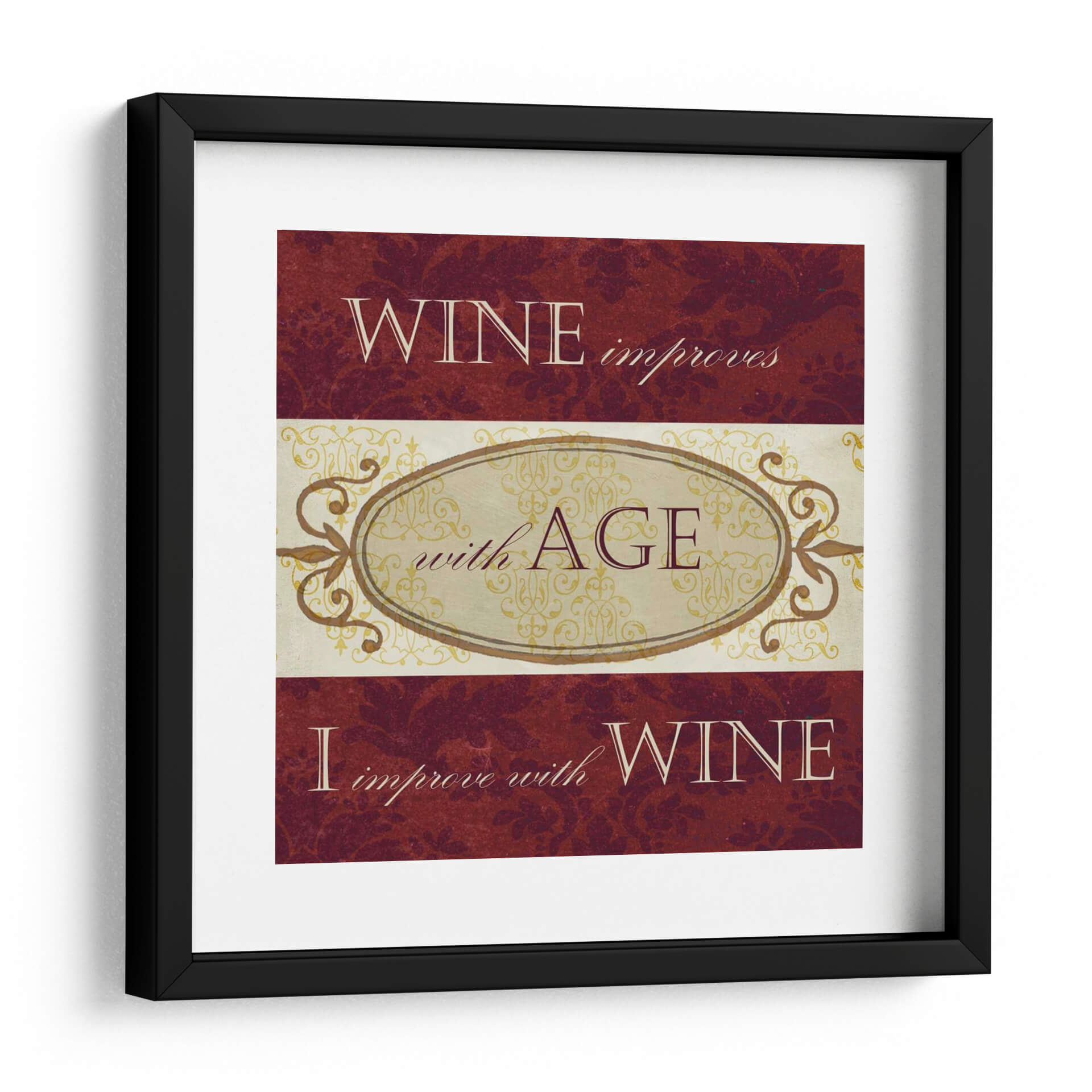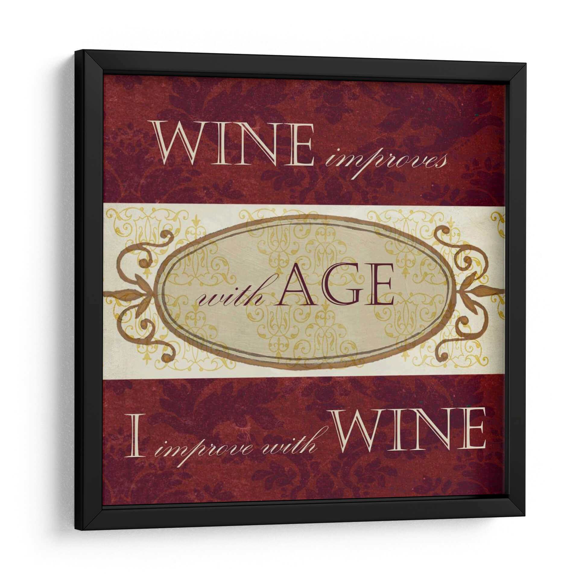 Este evocador cuadro decorativo 'Frases De Vino Iii' del Studio W captura la esencia de la apreciación del vino con un toque de elegancia clásica. La obra presenta un diseño tipográfico audaz sobre un fondo rico en texturas y tonos borgoña, contrastando con una franja central de color marfil adornada con intrincados motivos dorados. Las frases 'WINE improves with AGE' y 'I improve with WINE' invitan a la reflexión y celebran la complejidad y el placer asociados al vino. La paleta de colores, dominada por el rojo vino y los acentos dorados, crea una atmósfera de sofisticación y calidez, ideal para espacios que buscan un aire de distinción. Este diseño atemporal es perfecto para añadir carácter a cocinas gourmet, bodegas privadas, comedores o cualquier rincón donde se celebre el arte de la enología. Su composición equilibrada y su mensaje ingenioso lo convierten en una pieza de conversación, capaz de realzar la decoración de interiores modernos y clásicos por igual. Aporta una dosis de personalidad y estilo a tu hogar u oficina con esta obra que combina humor y apreciación por lo bueno de la vida.