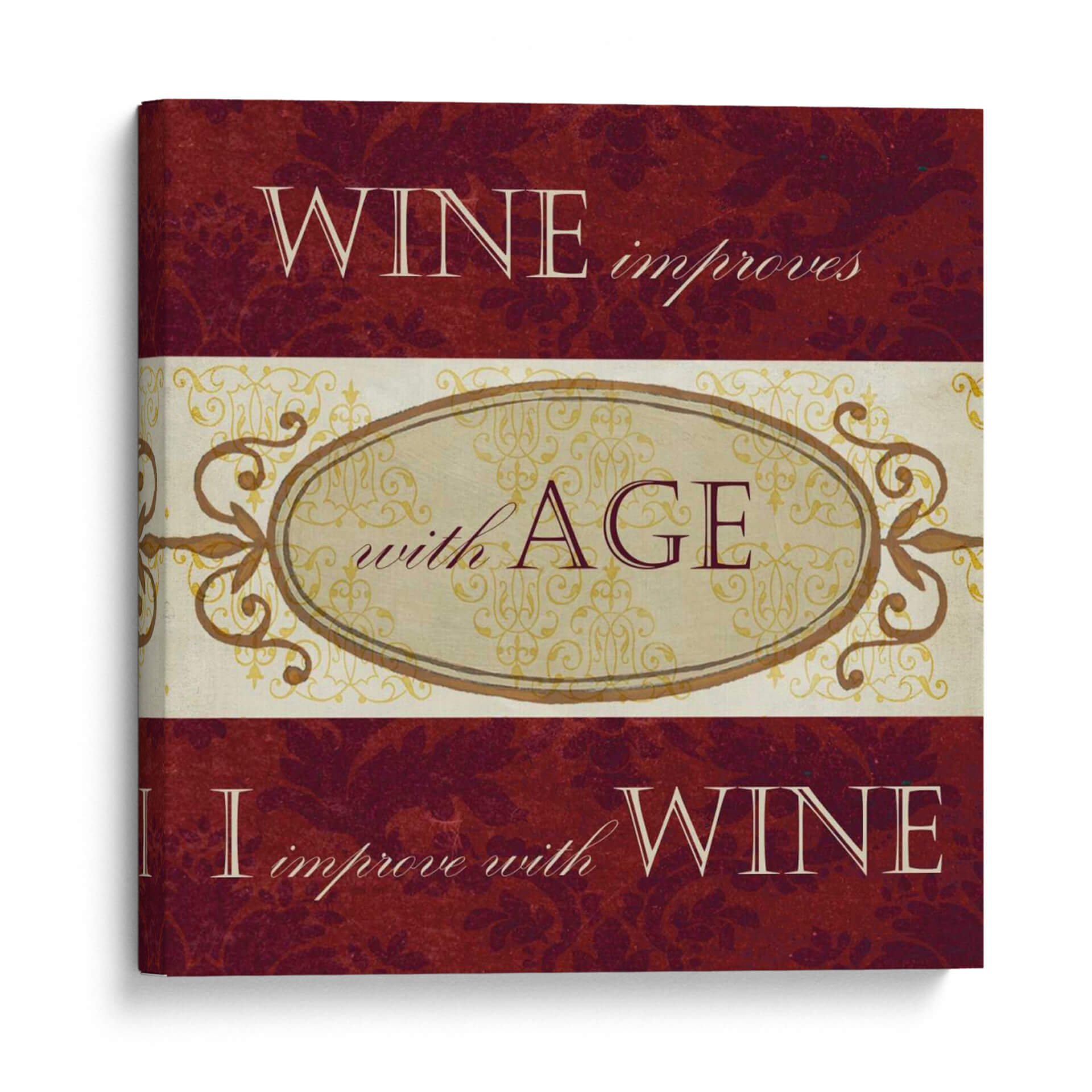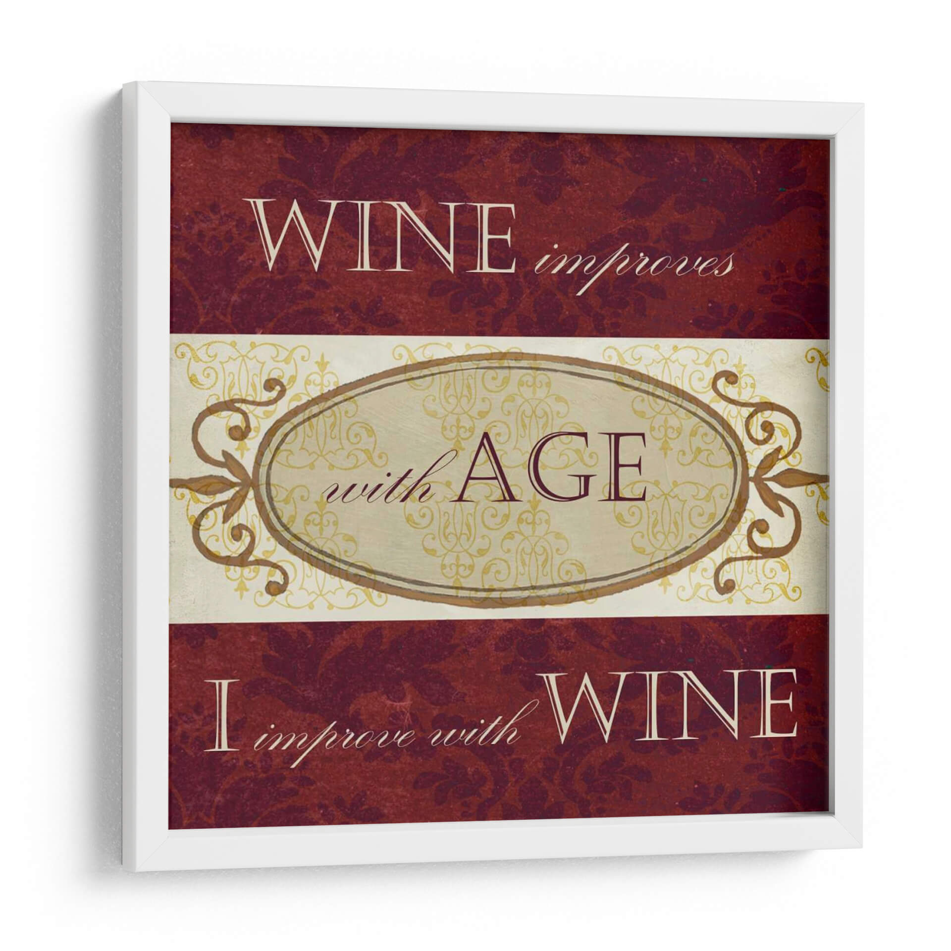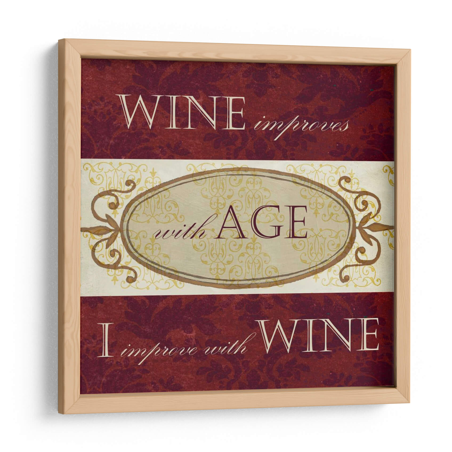 Este evocador cuadro decorativo 'Frases De Vino Iii' del Studio W captura la esencia de la apreciación del vino con un toque de elegancia clásica. La obra presenta un diseño tipográfico audaz sobre un fondo rico en texturas y tonos borgoña, contrastando con una franja central de color marfil adornada con intrincados motivos dorados. Las frases 'WINE improves with AGE' y 'I improve with WINE' invitan a la reflexión y celebran la complejidad y el placer asociados al vino. La paleta de colores, dominada por el rojo vino y los acentos dorados, crea una atmósfera de sofisticación y calidez, ideal para espacios que buscan un aire de distinción. Este diseño atemporal es perfecto para añadir carácter a cocinas gourmet, bodegas privadas, comedores o cualquier rincón donde se celebre el arte de la enología. Su composición equilibrada y su mensaje ingenioso lo convierten en una pieza de conversación, capaz de realzar la decoración de interiores modernos y clásicos por igual. Aporta una dosis de personalidad y estilo a tu hogar u oficina con esta obra que combina humor y apreciación por lo bueno de la vida.