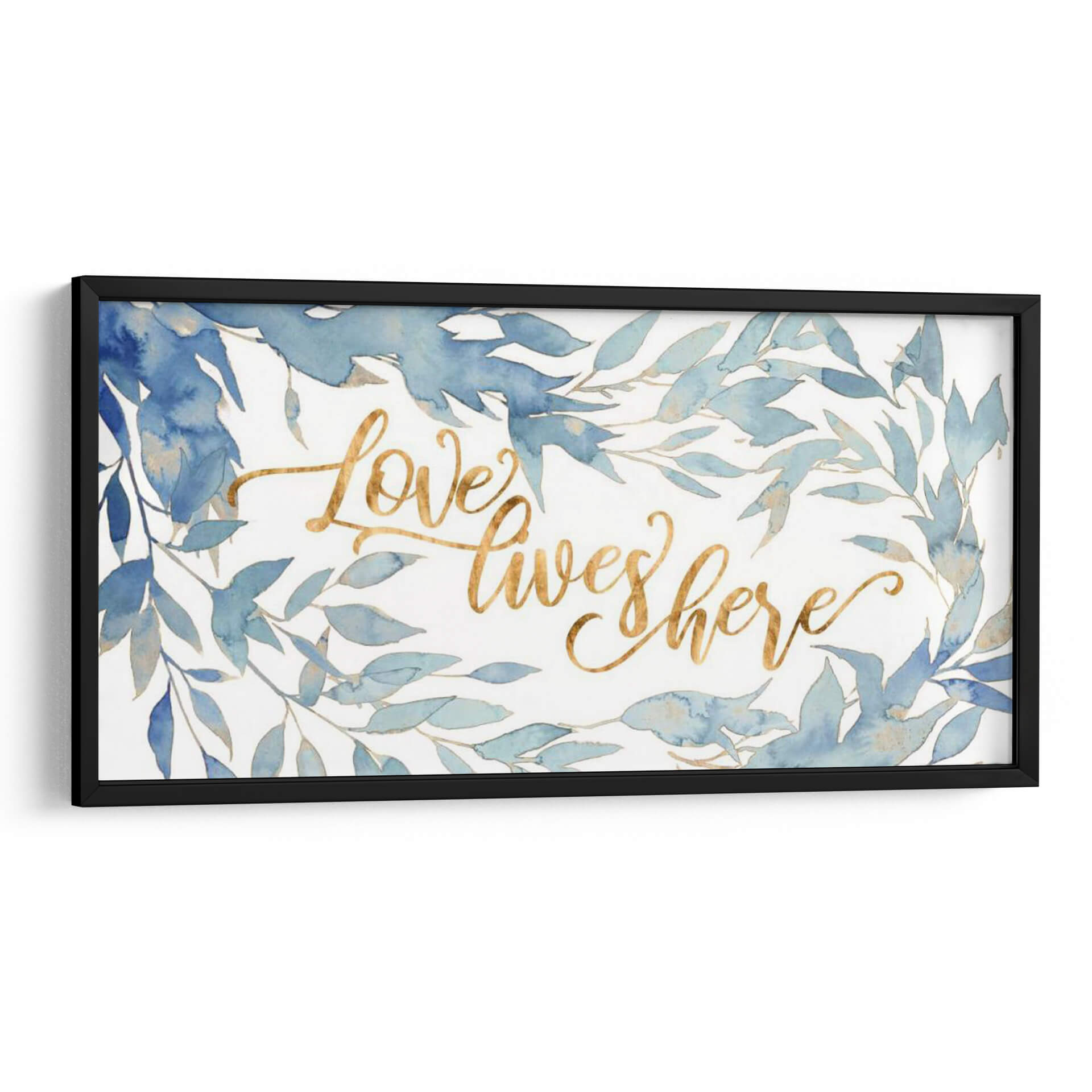 Embellece tu hogar con el cuadro decorativo 'Glamear Love I' de Grace Popp, una obra que irradia calidez y estilo. Esta pieza presenta una delicada composición de hojas en acuarela, teñidas en tonos serenos de azul y realzadas con sutiles toques dorados que capturan la luz. El texto 'love lives here' (el amor vive aquí) escrito en una elegante caligrafía dorada, añade un mensaje conmovedor y personal a la pieza, convirtiéndola en el centro de atención perfecto para cualquier habitación. Su diseño, que evoca la frescura de la naturaleza y la elegancia del lettering, se adapta a una variedad de estilos decorativos, desde el moderno hasta el bohemio o el escandinavo. Ideal para salones, dormitorios o cualquier espacio donde desees infundir una atmósfera de amor y bienvenida. Este cuadro decorativo no es solo una adición estética, sino una expresión de los sentimientos que definen tu hogar. La técnica de acuarela aporta una ligereza y fluidez únicas, mientras que los detalles dorados le confieren un toque de lujo. 'Glamear Love I' es la elección perfecta para quienes buscan arte de pared que sea tanto significativo como visualmente cautivador, aportando una dosis de encanto y sofisticación a tu decoración.