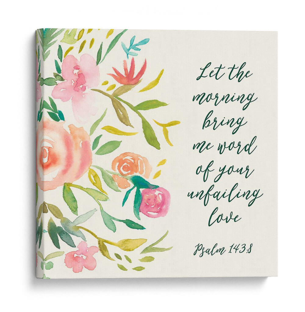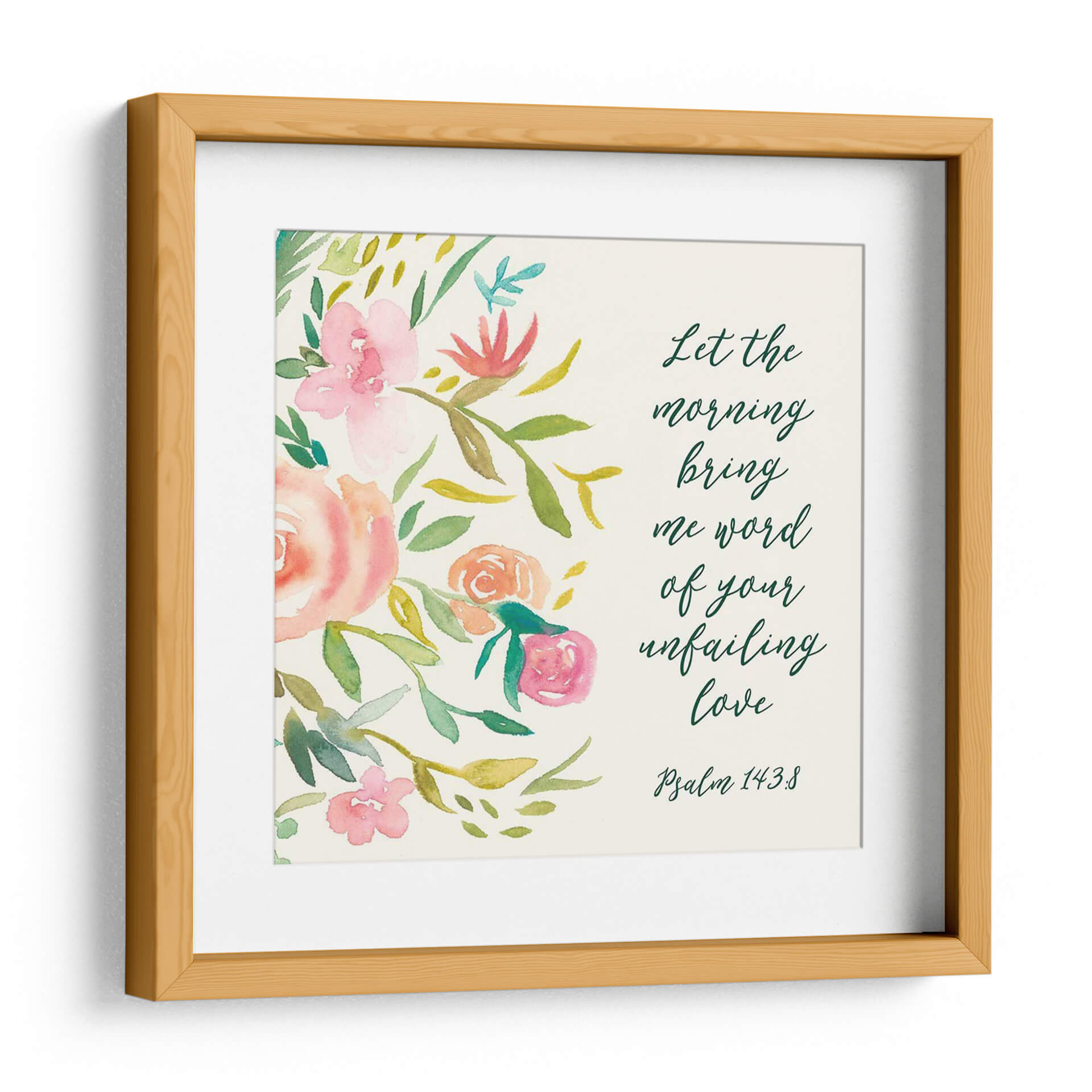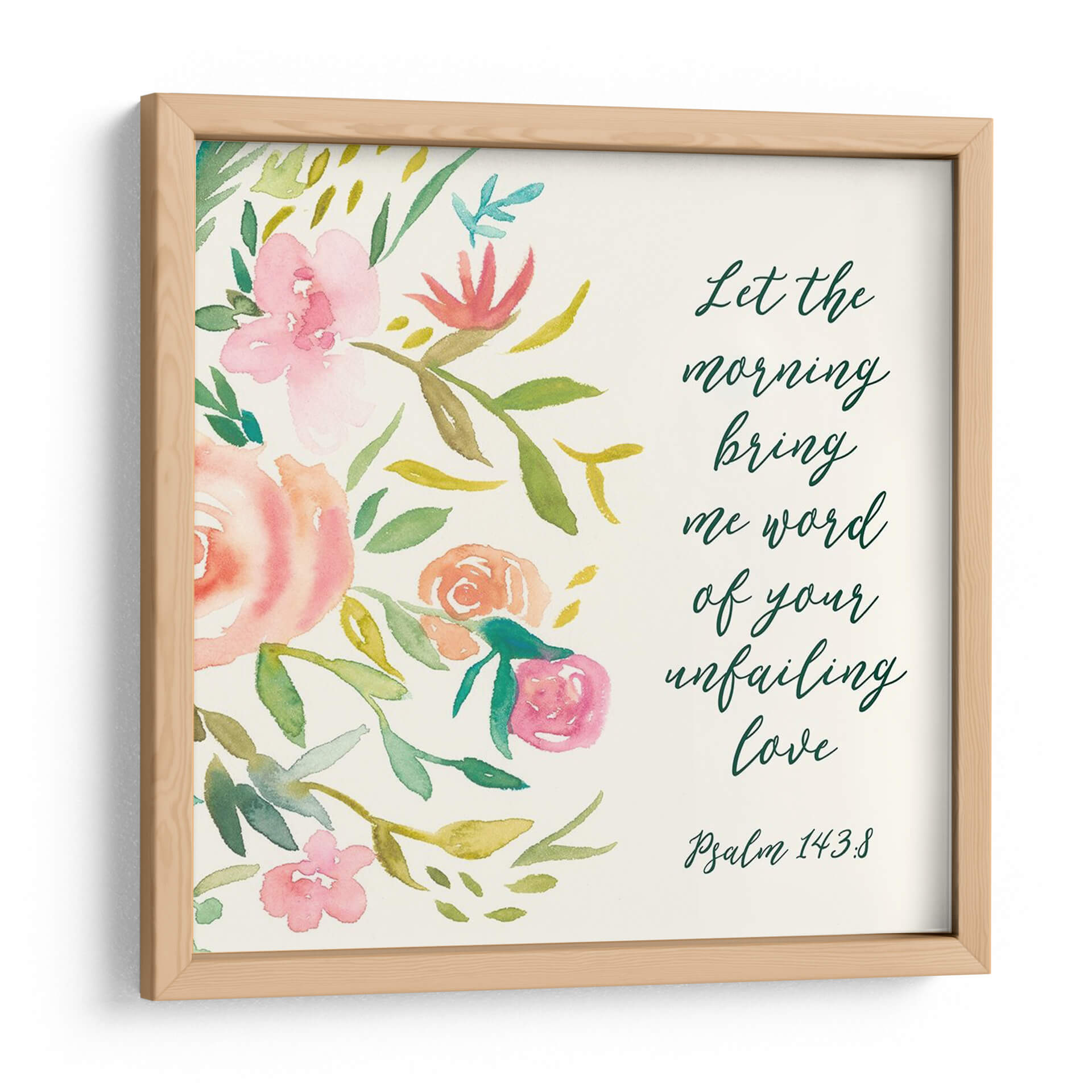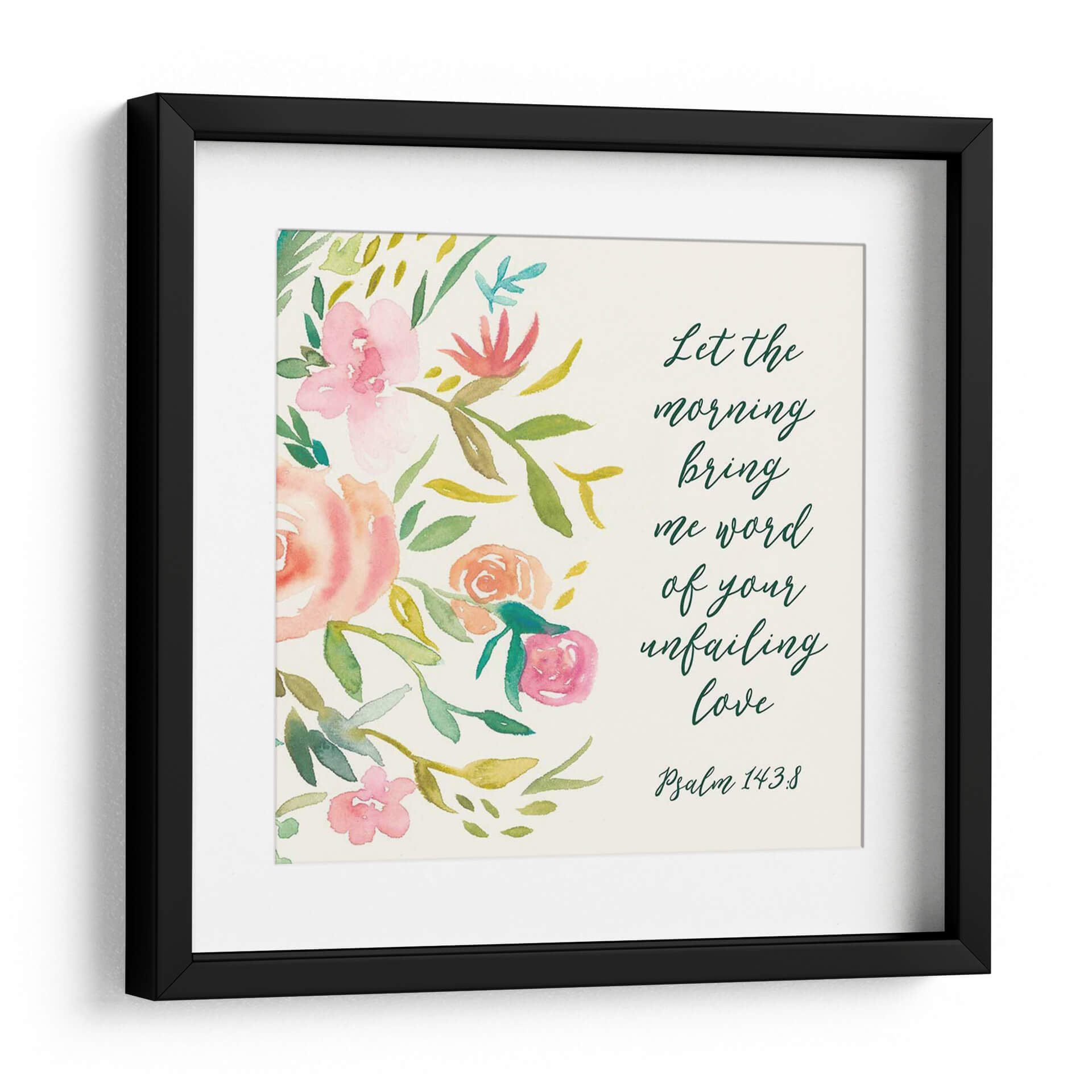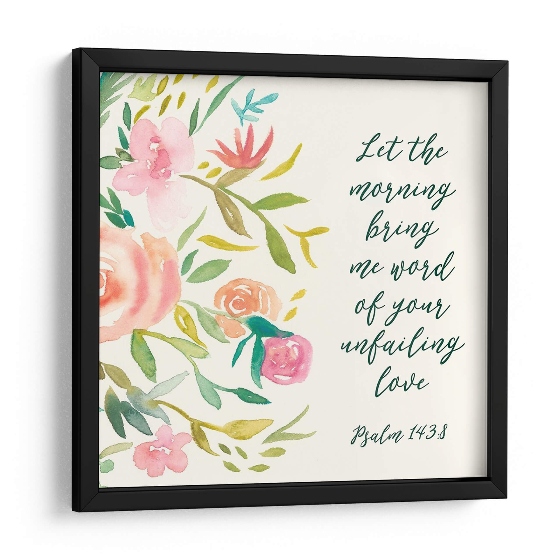 Añade un toque de dulzura y serenidad a tu hogar con este encantador cuadro decorativo, "Gracia Sobre La Gracia II". La obra presenta una delicada acuarela de flores en tonos pastel, que evoca una sensación de calma y esperanza. Las rosas rosadas y coralinas, junto con el follaje verde vibrante, crean una composición armoniosa que ilumina cualquier espacio. El texto inscrito, "Let the morning bring me word of your unfailing love, Psalm 143:8", añade una capa de significado espiritual y reconfortante, convirtiendo esta pieza en un recordatorio diario de amor y fe. Ideal para dormitorios, salas de estar o cualquier rincón que necesite un toque de inspiración y belleza botánica. Este cuadro decorativo es perfecto para quienes buscan arte que transmita paz y devoción, integrándose maravillosamente en estilos de decoración contemporáneos o clásicos, aportando una atmósfera de tranquilidad y elegancia. Una elección perfecta para regalar o para darte un capricho con una pieza que nutre el alma y embellece tus paredes.
