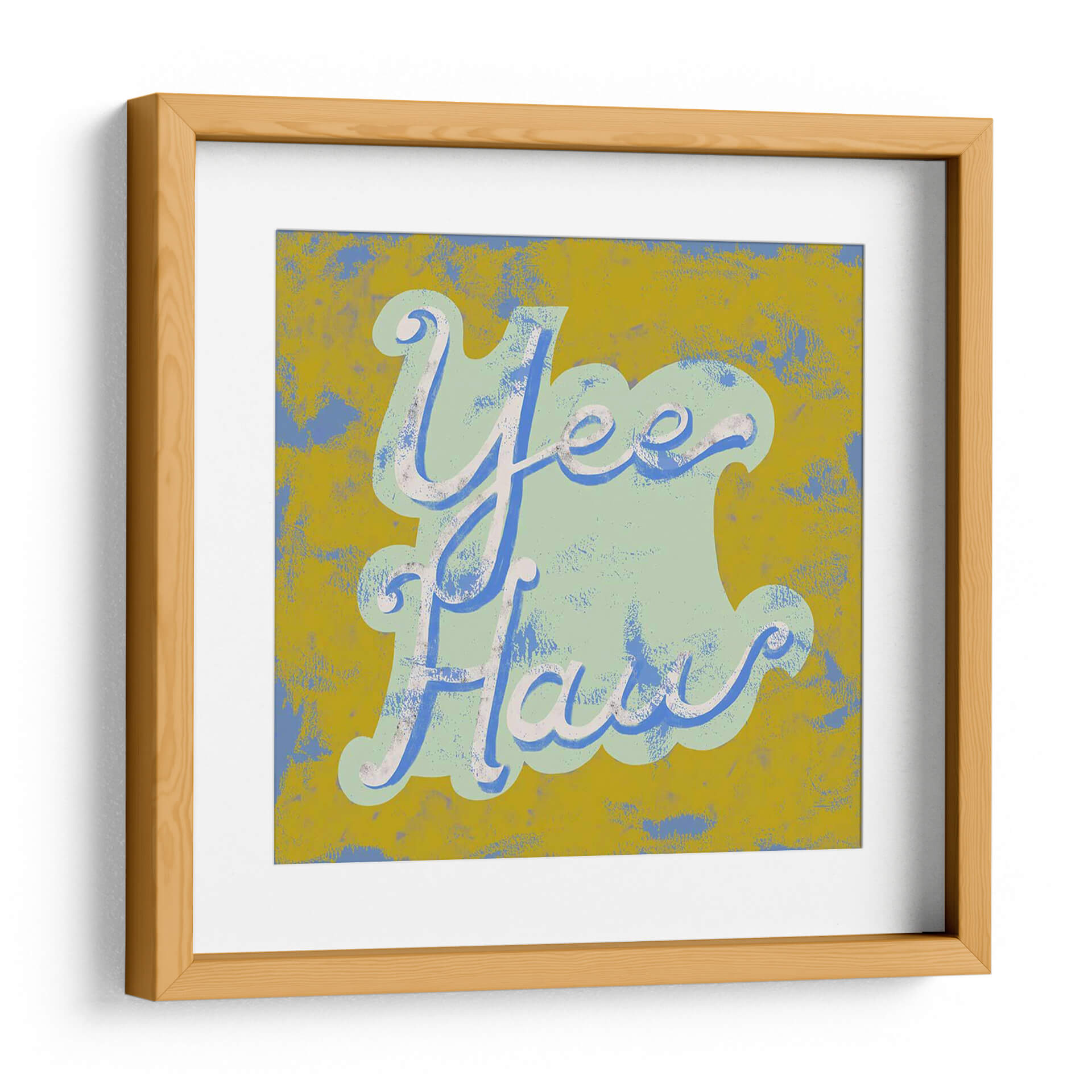Dale un toque vibrante y juguetón a tu espacio con el cuadro decorativo "Grito Iv" de Chariklia Zarris. Esta obra de arte cautiva con su estilo gráfico y tipográfico, presentando las palabras "Yee" y "Haw" en una composición audaz y dinámica. La paleta de colores, dominada por un amarillo intenso y texturizado, se complementa con bloques de color verde menta y acentos en azul, creando un contraste energético que atrae la mirada. Las letras, con un contorno blanco y un acabado desgastado, aportan un aire retro y auténtico, evocando la nostalgia de la cultura pop o del viejo oeste. "Grito Iv" es perfecto para espacios que buscan una dosis de personalidad y optimismo, como una sala de estar moderna, una oficina creativa o incluso una habitación juvenil. Su diseño audaz lo convierte en un punto focal ideal para conversaciones, transmitiendo una sensación de alegría y espontaneidad. Transforma tus paredes con este cuadro decorativo único que combina arte gráfico y un mensaje enérgico, inyectando vida y carácter a cualquier ambiente. Una pieza que no solo decora, sino que también inspira una actitud positiva y desenfadada.