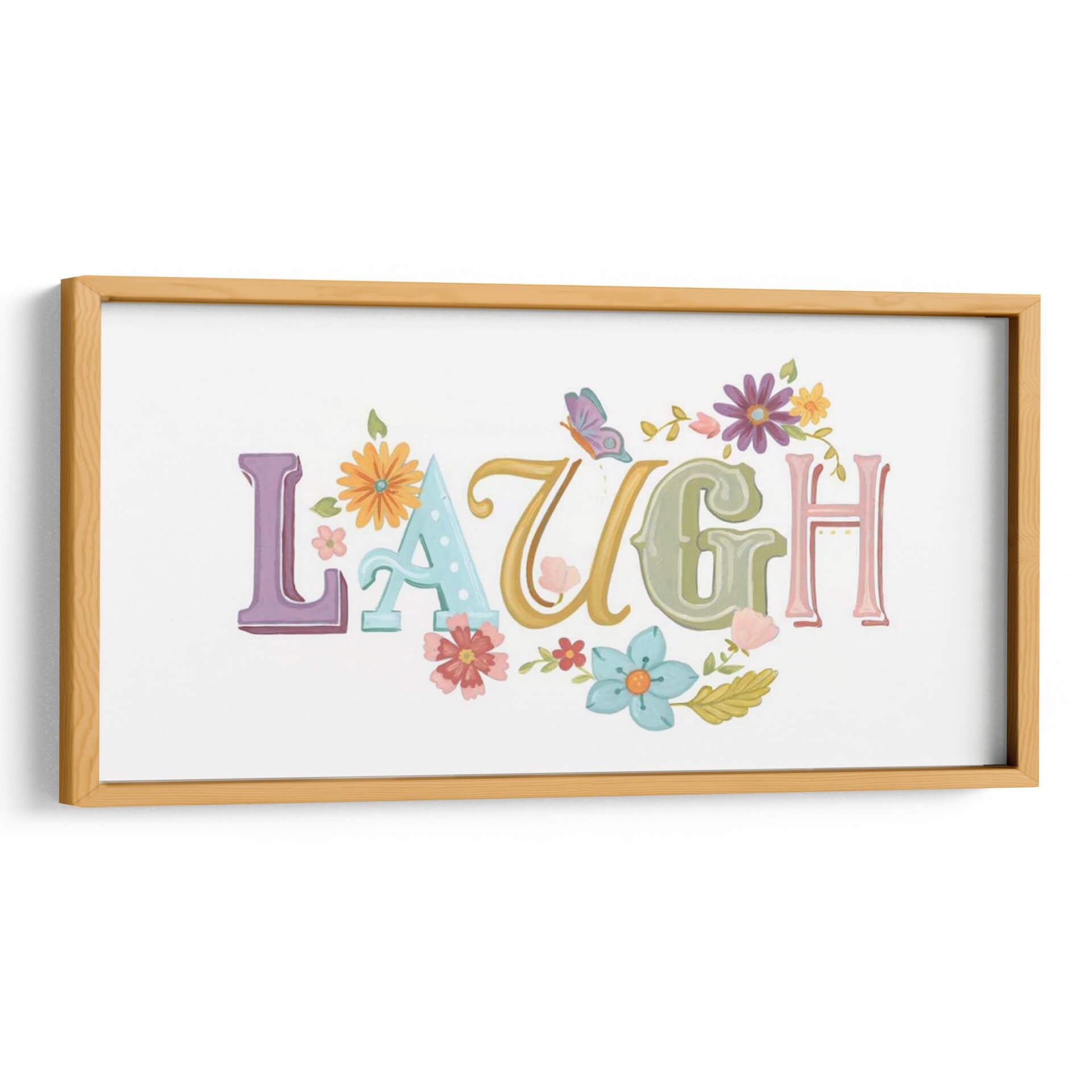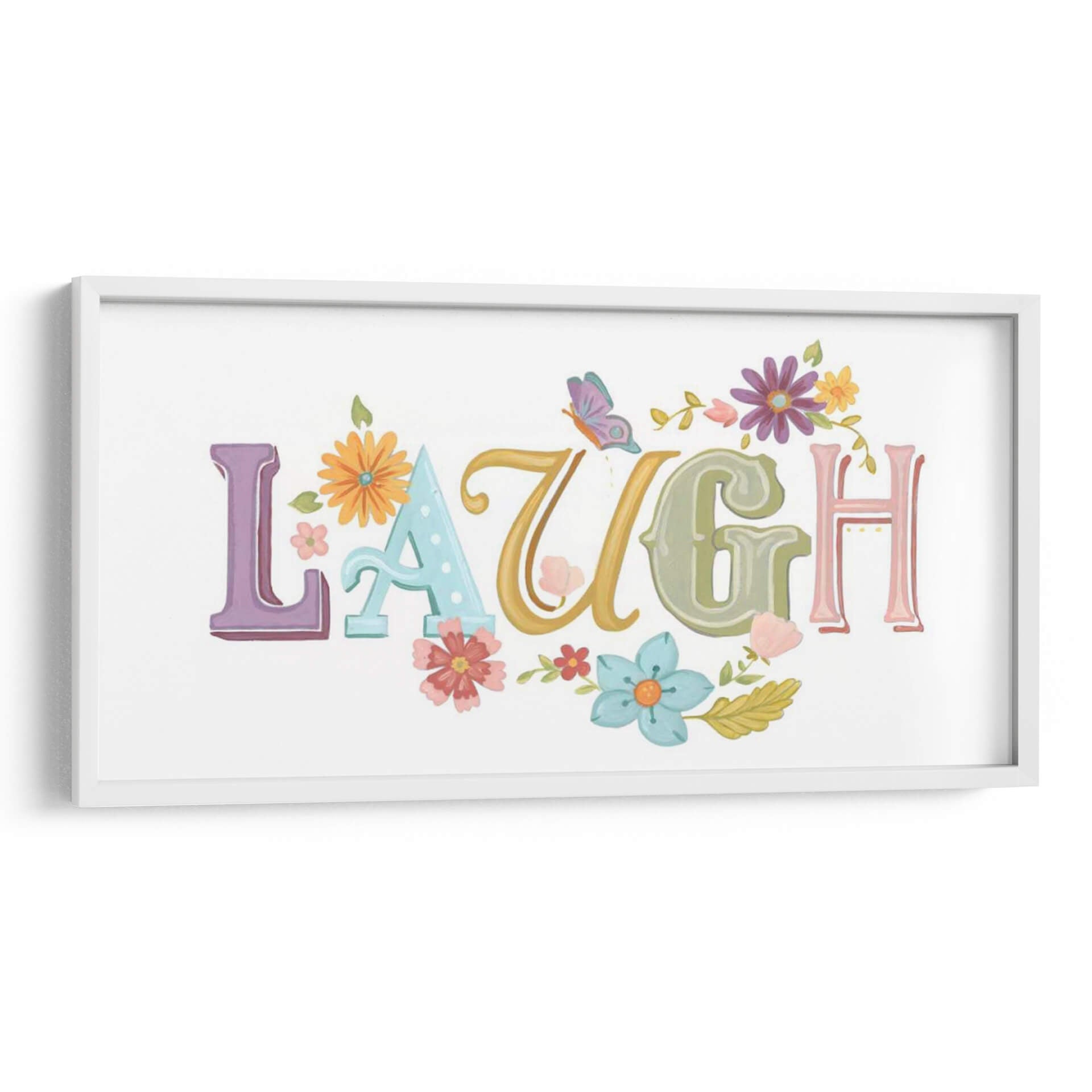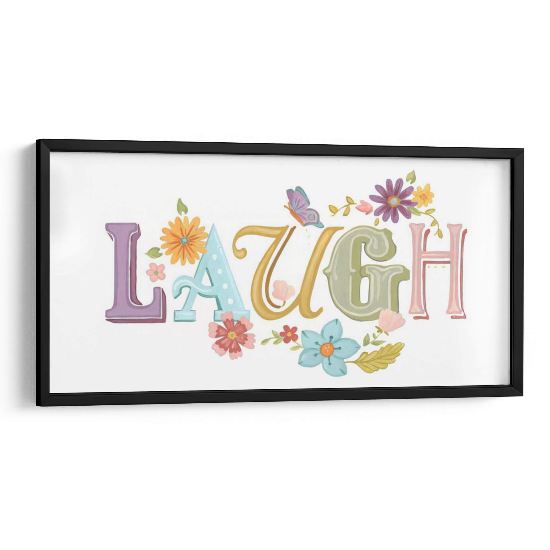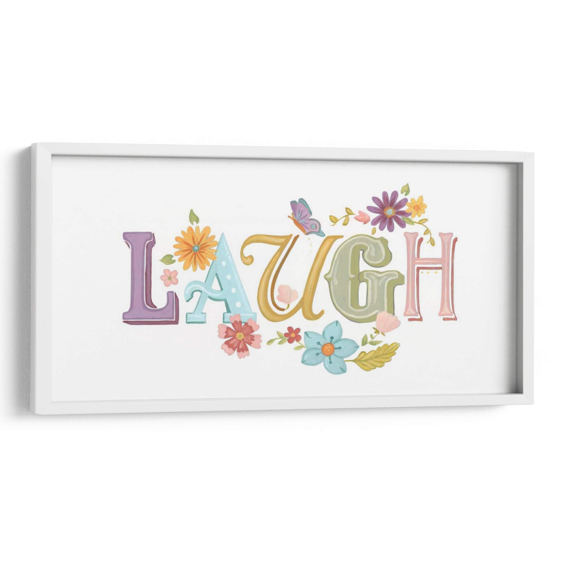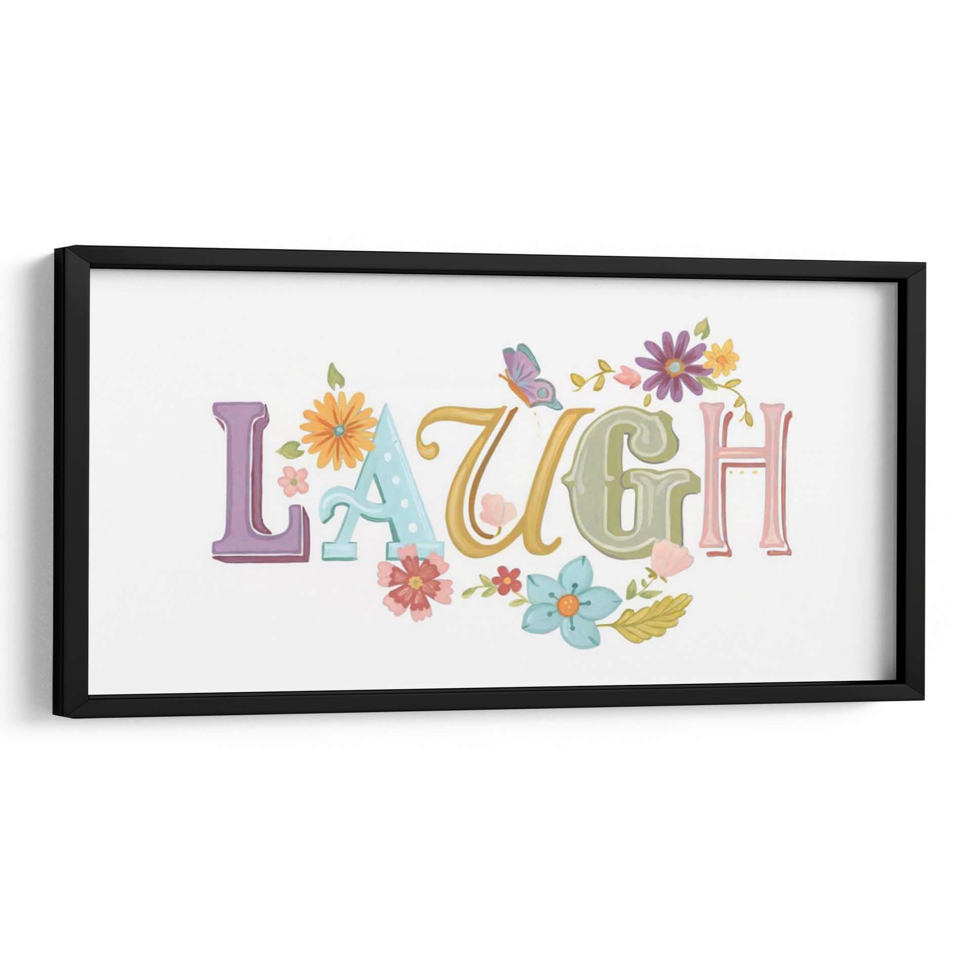 Inyecta alegría y positividad en tu hogar con el encantador cuadro decorativo "Hermosas Palabras III" de June Erica Vess. Esta obra de arte captura la esencia de la felicidad a través de la palabra "LAUGH" (reír) escrita en tipografía juguetona y colorida. Cada letra, en tonos pastel y vibrantes, se entrelaza con delicadas flores y hojas, creando una composición que evoca un jardín en plena primavera. Una mariposa revolotea cerca, añadiendo un toque de magia y ligereza. Los colores pastel como el lavanda, el azul claro, el verde menta y toques de amarillo y rosa, junto con los vibrantes acentos florales, infunden una sensación de optimismo y calidez. Ideal para iluminar cualquier espacio, desde una sala de estar moderna hasta una guardería o una oficina en casa, este cuadro decorativo es un recordatorio constante de disfrutar los momentos alegres de la vida. Su estilo pictórico, con texturas sutiles que recuerdan a la acuarela, aporta una dimensión artística única. Perfecto para quienes buscan arte inspirador y con un mensaje positivo.