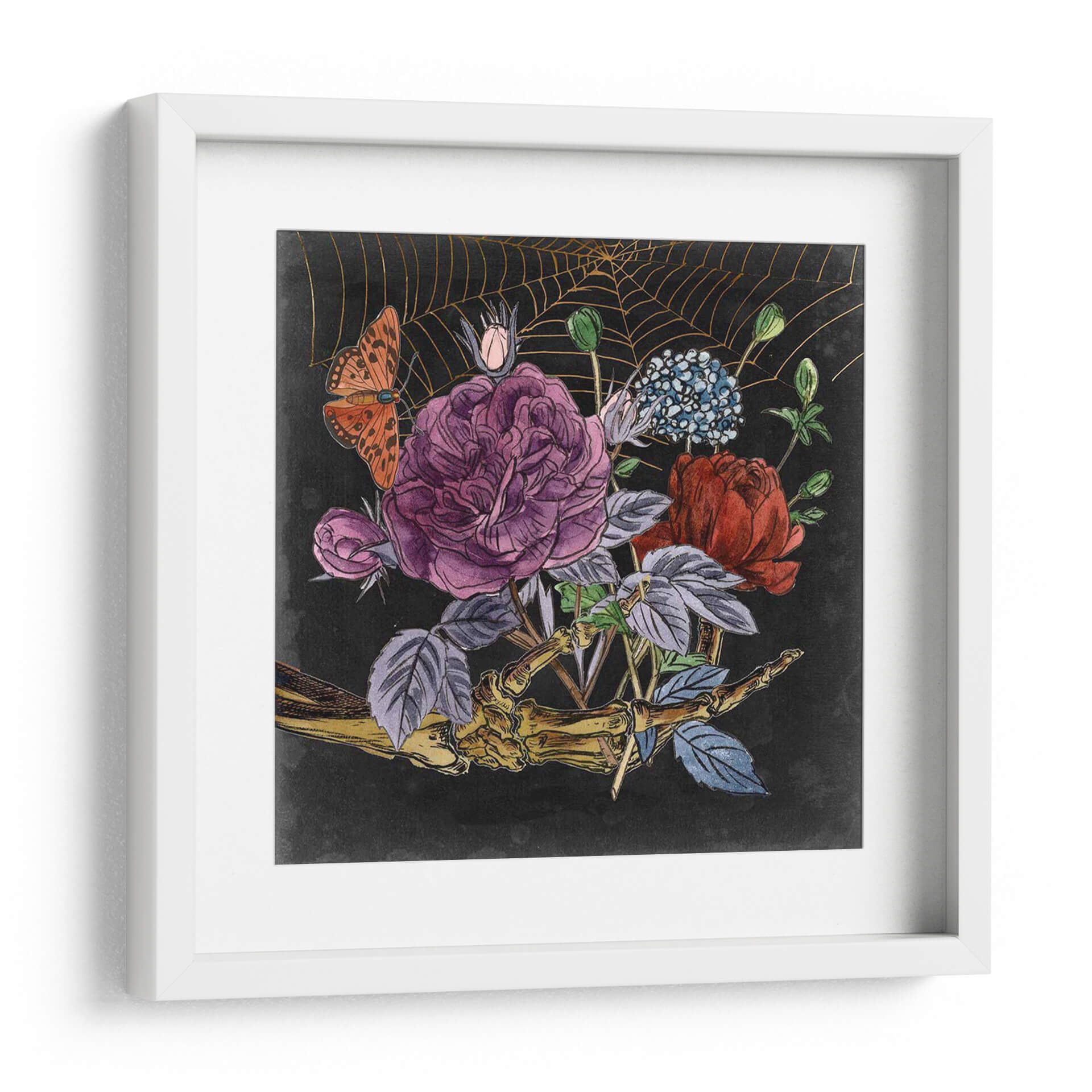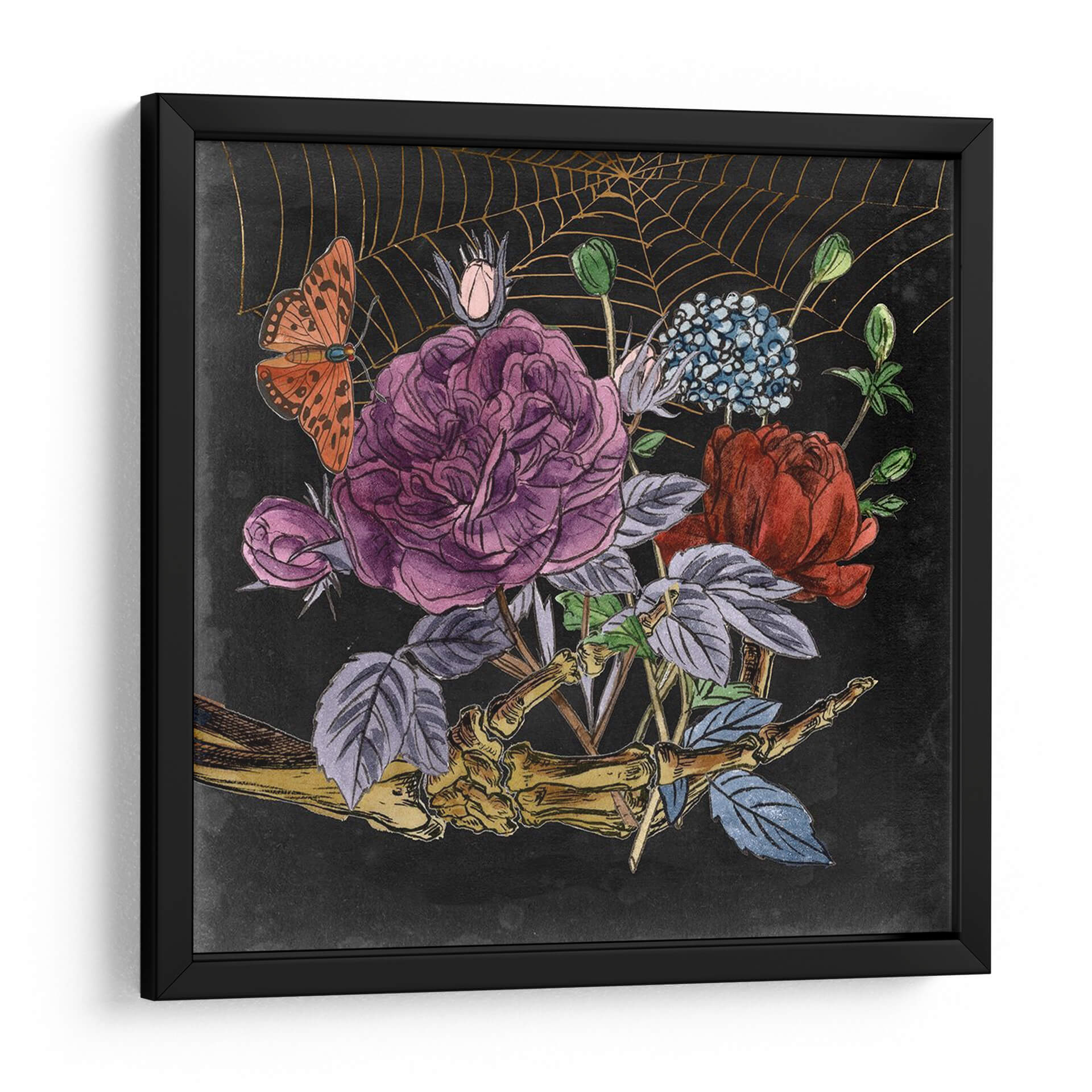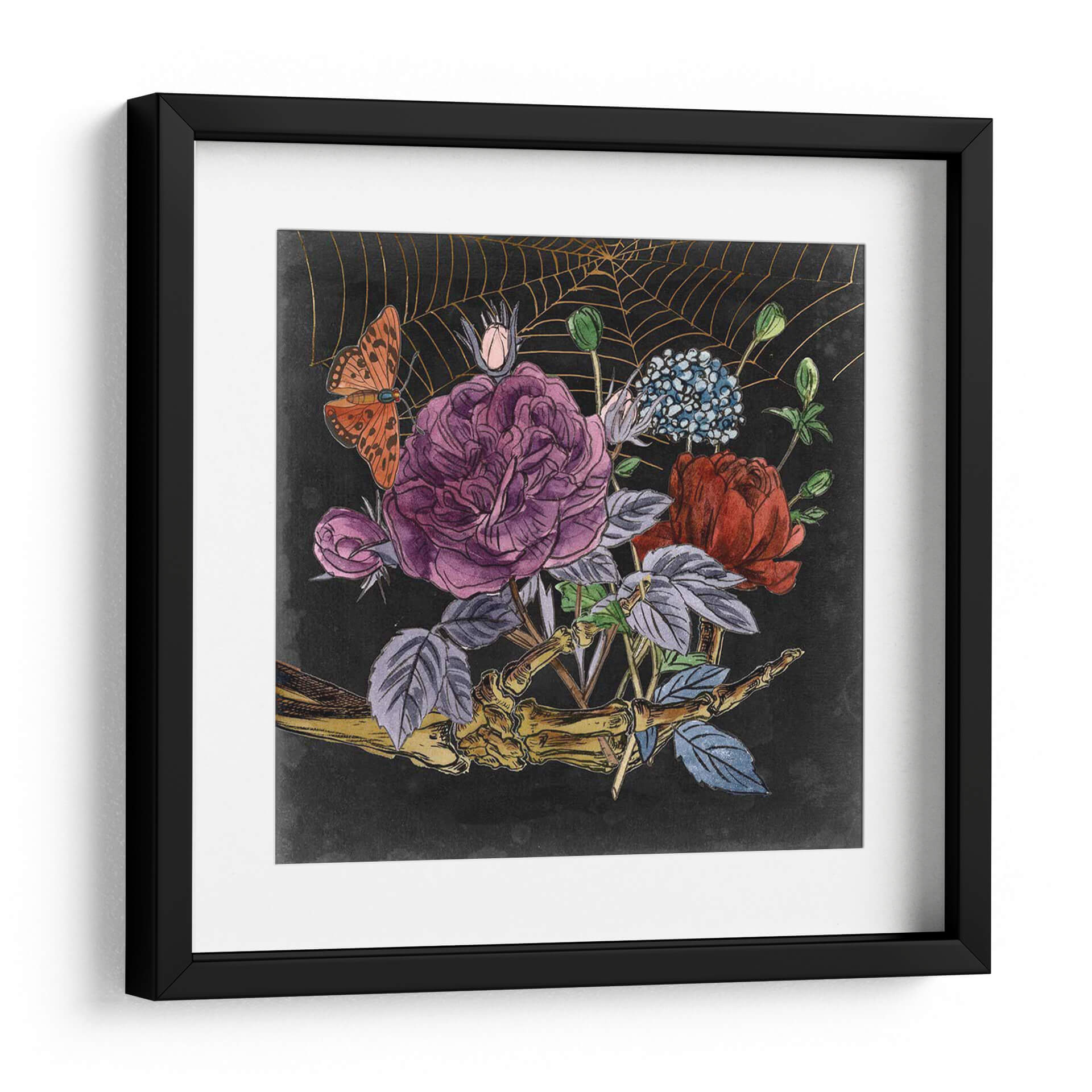 Sumérgete en la enigmática belleza de "Huesos Iv", una obra de arte cautivadora de Melissa Wang que desafía las convenciones. Esta pieza explora la fascinante dualidad entre la vida y la decadencia, presentando un exuberante ramo de flores en tonos morados, rojos y azules, que contrastan dramáticamente con un esqueleto de mano dorada y una telaraña intrincada sobre un fondo oscuro y texturizado. La mariposa naranja vibrante añade un toque de movimiento y vida fugaz a la composición. El estilo detallado y casi gótico de la ilustración evoca una atmósfera de misterio y reflexión, invitando al espectador a contemplar la naturaleza efímera de la existencia. "Huesos Iv" es ideal para quienes buscan añadir un toque de sofisticación audaz y un toque de intriga a su hogar u oficina. Este cuadro decorativo transformará cualquier pared en un punto focal de conversación, perfecto para salas de estar, estudios o comedores que aprecien el arte contemporáneo con un giro inesperado. La detallada acuarela y los toques dorados le confieren una calidad lujosa, mientras que el tema subyacente añade profundidad y carácter a tu decoración.