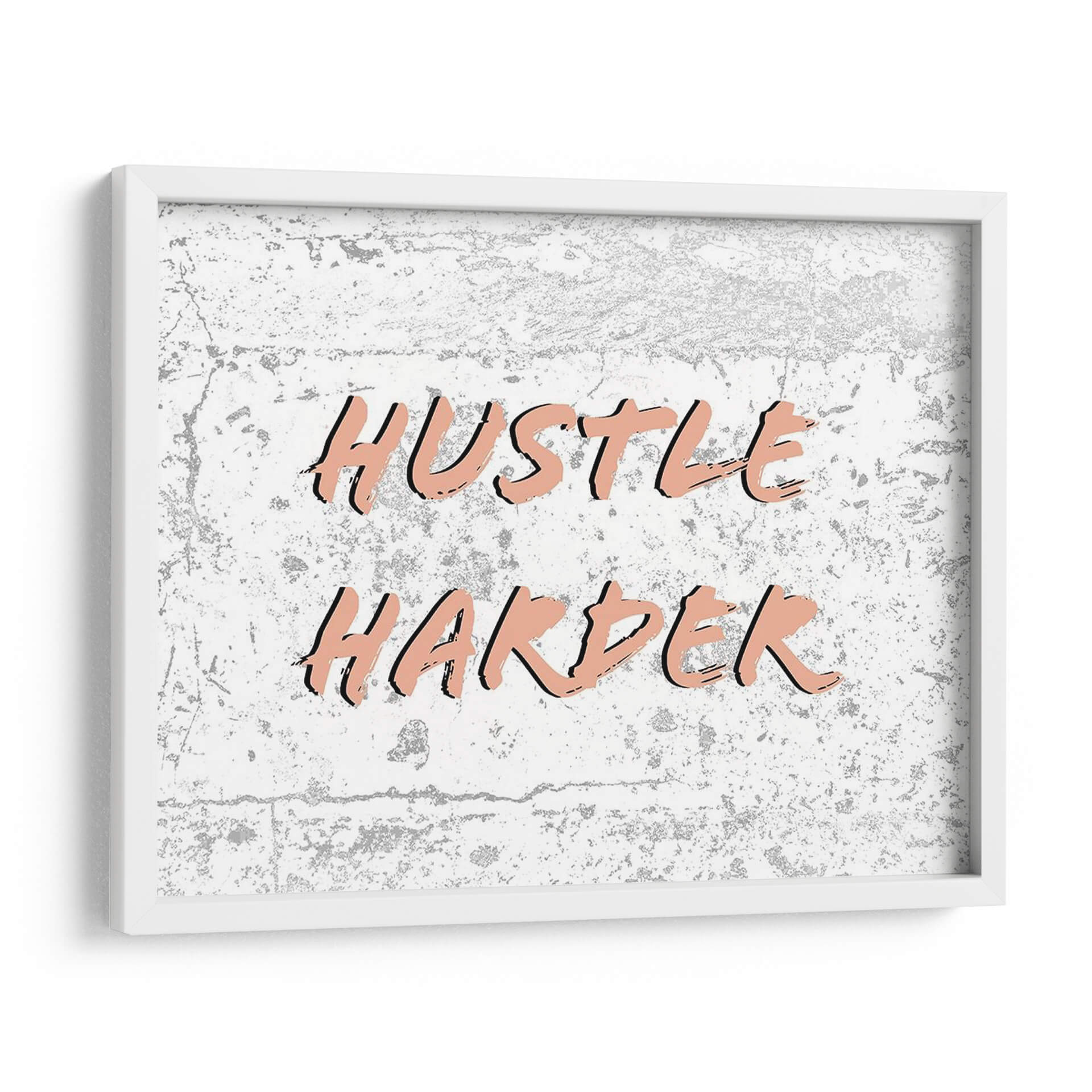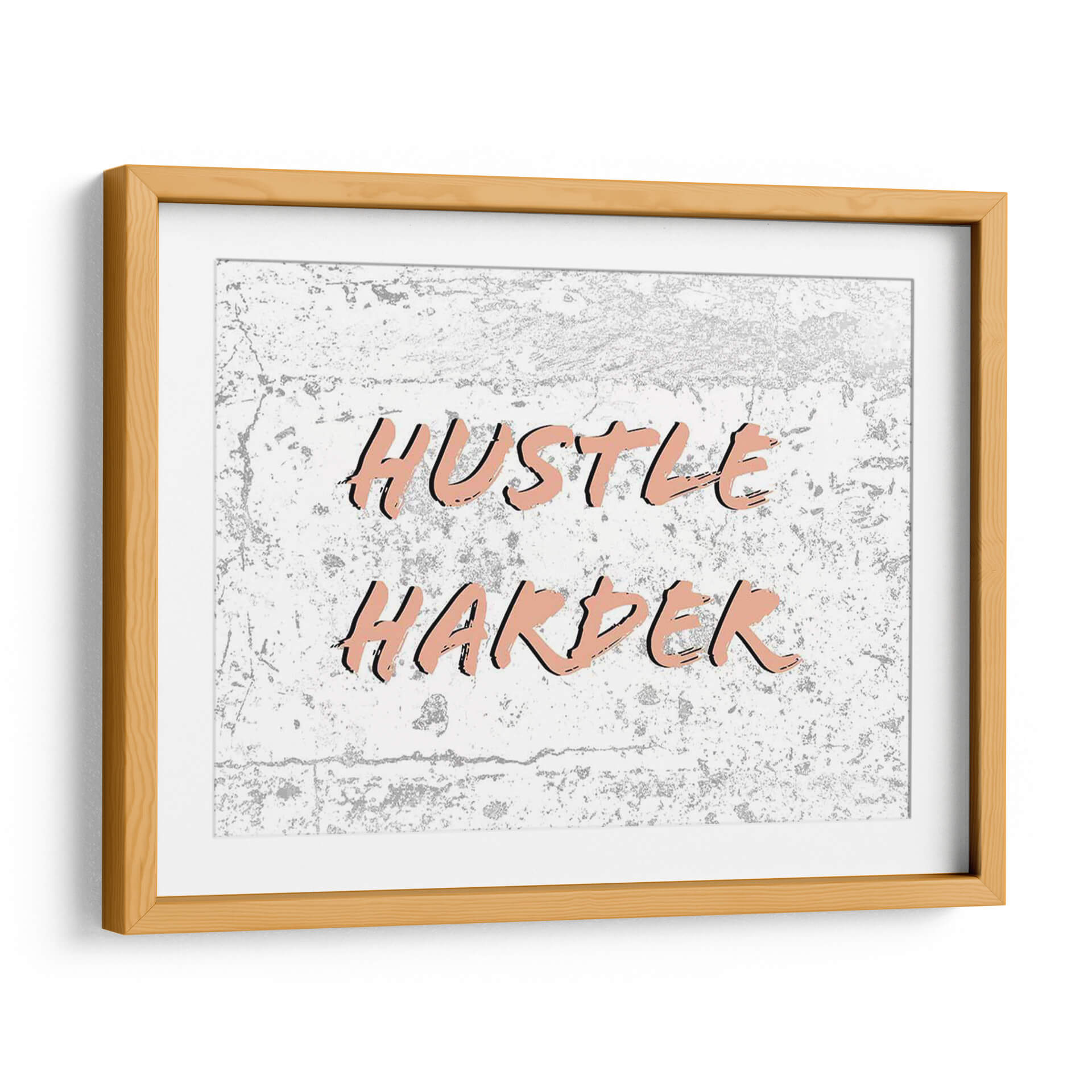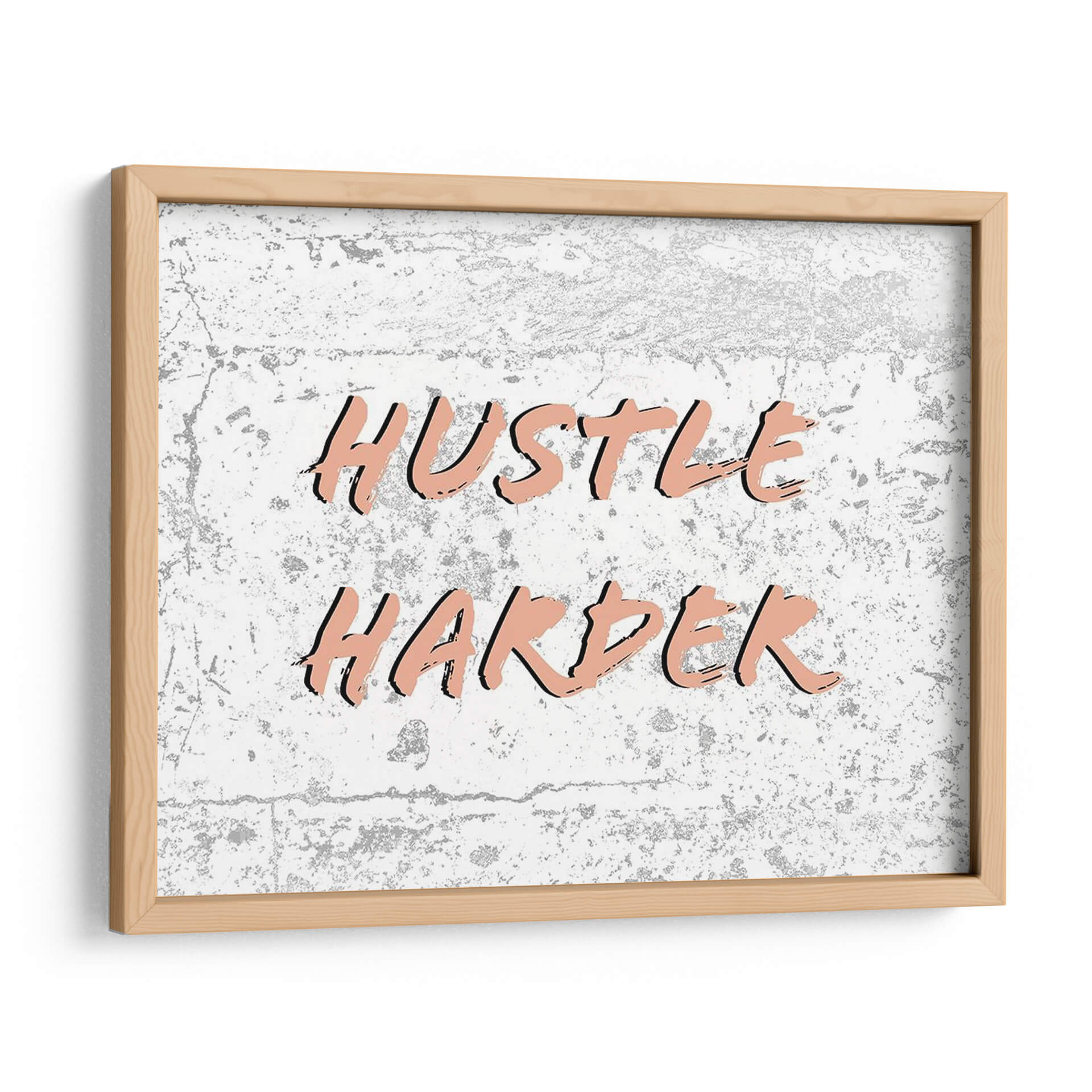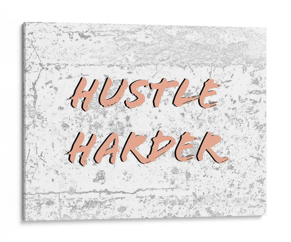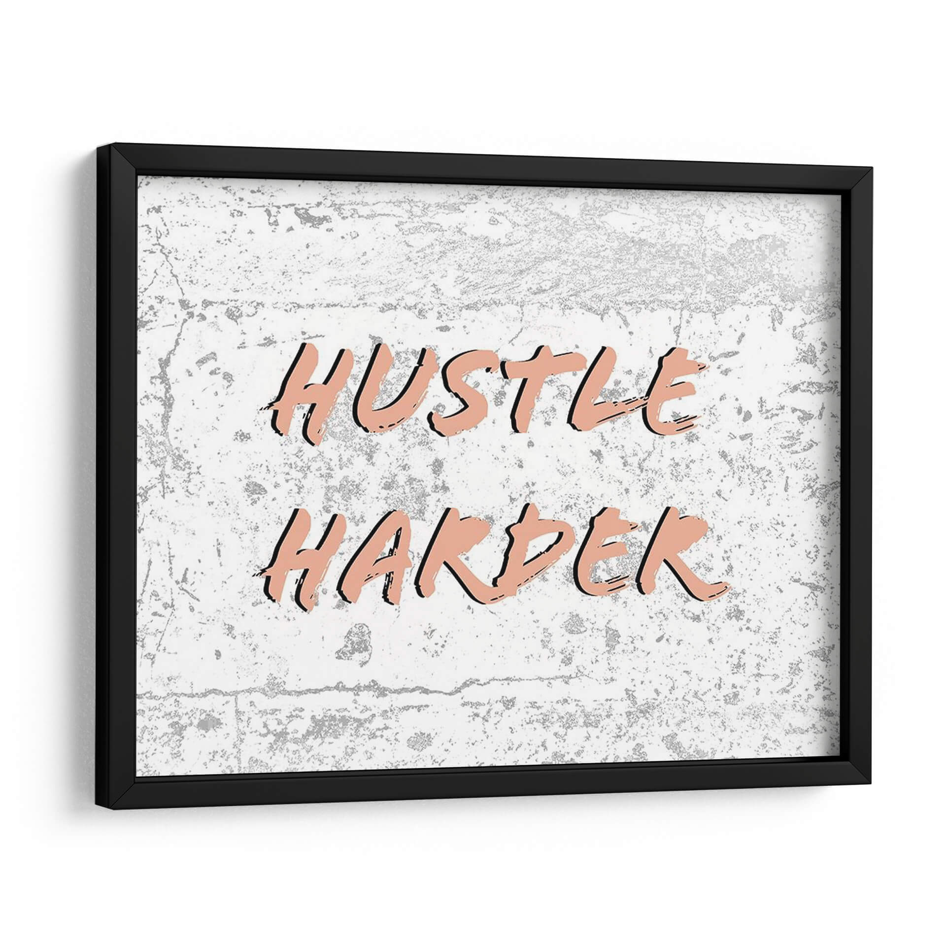 Inyecta motivación y estilo contemporáneo en tu espacio con "Hustlers III" de Jarman Fagalde. Este impactante cuadro decorativo presenta la inspiradora frase "HUSTLE HARDER" escrita en una tipografía audaz y moderna, con contornos negros y un suave relleno en tono salmón o coral pálido. El fondo simula una textura de pared de concreto o yeso desgastado, con sutiles variaciones de gris y blanco que aportan profundidad y un carácter urbano a la pieza. La composición es limpia y directa, centrada en el mensaje, lo que la convierte en una elección perfecta para oficinas, estudios o cualquier rincón del hogar donde se busque fomentar la perseverancia y el trabajo duro. Su estética minimalista y urbana la hace versátil, capaz de complementar una amplia gama de estilos decorativos, desde el industrial hasta el moderno y contemporáneo. Este cuadro no solo decora, sino que también inspira, funcionando como un recordatorio constante de tus metas y aspiraciones. Añade un toque de energía positiva y un diseño gráfico distintivo a tu pared con esta obra única.