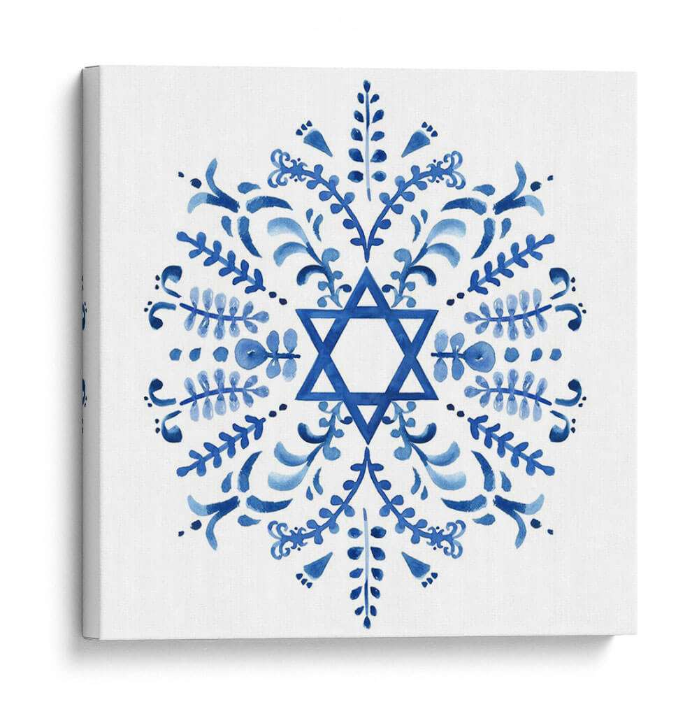 Sumérgete en la serenidad y la tradición con "Indigo Hanukkah IV", una obra de arte que captura la esencia de las celebraciones judías con un estilo contemporáneo y evocador. Victoria Borges nos presenta un diseño intrincado en tonos de azul índigo sobre un fondo blanco nítido, dominado por la icónica Estrella de David en su centro. Los delicados motivos florales y vegetales que emanan de la estrella crean un patrón mandálico que invita a la contemplación y la paz. La técnica de acuarela aporta una suavidad y fluidez a las formas, confiriendo a la pieza una ligereza visual que contrasta maravillosamente con la fuerza simbólica del diseño. Este cuadro decorativo es perfecto para añadir un toque de significado cultural y elegancia a cualquier espacio, ya sea en una sala de estar, un comedor o un estudio. Su diseño simétrico y sus colores vibrantes pero armoniosos lo convierten en un punto focal que inspira calma y conexión. "Indigo Hanukkah IV" no es solo una pieza decorativa, es una invitación a celebrar la luz, la familia y la herencia, añadiendo profundidad y carácter a tu hogar u oficina. Ideal para quienes buscan arte con alma y un toque distintivo.