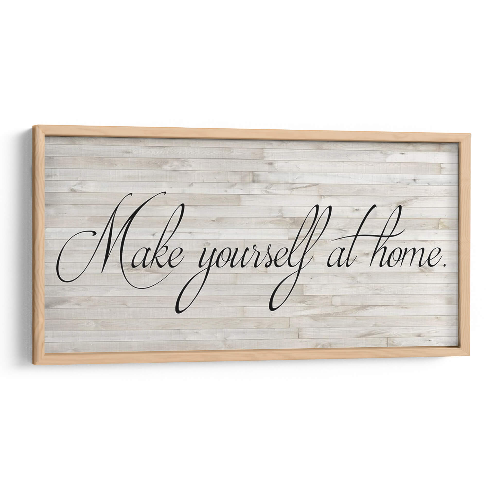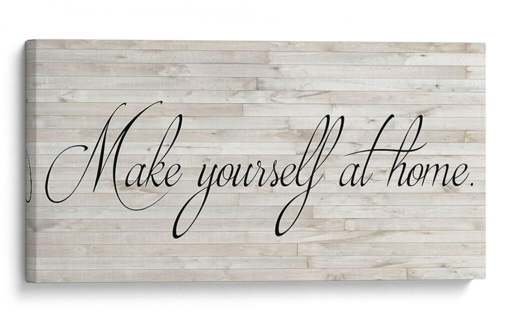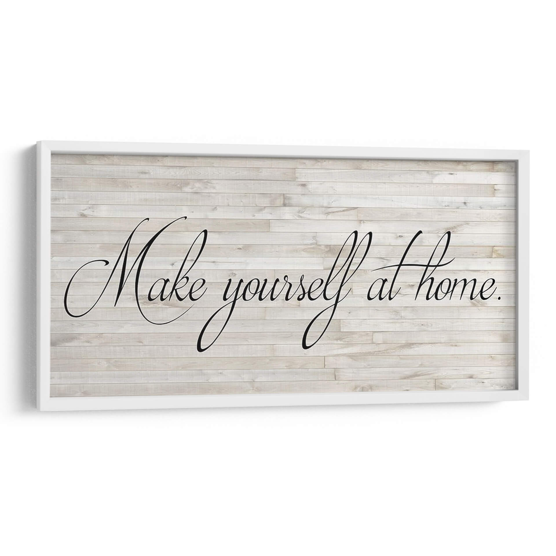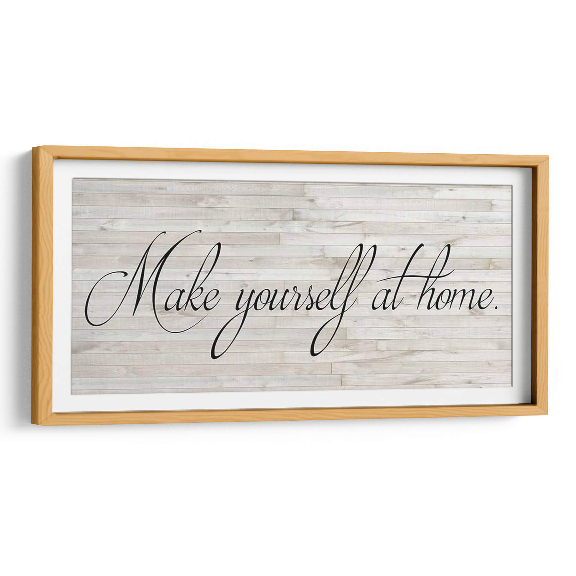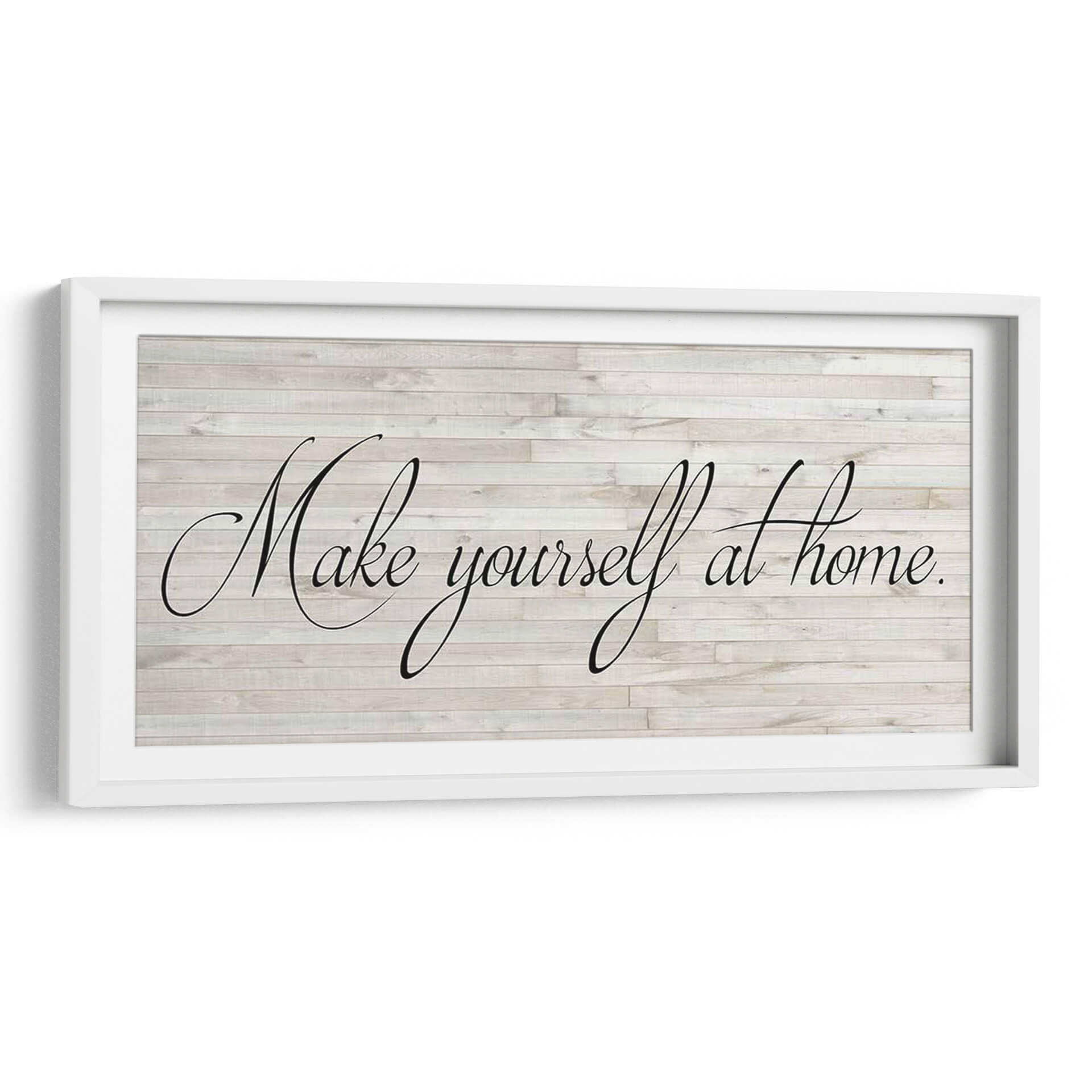 Transforma tu hogar en un refugio acogedor con este cautivador cuadro decorativo de Alicia Ludwig. La obra "Inspiración Familiar Iv" presenta la inspiradora frase "Make yourself at home" escrita en una elegante tipografía script sobre un fondo texturizado que simula tablones de madera en tonos claros y rústicos. Los colores neutros y la calidez del diseño transmiten una sensación de bienvenida y confort, perfecta para cualquier espacio que desees llenar de paz y familiaridad. Su estilo minimalista y contemporáneo lo convierte en una adición versátil para salones, comedores, recibidores o incluso dormitorios, aportando un toque personal y emotivo. Imagina cómo esta pieza puede ser el punto focal de tu pared, invitando a la relajación y creando una atmósfera de intimidad y pertenencia. Ideal para quienes buscan arte que hable al corazón y celebre los momentos compartidos en casa. Este cuadro decorativo es más que una simple pieza de arte; es una invitación a sentirse a gusto y a crear recuerdos imborrables.