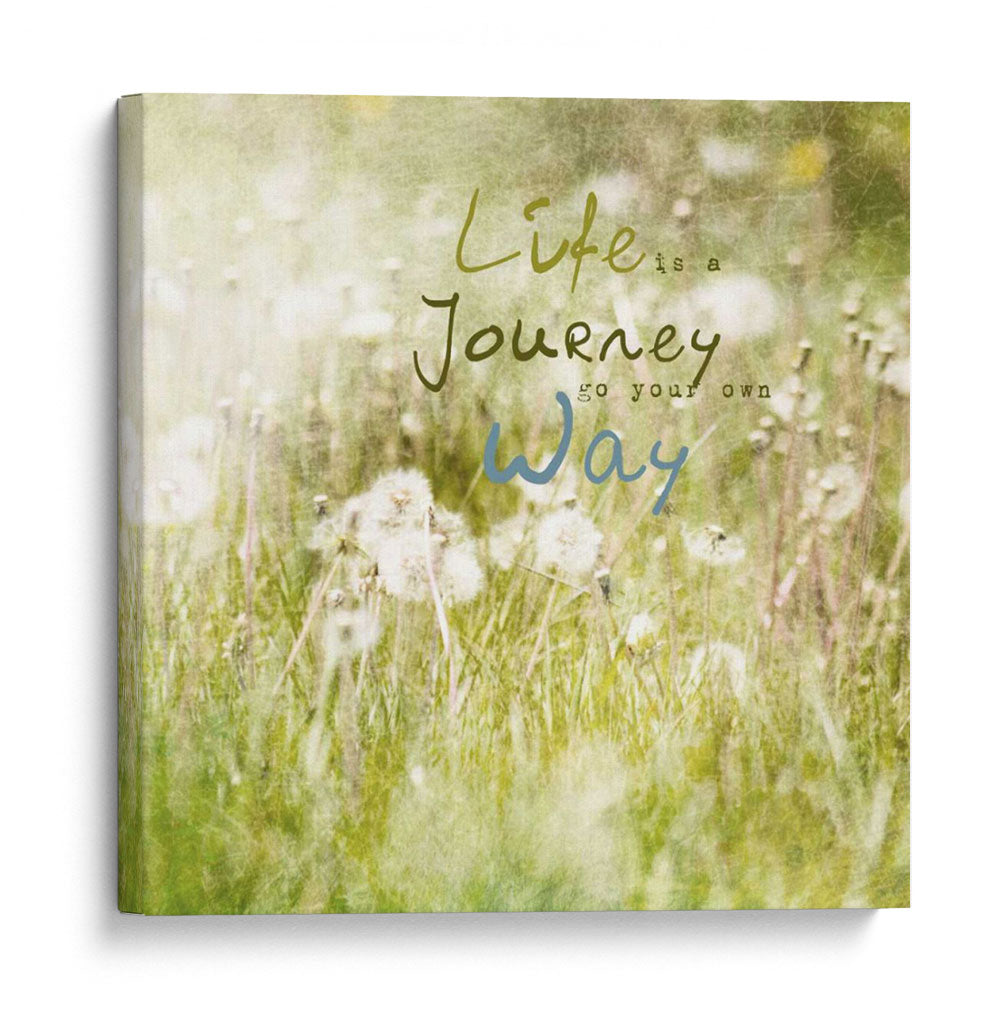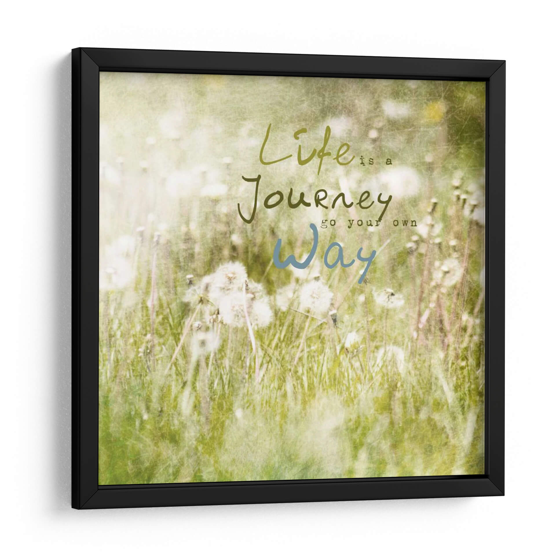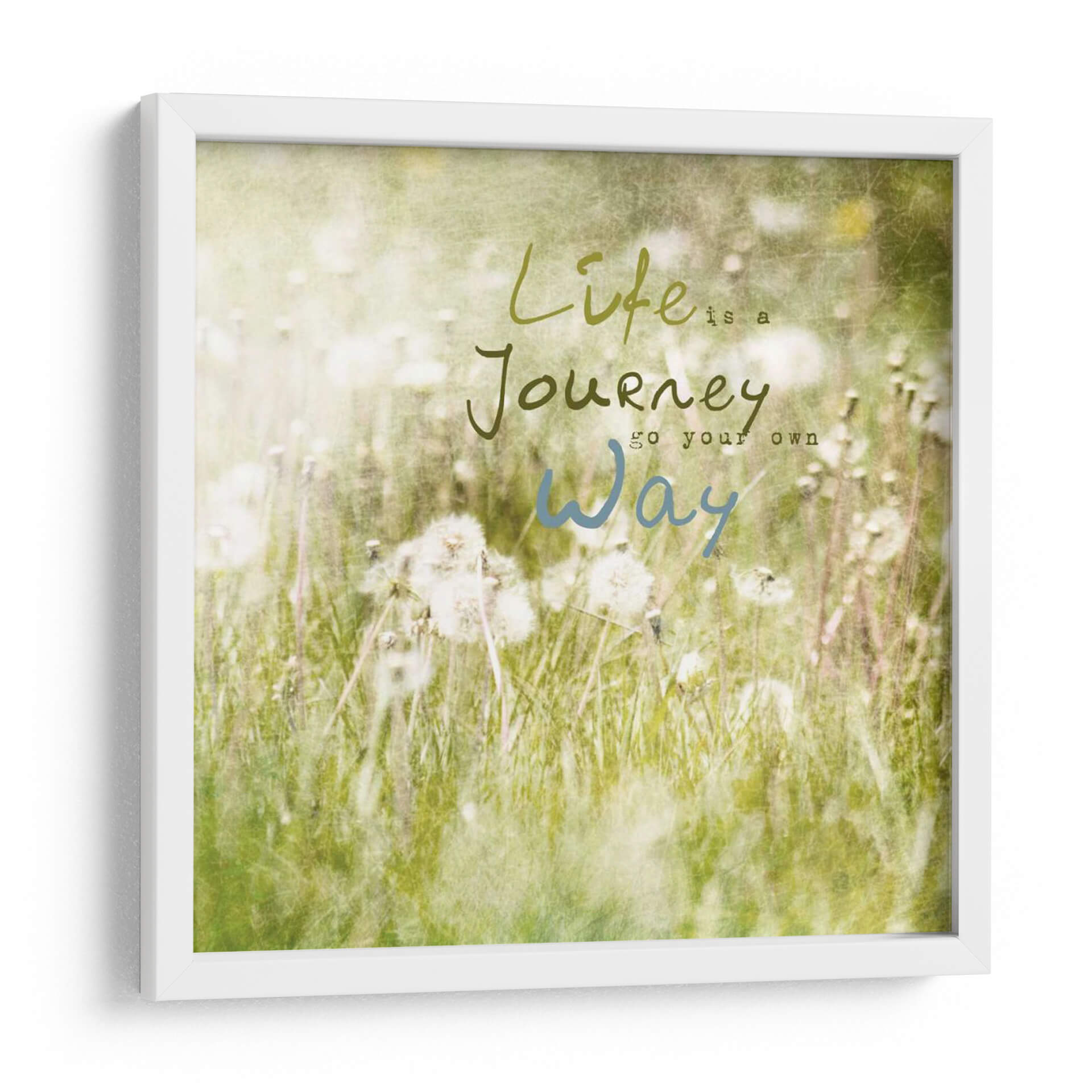 Embellece tu espacio con "Inspiración Floreciente IV", una obra de arte digital que captura la esencia de un prado sereno al amanecer. Los delicados detalles de diente de león suspendidos en el aire y la suave luz que baña el paisaje crean una atmósfera de paz y optimismo. La obra presenta una paleta de colores suaves, dominada por verdes frescos, blancos etéreos y sutiles toques de amarillo pálido, que transmiten una sensación de renovación y esperanza. Las tipografías, "Life is a Journey" en un verde terroso y "go your own way" en un azul sereno, invitan a la reflexión y a la celebración del camino personal. Este cuadro decorativo es perfecto para añadir un toque de calma y motivación a tu hogar u oficina, transformando cualquier habitación en un santuario de tranquilidad. Su estilo etéreo y su mensaje inspirador lo convierten en una pieza ideal para dormitorios, salas de estar o cualquier rincón donde busques serenidad y un recordatorio diario de la belleza del viaje de la vida. Integra esta pieza única para crear un ambiente acogedor y lleno de significado.