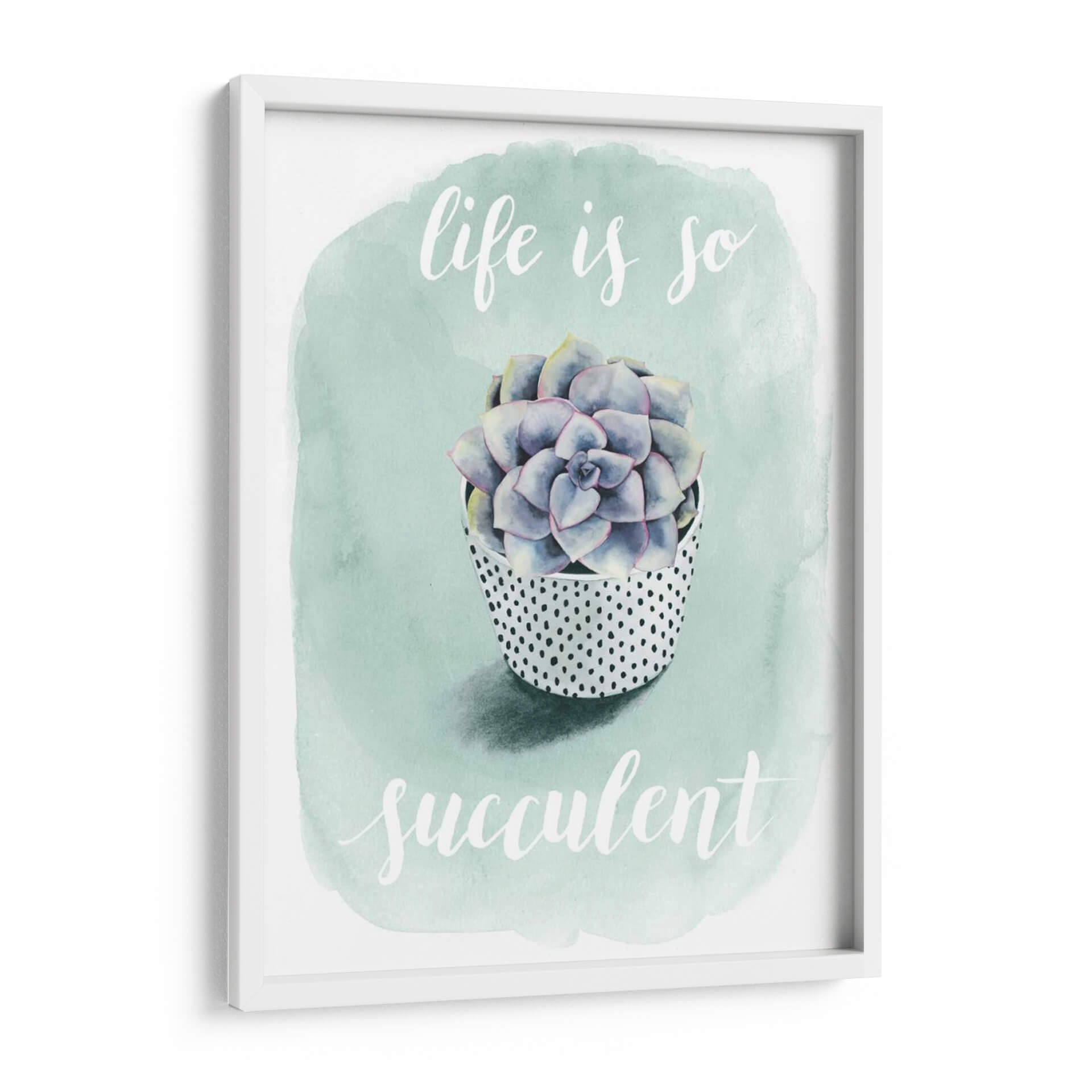 Sumérgete en la serenidad botánica con 'La Vida Es Suculenta Yo', una obra de arte que captura la belleza intrínseca de una suculenta en maceta. La artista Grace Popp nos presenta una composición delicada, donde la textura y los tonos pastel de la planta se fusionan con un suave fondo acuarelado en tonos menta y verde agua. La estética minimalista se ve realzada por la tipografía caligráfica blanca que, junto con la imagen principal, transmite un mensaje de calma y apreciación por las pequeñas maravillas de la naturaleza. Este cuadro decorativo es ideal para añadir un toque de frescura y estilo contemporáneo a cualquier espacio, ya sea tu sala de estar, dormitorio, oficina o incluso un baño. Su paleta de colores suaves y la composición centrada invitan a la contemplación y crean una atmósfera de paz y bienestar. Si buscas una pieza que combine arte, naturaleza y un mensaje inspirador, 'La Vida Es Suculenta Yo' es la elección perfecta para embellecer tu hogar con una dosis de encanto natural y serenidad.