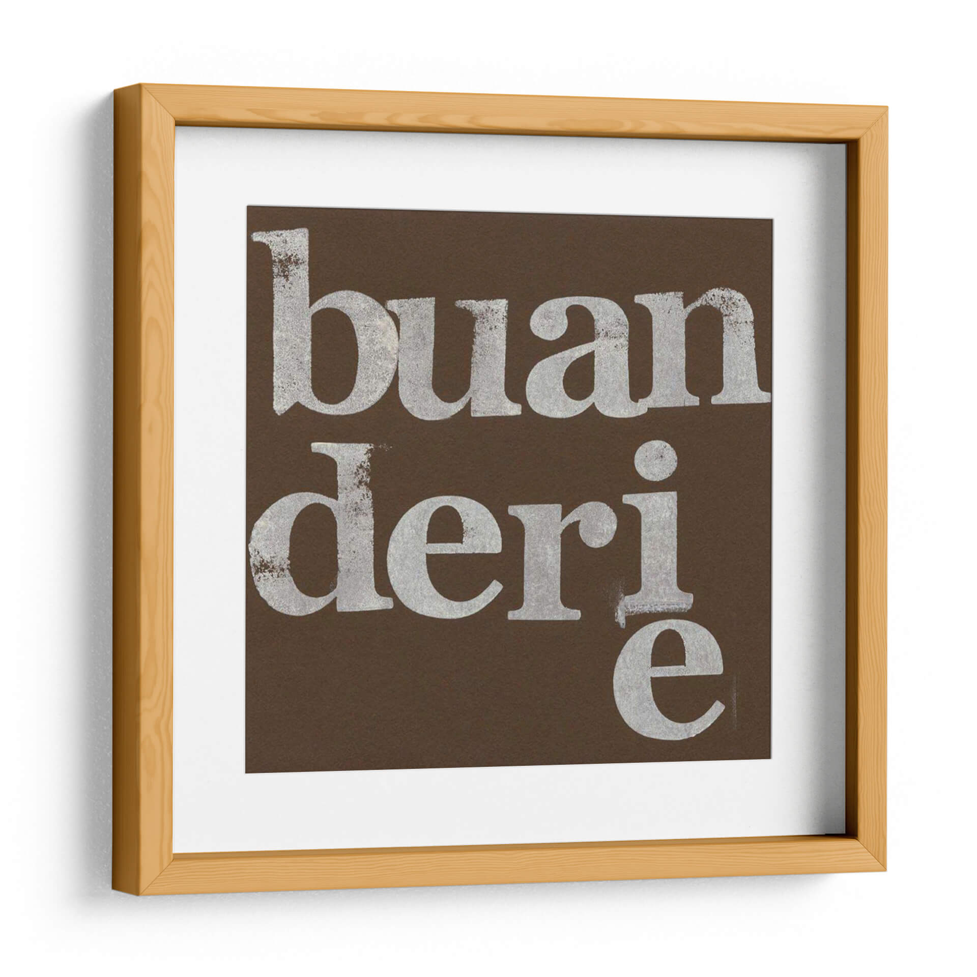 Transforma tu espacio con la obra "Lavandería Francesa II" de Deborah Velasquez, una pieza que combina elegancia rústica y un toque contemporáneo. Este cuadro decorativo presenta una tipografía distintiva en tonos blanco desgastado sobre un fondo marrón cálido y profundo, evocando una sensación de autenticidad y estilo vintage. La composición tipográfica, con letras que sugieren un aire de lavandería francesa clásica, aporta un carácter único a cualquier habitación. Ideal para crear un punto focal en tu sala de estar, añadir un toque de encanto a tu cocina o infundir personalidad a tu comedor. La paleta de colores neutros y terrosos permite que esta obra se integre armoniosamente en diversas decoraciones, desde lo rústico y bohemio hasta lo moderno y minimalista. La textura sutil y el acabado desgastado de las letras añaden profundidad y un atractivo visual intrigante, invitando a la contemplación. "Lavandería Francesa II" no es solo una decoración, sino una declaración de estilo que aporta calidez y sofisticación a tu hogar. Es la elección perfecta para quienes buscan arte de pared que combine diseño atemporal con una narrativa sutil, creando un ambiente acogedor y lleno de carácter.