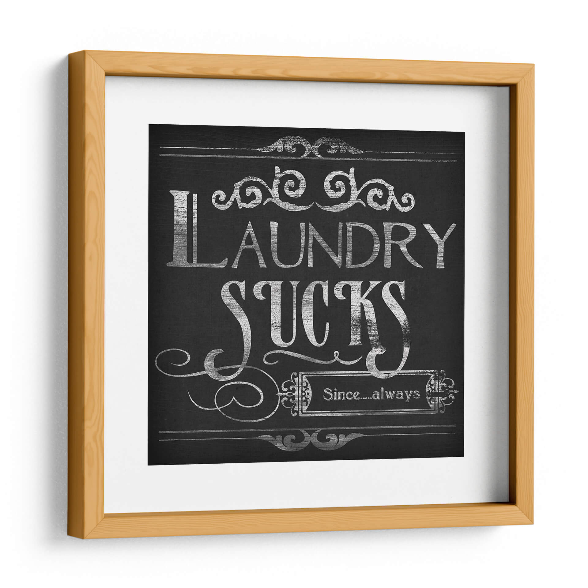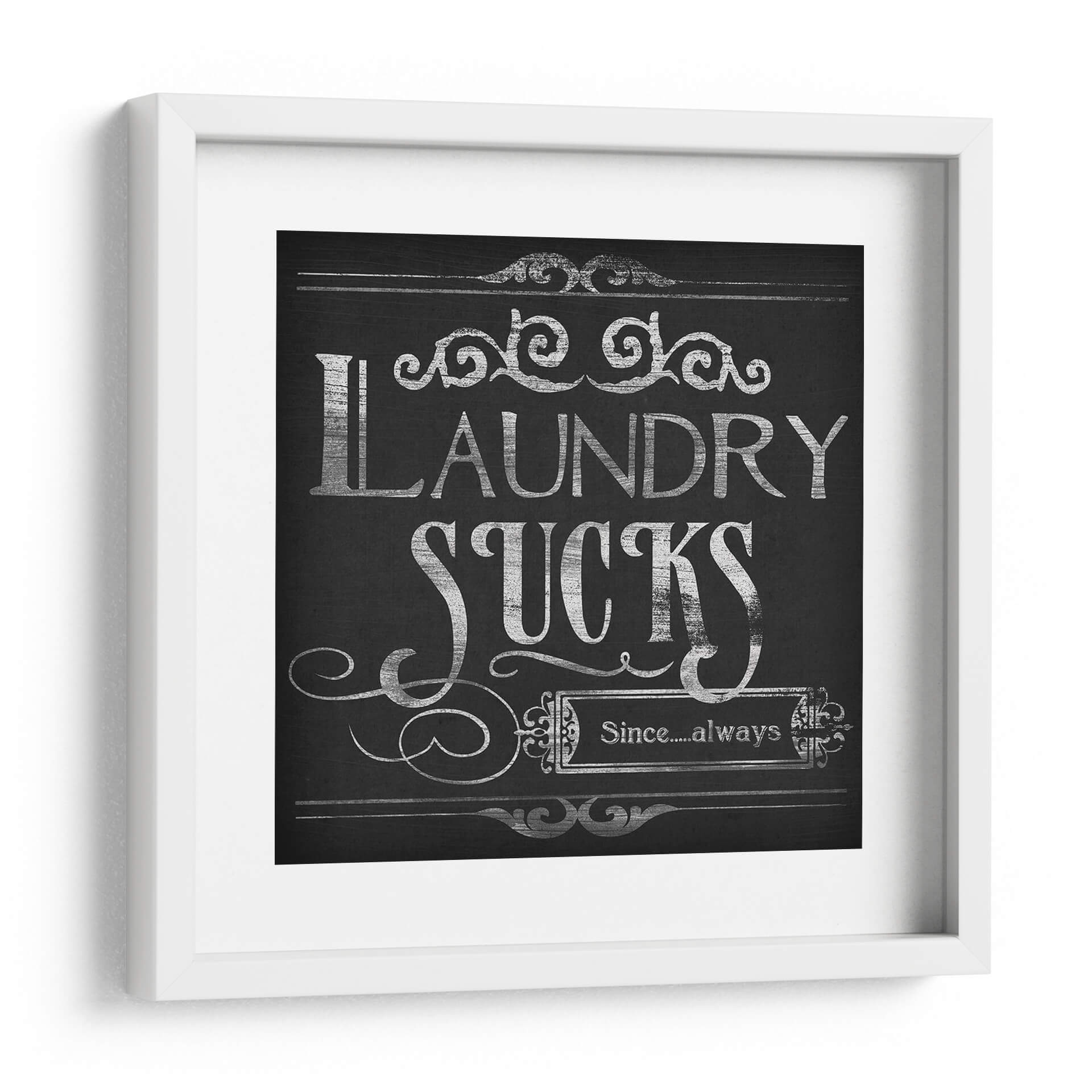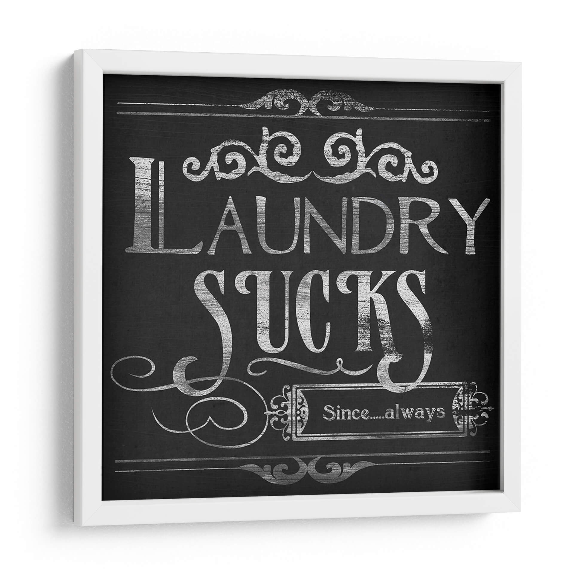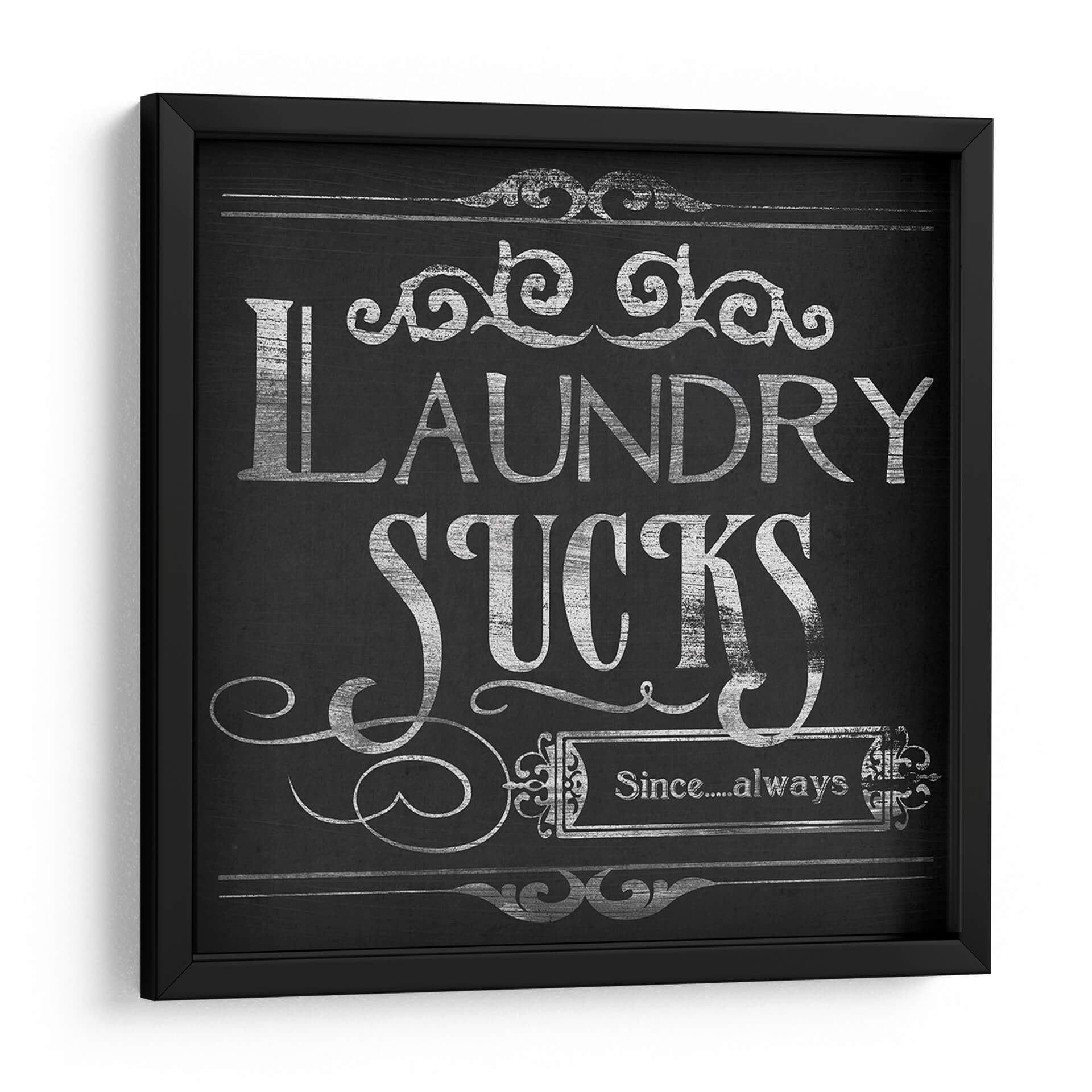 Transforma tu espacio con "Lavandería Snark II", una obra de arte que combina humor y estilo en un diseño cautivador. Este cuadro decorativo, con su estética de pizarra y tipografía plateada desgastada, evoca una sensación nostálgica y moderna a la vez. La frase central "Laundry Sucks Since....always" se presenta con una audacia desenfadada, adornada con delicados remates ornamentales que añaden un toque de elegancia. La paleta de colores predominantemente oscura, con contrastes plateados, crea un punto focal intrigante que se adapta a diversos estilos de decoración, desde el rústico chic hasta el contemporáneo industrial. Ideal para añadir personalidad a tu lavandería, baño o incluso una cocina moderna, esta pieza es un excelente iniciador de conversación. Su diseño versátil permite integrarla fácilmente en cualquier esquema de color, aportando un toque de ingenio y sofisticación. Si buscas una manera de inyectar humor y carácter en la decoración de tu hogar, "Lavandería Snark II" es la elección perfecta para quienes aprecian el arte con un giro irónico y un diseño impecable. Una pieza que, sin duda, hará sonreír a tus invitados y a ti mismo cada vez que pases por ella. Añade esta obra maestra a tu colección y redefine el concepto de decoración funcional y con estilo.