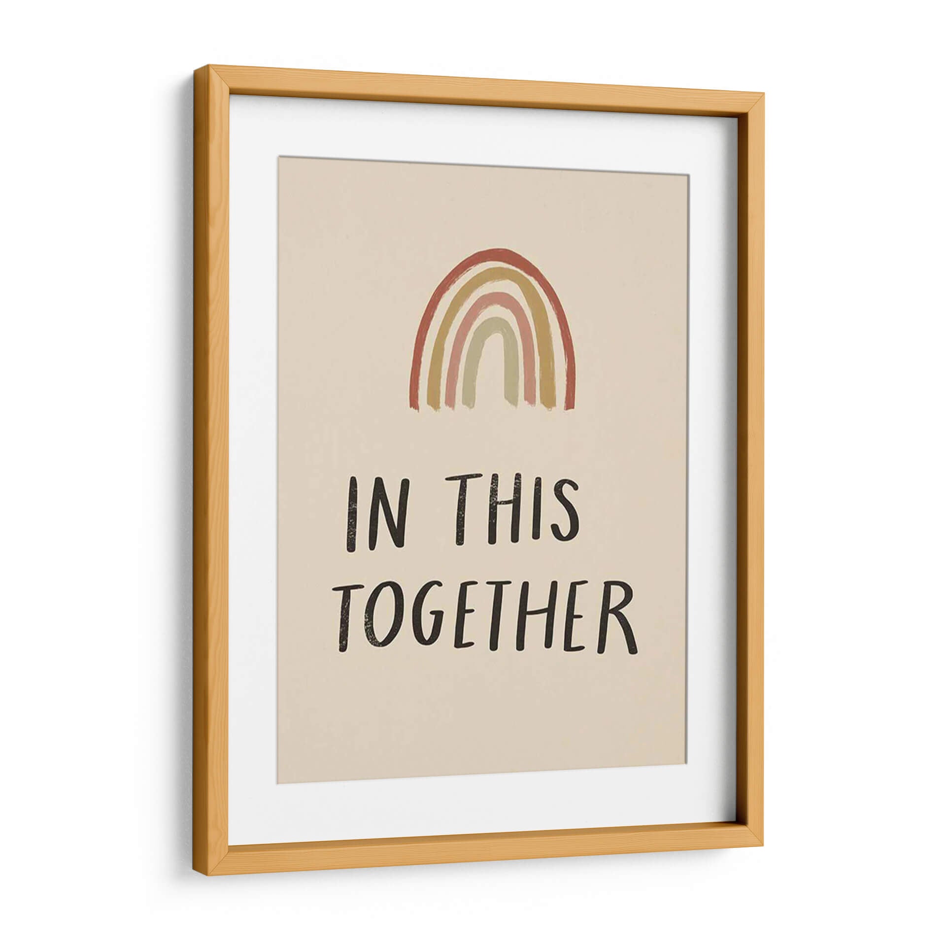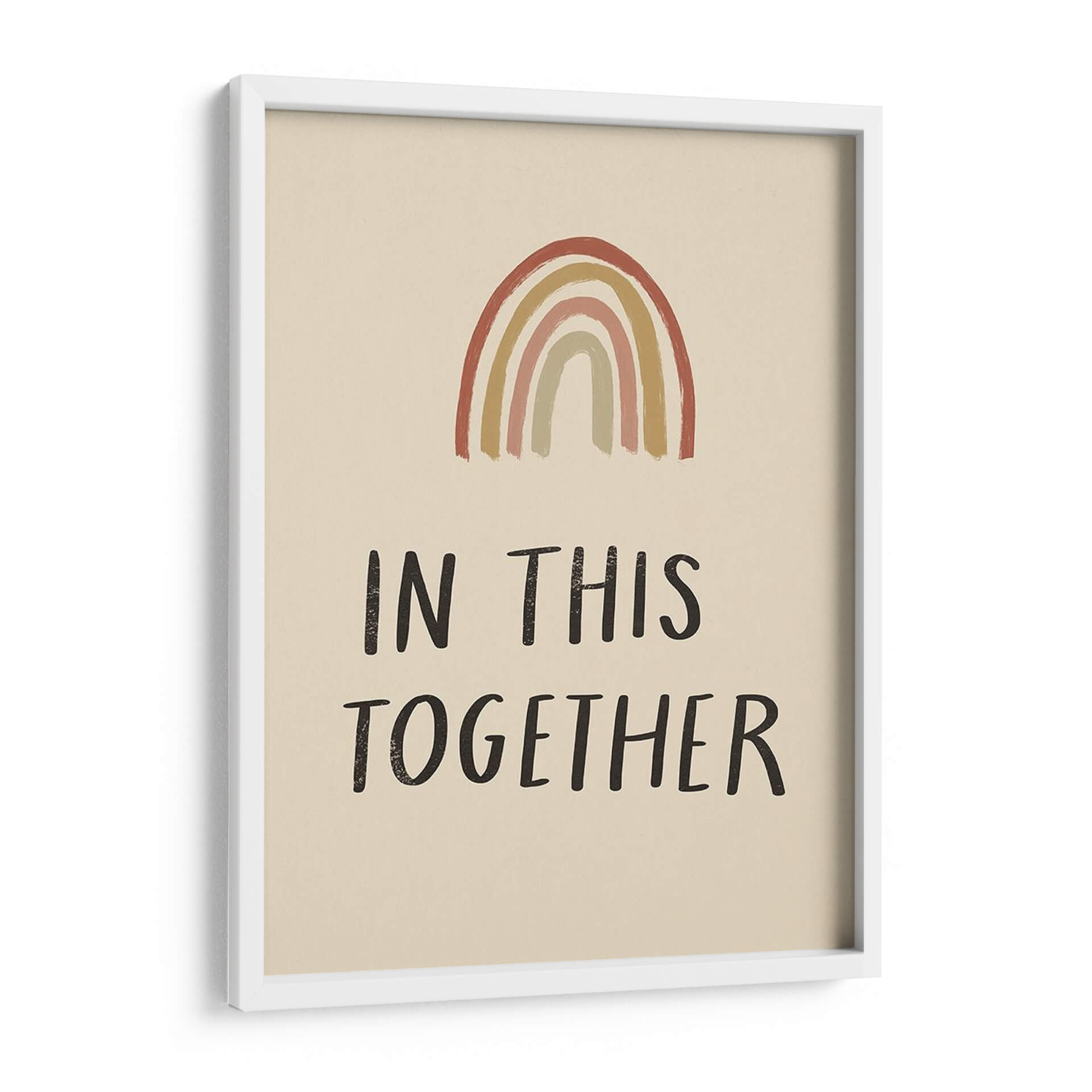 Inyecta un mensaje de unidad y esperanza en tu hogar con este cautivador cuadro decorativo 'Levanto Yo' de Susan Savory. La obra presenta un arcoíris de tonos cálidos y terrosos, que evocan una sensación de calma y optimismo, sobre un fondo neutro y suave. Las bandas de color, pintadas con una textura sutil, crean un efecto visual atractivo y moderno, mientras que la tipografía sencilla y audaz del lema "IN THIS TOGETHER" refuerza el poderoso mensaje de solidaridad. Este cuadro es una pieza inspiradora que transmite resiliencia y apoyo mutuo, ideal para cualquier espacio que necesite un toque de positividad. Su estilo contemporáneo y minimalista lo convierte en un complemento perfecto para salas de estar, oficinas, dormitorios o incluso espacios infantiles, aportando un ambiente acogedor y significativo. Descubre cómo este diseño puede convertirse en un punto focal de conversación y un recordatorio diario de la fuerza que reside en la unión. Transforma tu decoración con arte que habla al corazón.