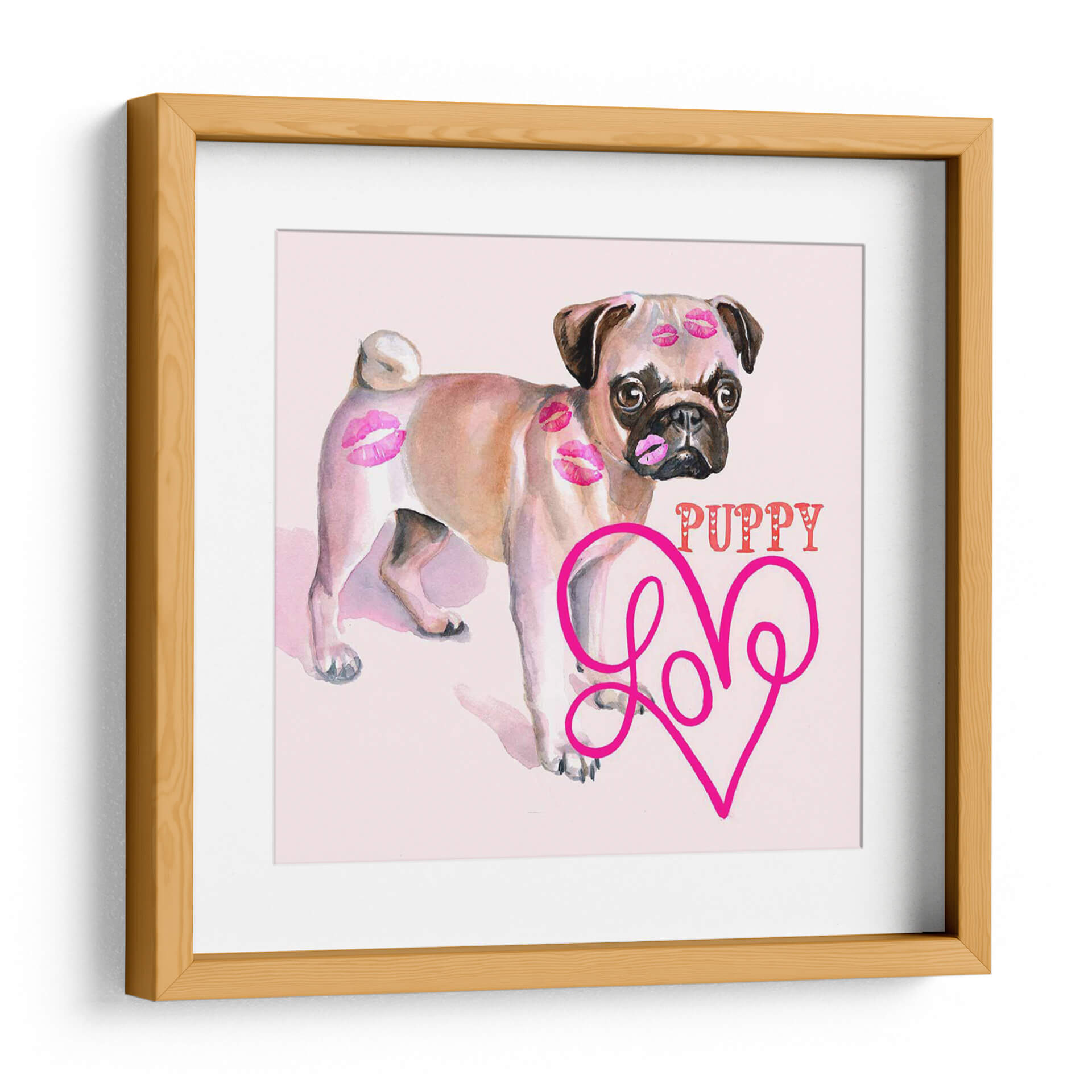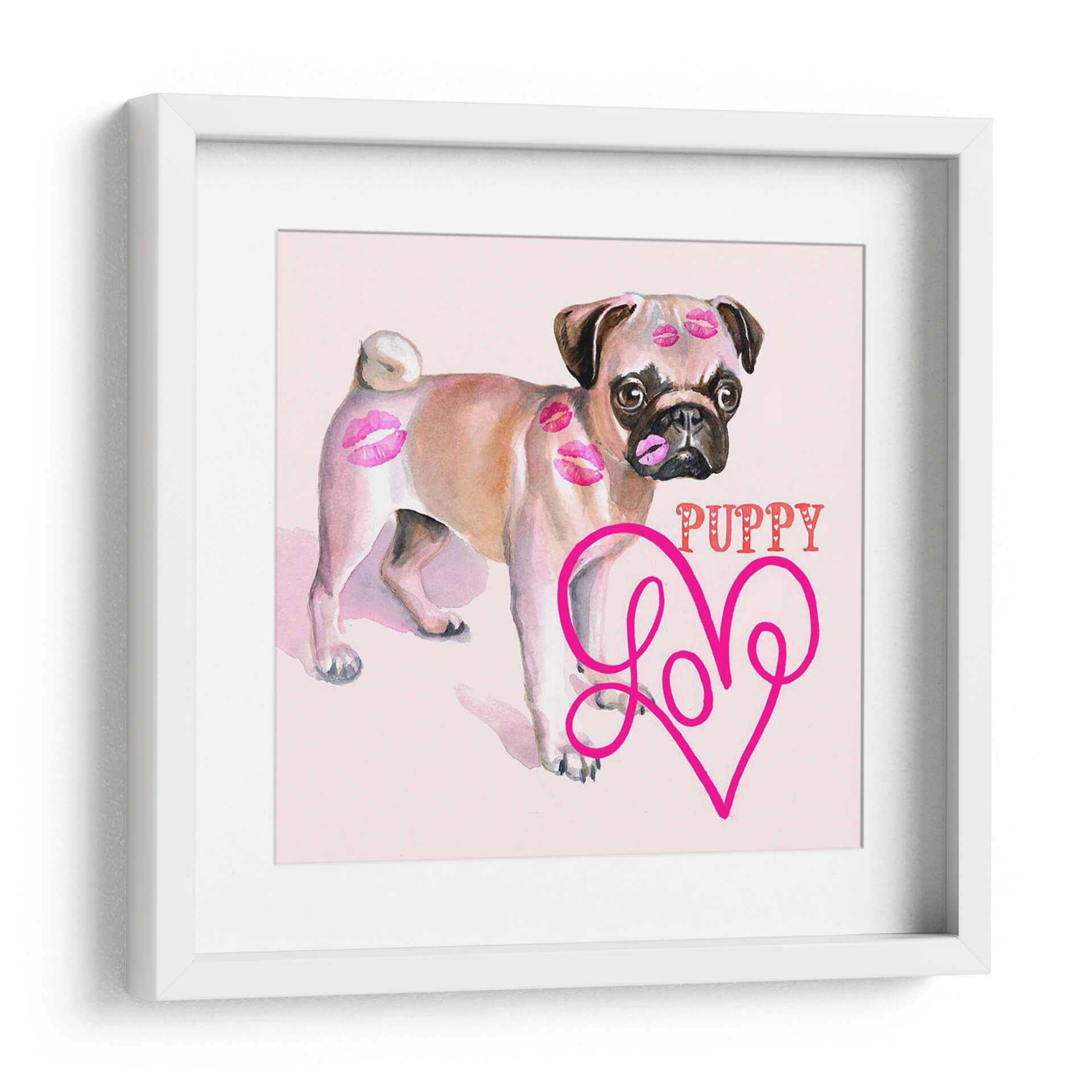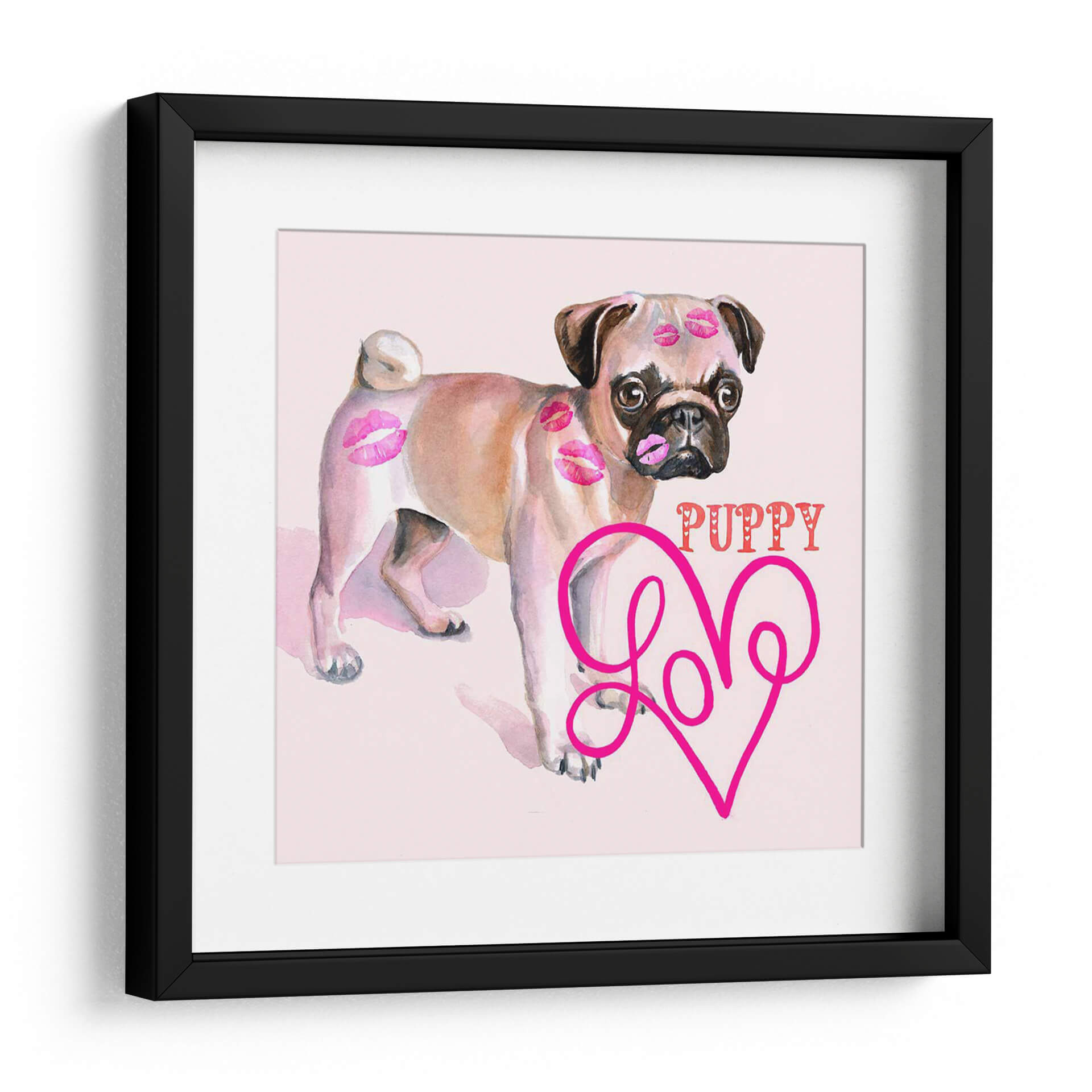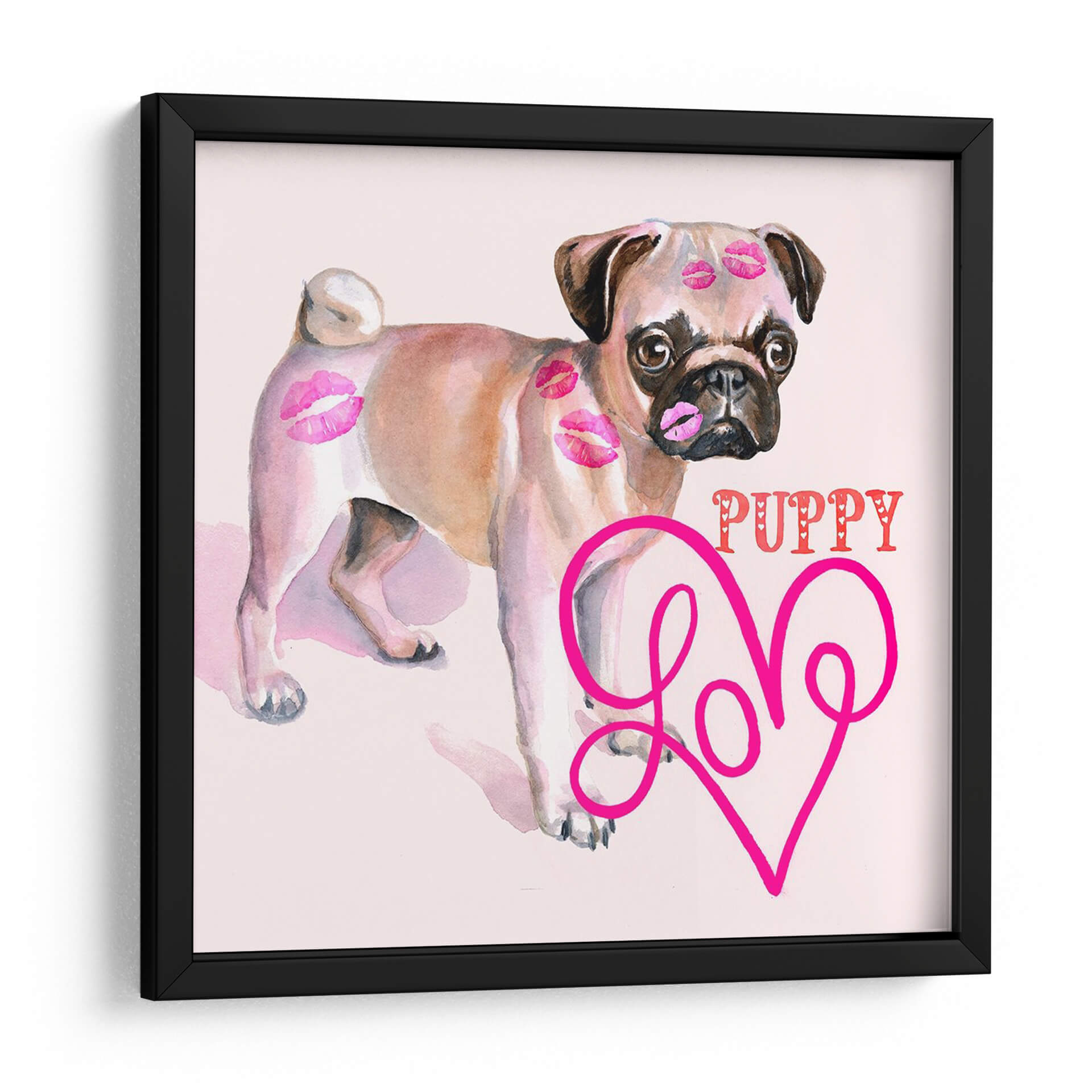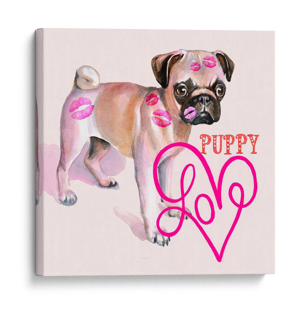 Aporta un toque de alegría y ternura a tu hogar con este encantador cuadro decorativo de un cachorro pug. La obra, titulada "Linda Couture Iii" por B. Hoola Van Nooten, captura la esencia juguetona y adorable de un pug, adornado con delicados besos en acuarela que evocan amor y afecto. La paleta de colores suaves, dominada por tonos rosados y beige, crea una atmósfera dulce y acogedora, perfecta para espacios donde se busca una sensación de calidez y felicidad. El estilo artístico, que combina la suavidad de la acuarela con elementos gráficos como la palabra "PUPPY" y un corazón estilizado con la palabra "Love", resulta moderno y divertido. Este cuadro es ideal para añadir un punto focal lleno de personalidad a la sala de estar, un dormitorio o incluso una habitación infantil. Su composición centrada en el tierno animal lo convierte en una pieza versátil que complementa decoraciones contemporáneas, bohemias o incluso clásicas, añadiendo un toque de dulzura inconfundible. Transforma cualquier pared en una declaración de amor por las mascotas y el diseño.