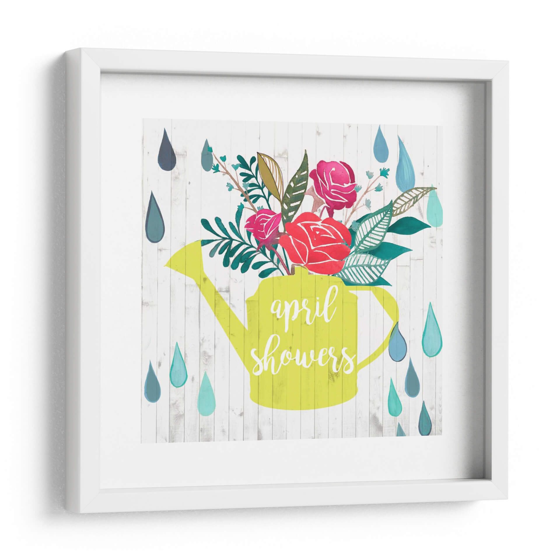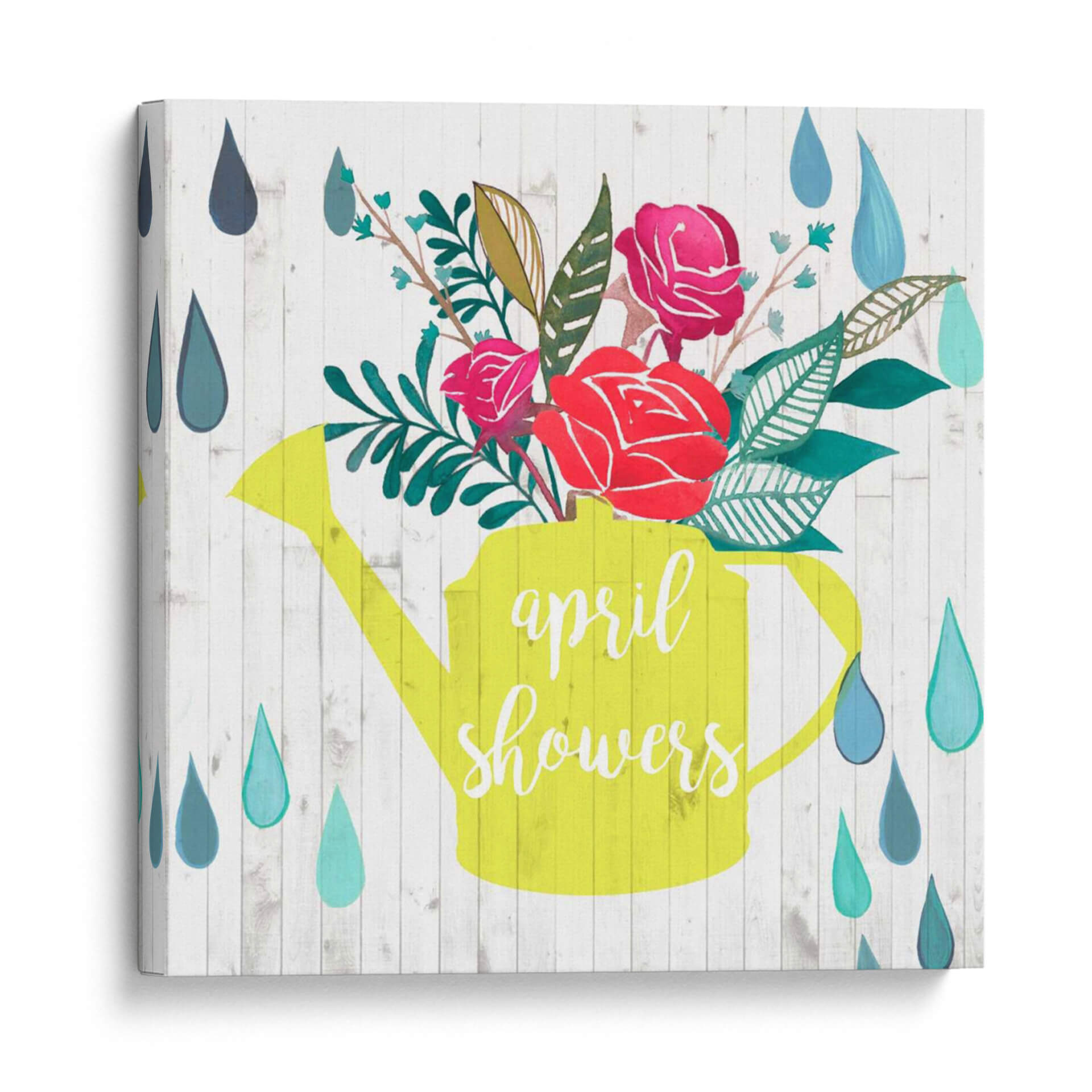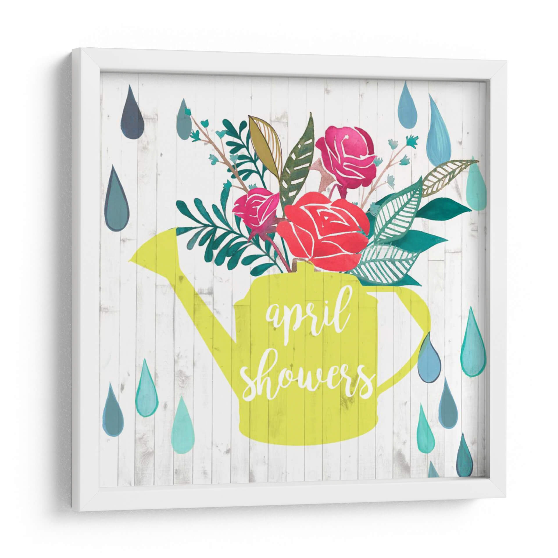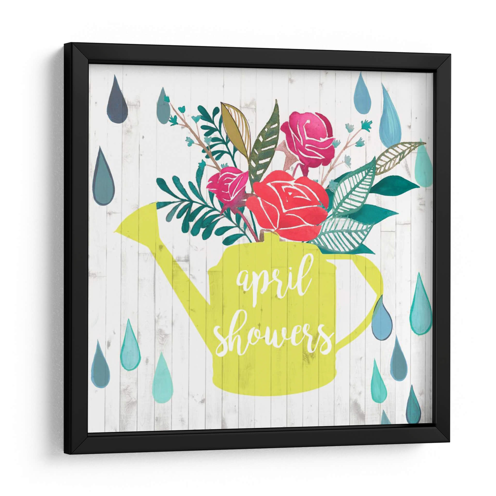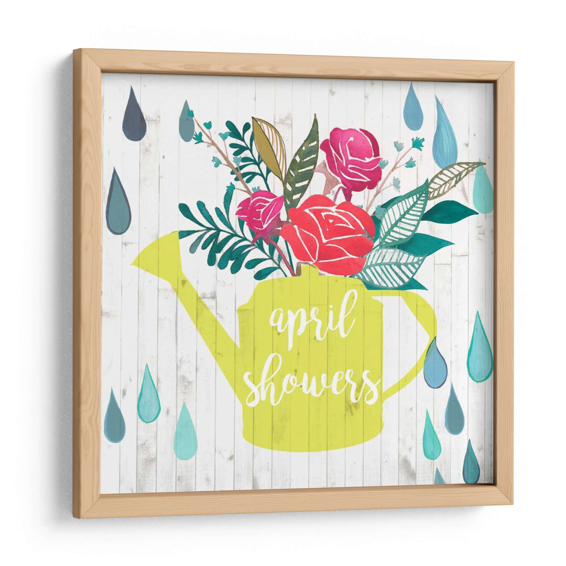 Celebra la frescura y el renacimiento con "Lluvias de Abril y Flores de Mayo I", un cuadro decorativo que inunda tu espacio con la vitalidad de la primavera. Esta obra de arte presenta una regadera amarilla brillante, desbordante de vibrantes flores rojas y rosadas, rodeada de delicadas hojas verdes y ramas. El fondo de tablones de madera blanca y las gotas de lluvia en tonos azules y turquesas evocan la sensación de una mañana fresca después de una tormenta primaveral. El estilo, con pinceladas audaces y una paleta de colores alegre, aporta un toque de arte contemporáneo y naíf, creando una atmósfera de optimismo y renovación. La composición equilibrada, con el texto "april showers" sutilmente integrado, añade un elemento textual encantador que complementa la temática floral. Ideal para añadir un toque de color y alegría a tu sala de estar, cocina o incluso un espacio de oficina, este cuadro decorativo es una invitación a disfrutar de la belleza efímera de la naturaleza y la promesa de nuevos comienzos. Transforma tu hogar en un oasis de primavera.