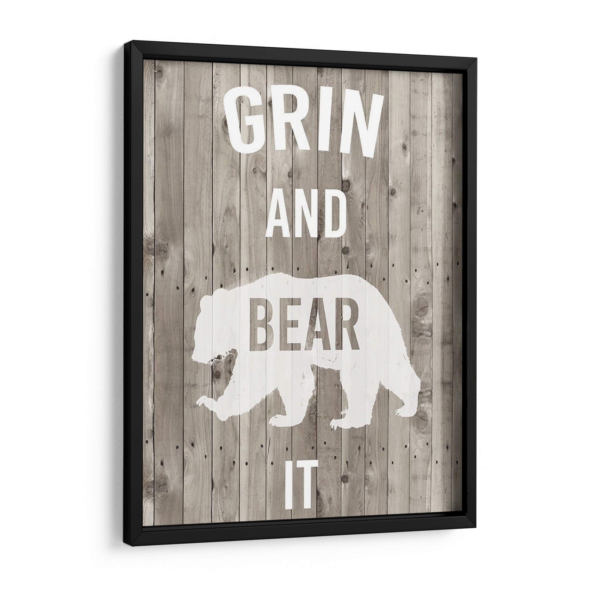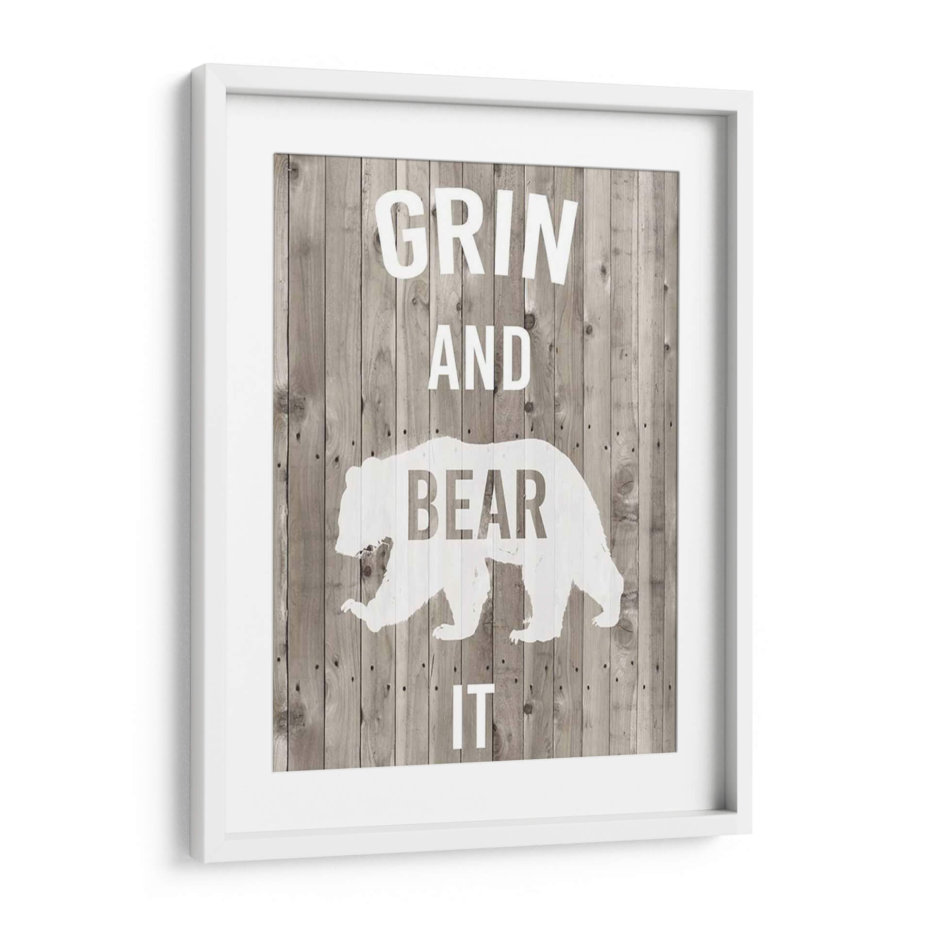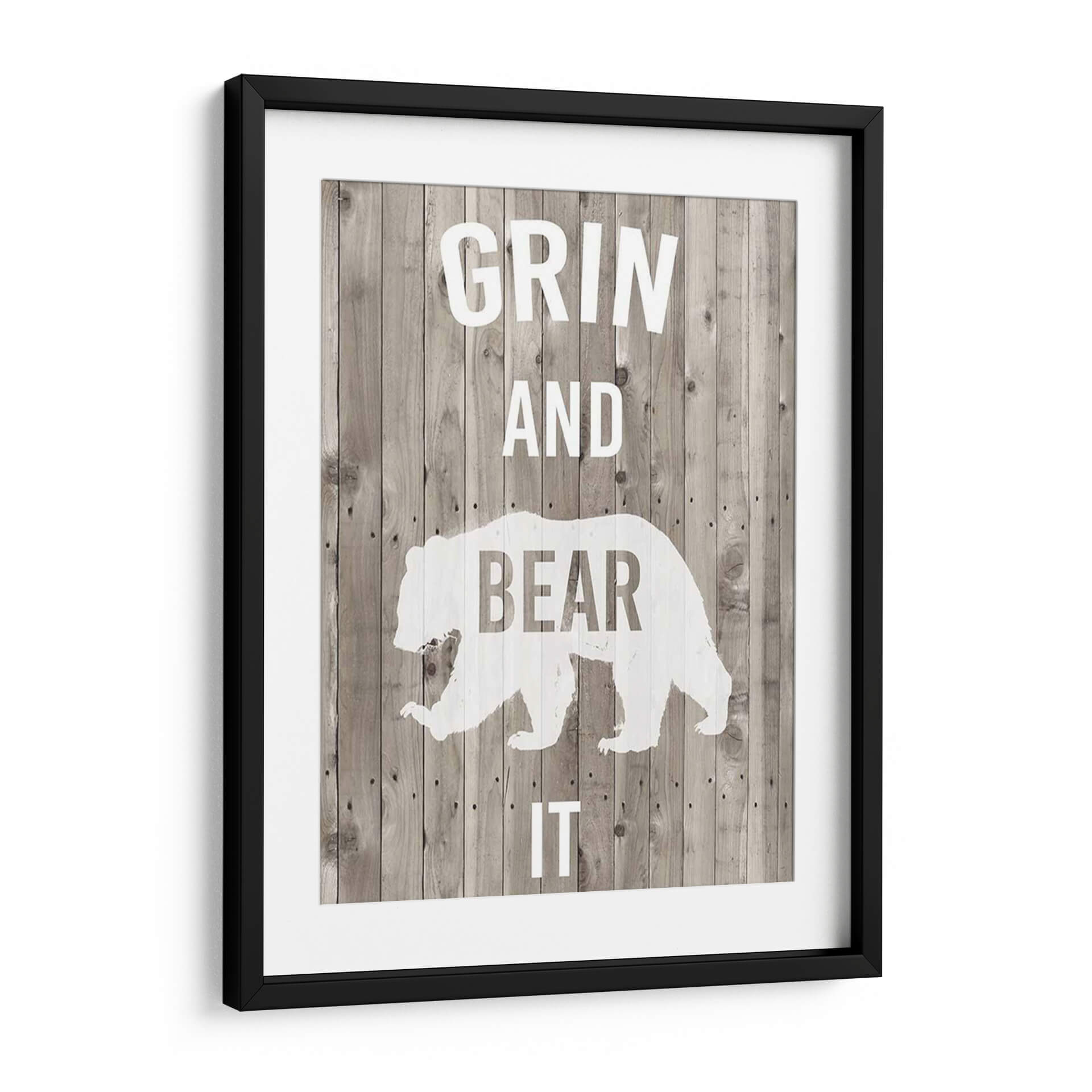 Transforma tu espacio con el cuadro decorativo "Lodge Pun Iii" de Studio W, una pieza que combina humor y estilo rústico. Este diseño presenta una silueta estilizada de un oso en blanco sobre un fondo que imita tablones de madera desgastada en tonos grises y marrones, creando una atmósfera acogedora y llena de carácter. Las letras blancas, que forman la frase "GRIN AND BEAR IT", añaden un toque de ingenio y optimismo, haciendo de esta obra un punto focal divertido y memorable. Es ideal para quienes buscan añadir personalidad a sus hogares u oficinas, especialmente en ambientes con decoración rústica, campestre o industrial. Este cuadro decorativo es perfecto para dar vida a salones, estudios o incluso dormitorios, aportando una dosis de alegría y un estilo único. Su composición sencilla pero impactante asegura que sea un tema de conversación y una fuente de inspiración diaria, recordándonos afrontar los desafíos con una sonrisa. Añade un toque de originalidad y buen humor a tu decoración con esta pieza versátil y llena de encanto.
