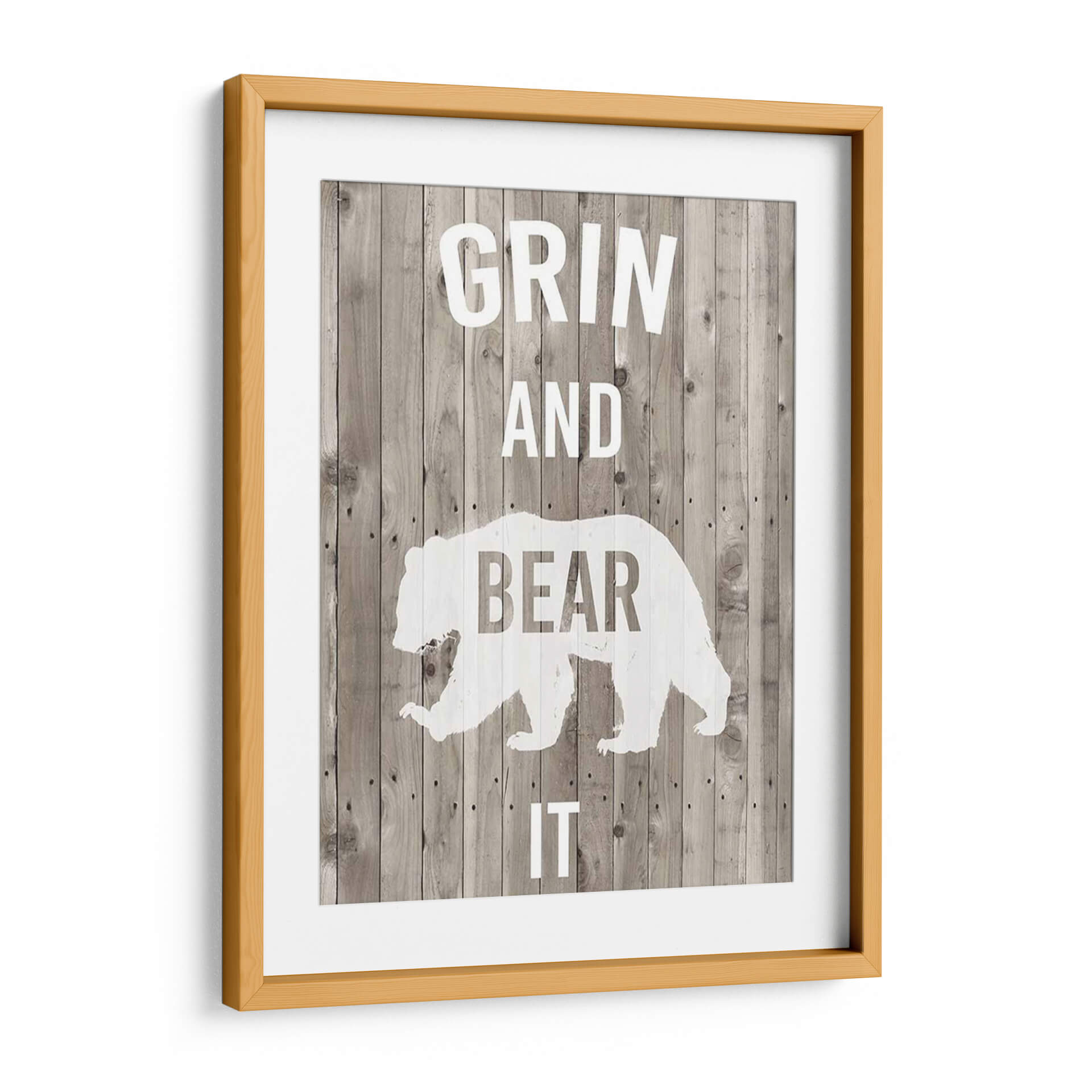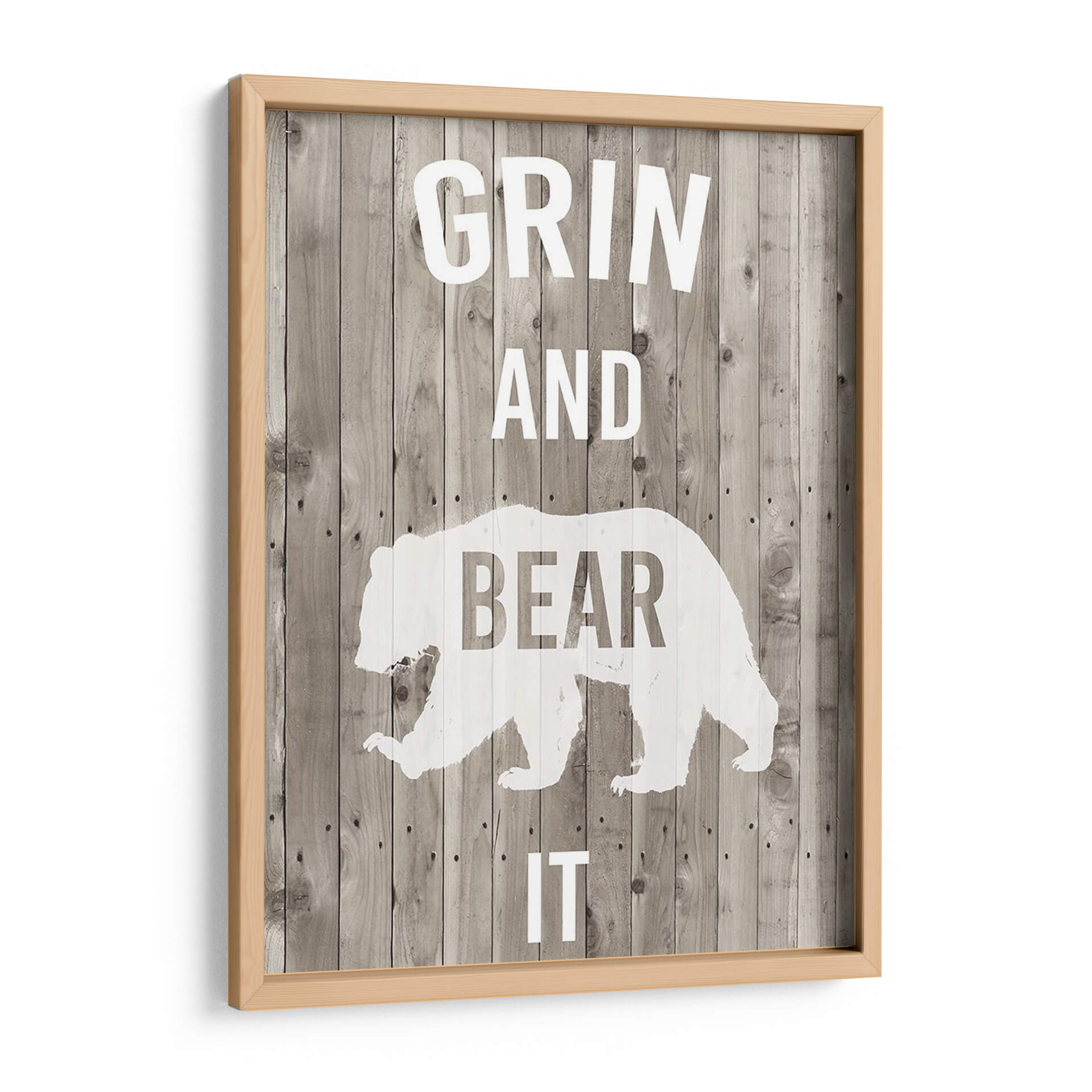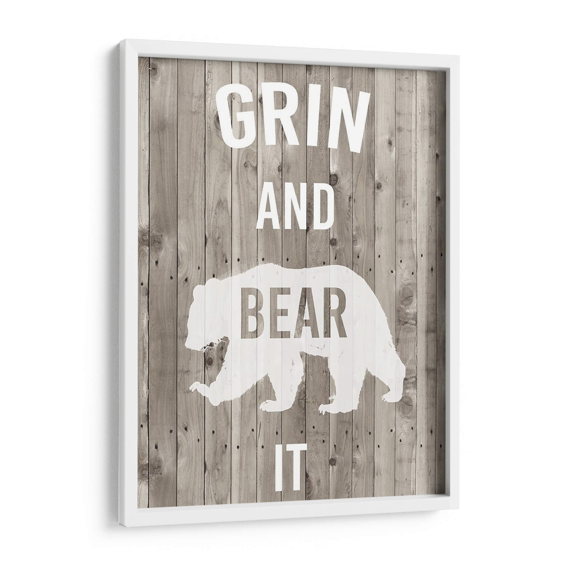Transforma tu espacio con el cuadro decorativo "Lodge Pun Iii" de Studio W, una pieza que combina humor y estilo rústico. Este diseño presenta una silueta estilizada de un oso en blanco sobre un fondo que imita tablones de madera desgastada en tonos grises y marrones, creando una atmósfera acogedora y llena de carácter. Las letras blancas, que forman la frase "GRIN AND BEAR IT", añaden un toque de ingenio y optimismo, haciendo de esta obra un punto focal divertido y memorable. Es ideal para quienes buscan añadir personalidad a sus hogares u oficinas, especialmente en ambientes con decoración rústica, campestre o industrial. Este cuadro decorativo es perfecto para dar vida a salones, estudios o incluso dormitorios, aportando una dosis de alegría y un estilo único. Su composición sencilla pero impactante asegura que sea un tema de conversación y una fuente de inspiración diaria, recordándonos afrontar los desafíos con una sonrisa. Añade un toque de originalidad y buen humor a tu decoración con esta pieza versátil y llena de encanto.