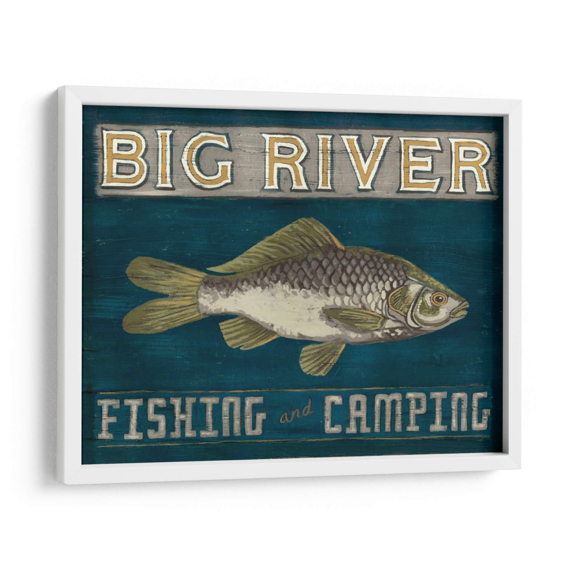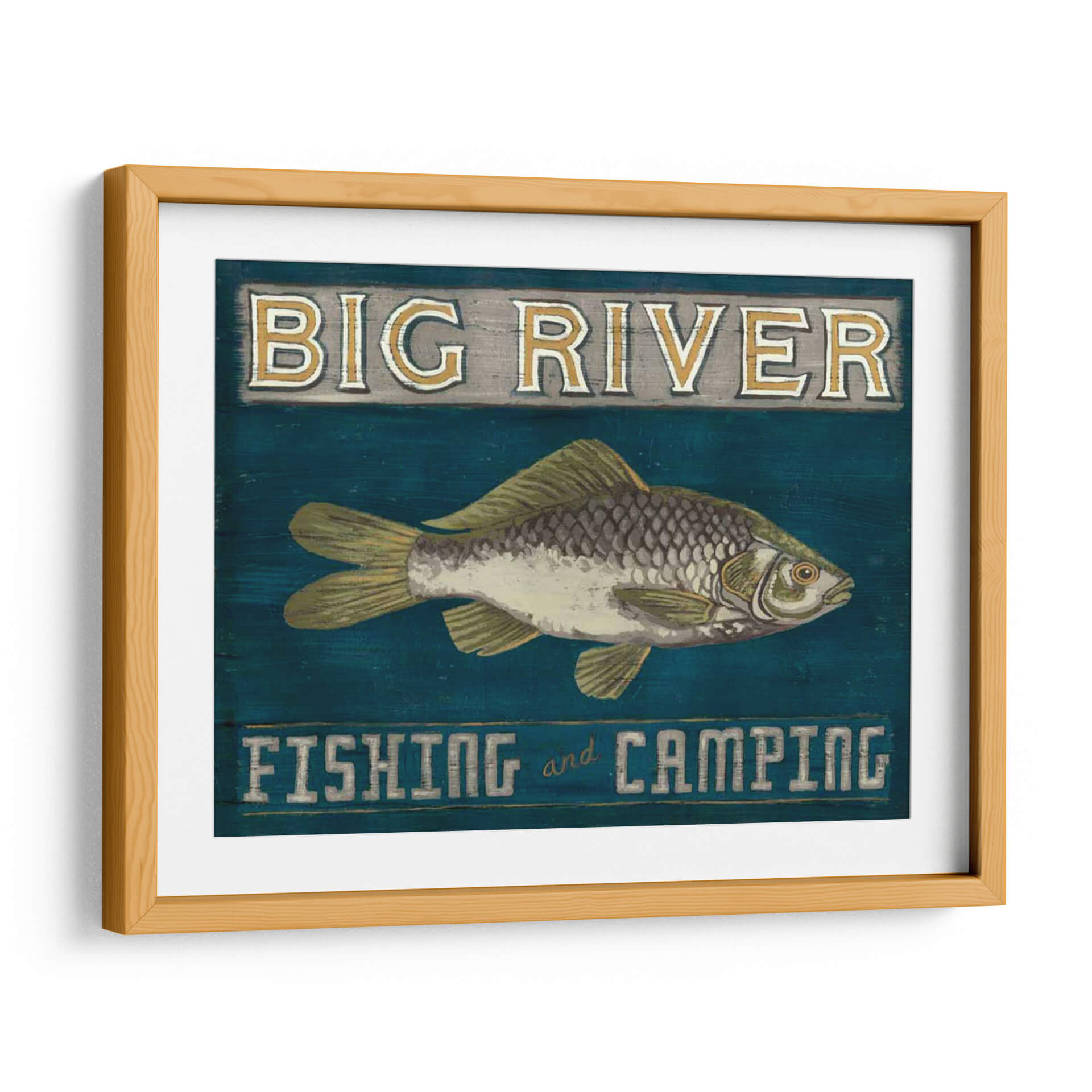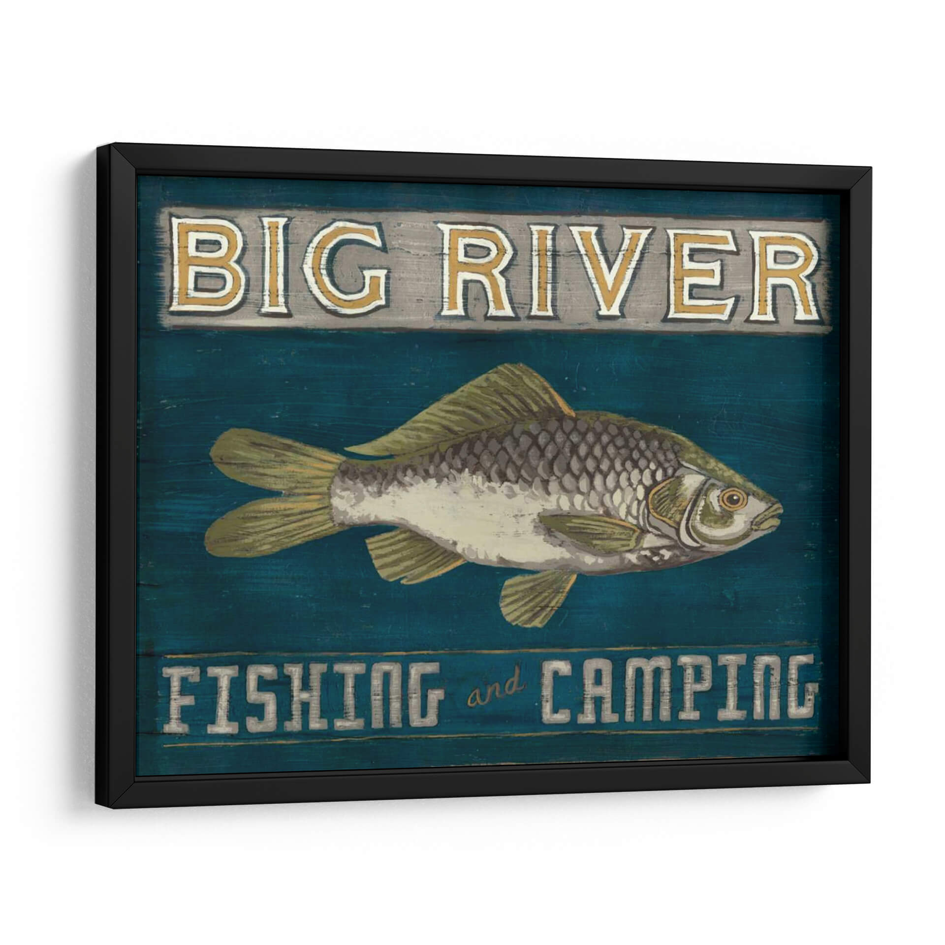 Sumérgete en la esencia de la aventura al aire libre con "Lodge Sign I", una obra de arte decorativa que captura la majestuosidad de la pesca y el camping. Este cuadro presenta un detallado pez, renderizado con pinceladas que evocan texturas y brillos naturales, nadando contra un profundo fondo azul verdoso que recuerda a las aguas de un río sereno. Las letras desgastadas, con un estilo rústico y encantador, anuncian "BIG RIVER" y "FISHING and CAMPING", invitando a la contemplación de actividades recreativas al aire libre. La paleta de colores, que combina tonos tierra, dorados sutiles y el vibrante azul, crea una atmósfera acogedora y nostálgica, perfecta para añadir un toque de carácter a cualquier espacio. Ideal para salones rústicos, cabañas, estudios o cualquier rincón que busque una conexión con la naturaleza y la tranquilidad de los grandes espacios. "Lodge Sign I" no es solo una decoración, es una invitación a revivir la emoción de la pesca y la paz del camping, aportando una pieza de conversación única a tu hogar u oficina, celebrando la belleza del mundo natural y la sencillez de la vida al aire libre.