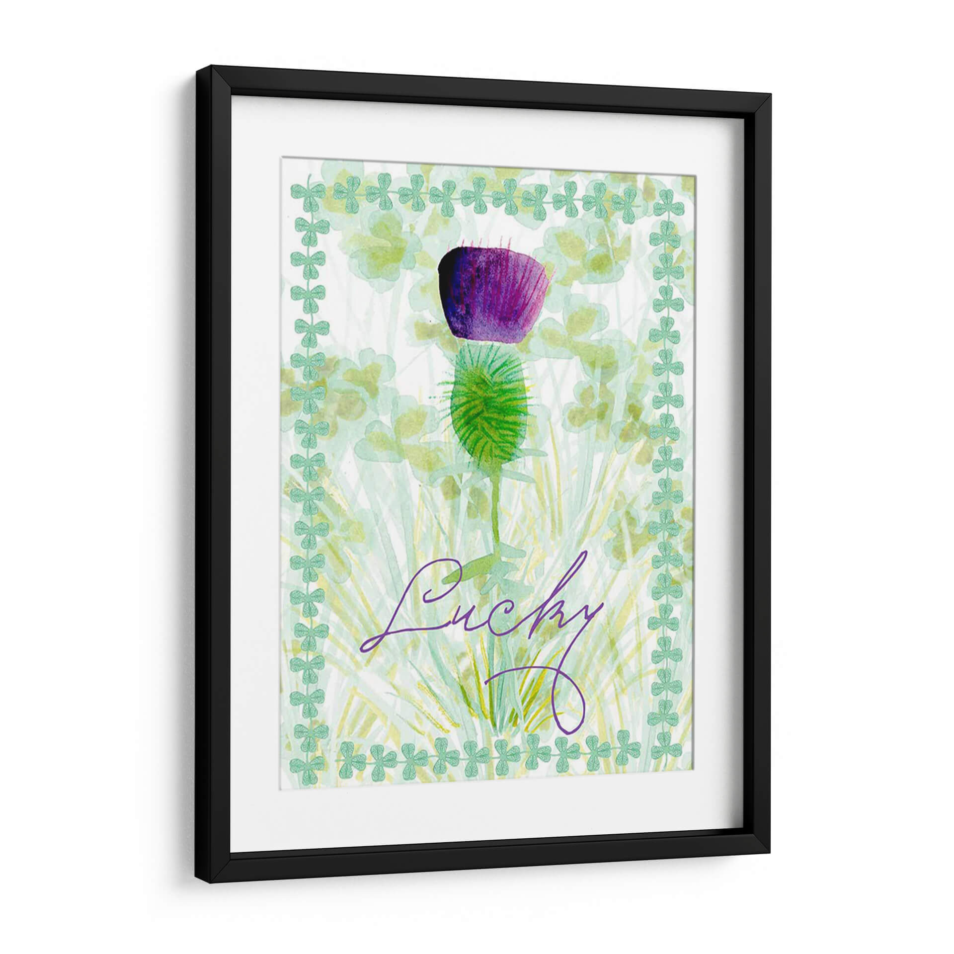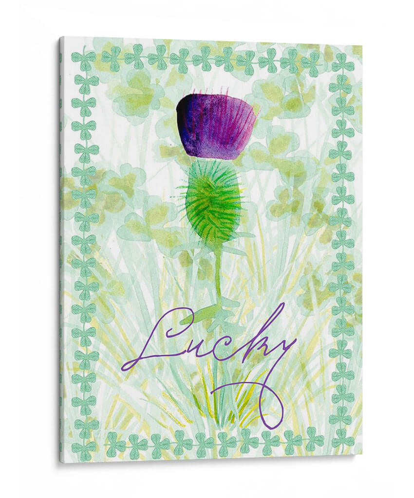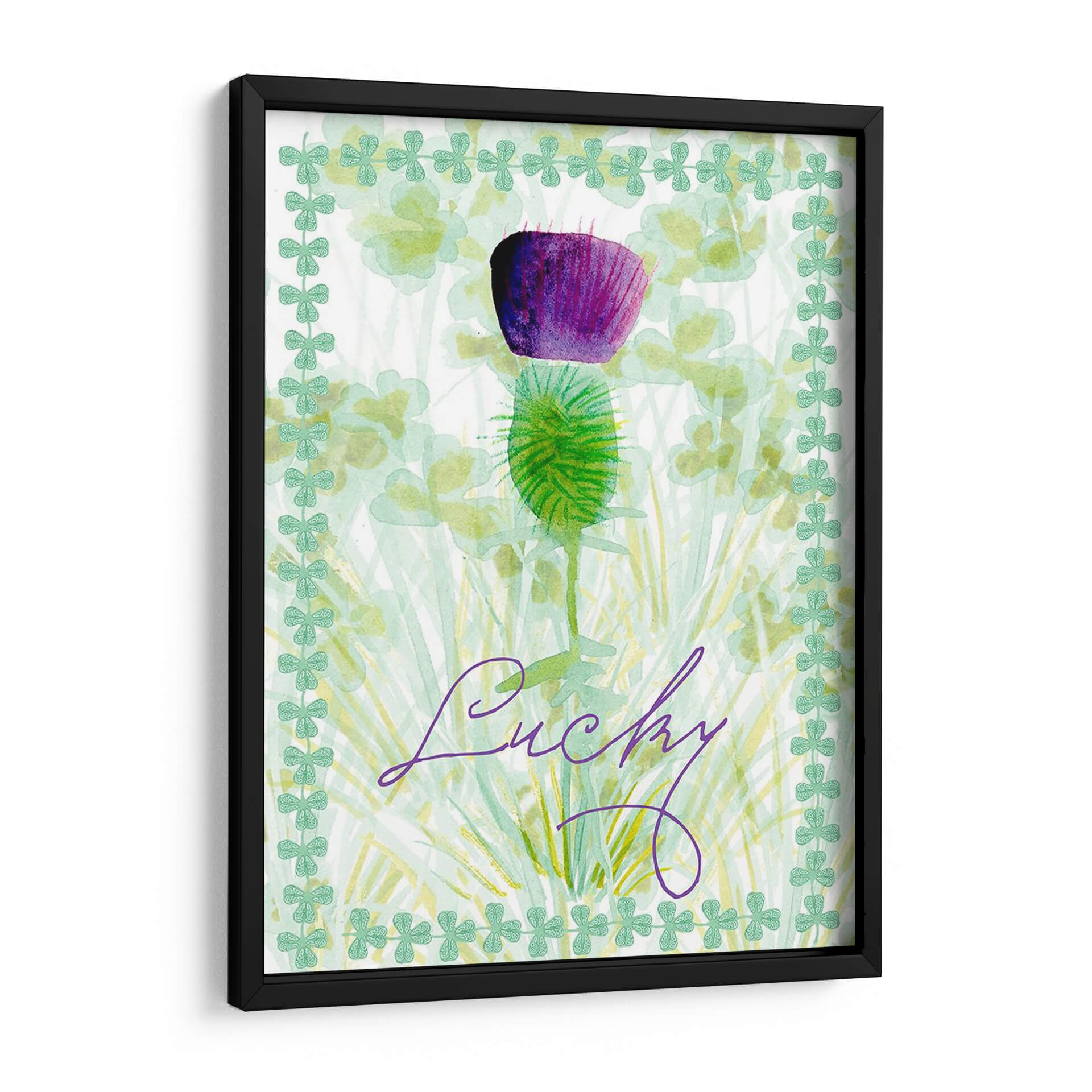 Aporta un toque de suerte y frescura a tu hogar con "Lucky Shamrock I", una obra de arte inspirada en la botánica que captura la esencia de la vitalidad natural. Este cuadro decorativo presenta un delicado cardo en tonos vibrantes de púrpura y verde, representado con una técnica acuarela que le confiere una ligereza etérea. El fondo, un suave tapiz de tréboles en diferentes tonalidades de verde y toques de amarillo pálido, crea una atmósfera serena y optimista. Un borde decorativo de tréboles entrelazados enmarca sutilmente la composición, añadiendo un aire de encanto y protección. La palabra "Lucky", escrita en una elegante caligrafía púrpura, refuerza el mensaje de buena fortuna y positividad. Ideal para dar vida a cualquier rincón, desde un recibidor moderno hasta un espacio de trabajo inspirador o un dormitorio acogedor. Este cuadro decorativo es perfecto para quienes buscan añadir un elemento natural y lleno de energía a su decoración, creando un ambiente de calma y esperanza.