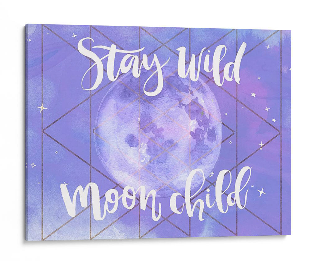 Sumérgete en la magia celestial con "Luna Niño II", una obra de arte que evoca un sentimiento de ensueño y libertad. Este cuadro decorativo presenta una impresionante luna llena en tonos púrpuras y lavandas, con sutiles toques dorados que añaden un brillo etéreo. Rodeada por un patrón geométrico de líneas finas y delicadas estrellas, la pieza transmite una atmósfera de calma y misticismo. Las palabras "Stay Wild Moon Child" escritas en una caligrafía fluida y blanca invitan a abrazar la naturaleza indómita y la imaginación sin límites. Ideal para dormitorios, salas de estar o espacios creativos, este lienzo contemporáneo es perfecto para quienes buscan añadir un toque de serenidad y encanto bohemio a su decoración. La combinación de acuarela suave y elementos gráficos crea una pieza única que inspira tranquilidad y un espíritu aventurero, convirtiéndola en un punto focal cautivador para cualquier ambiente. Una elección perfecta para regalar o para darse un capricho, añadiendo un toque de magia a tu vida.