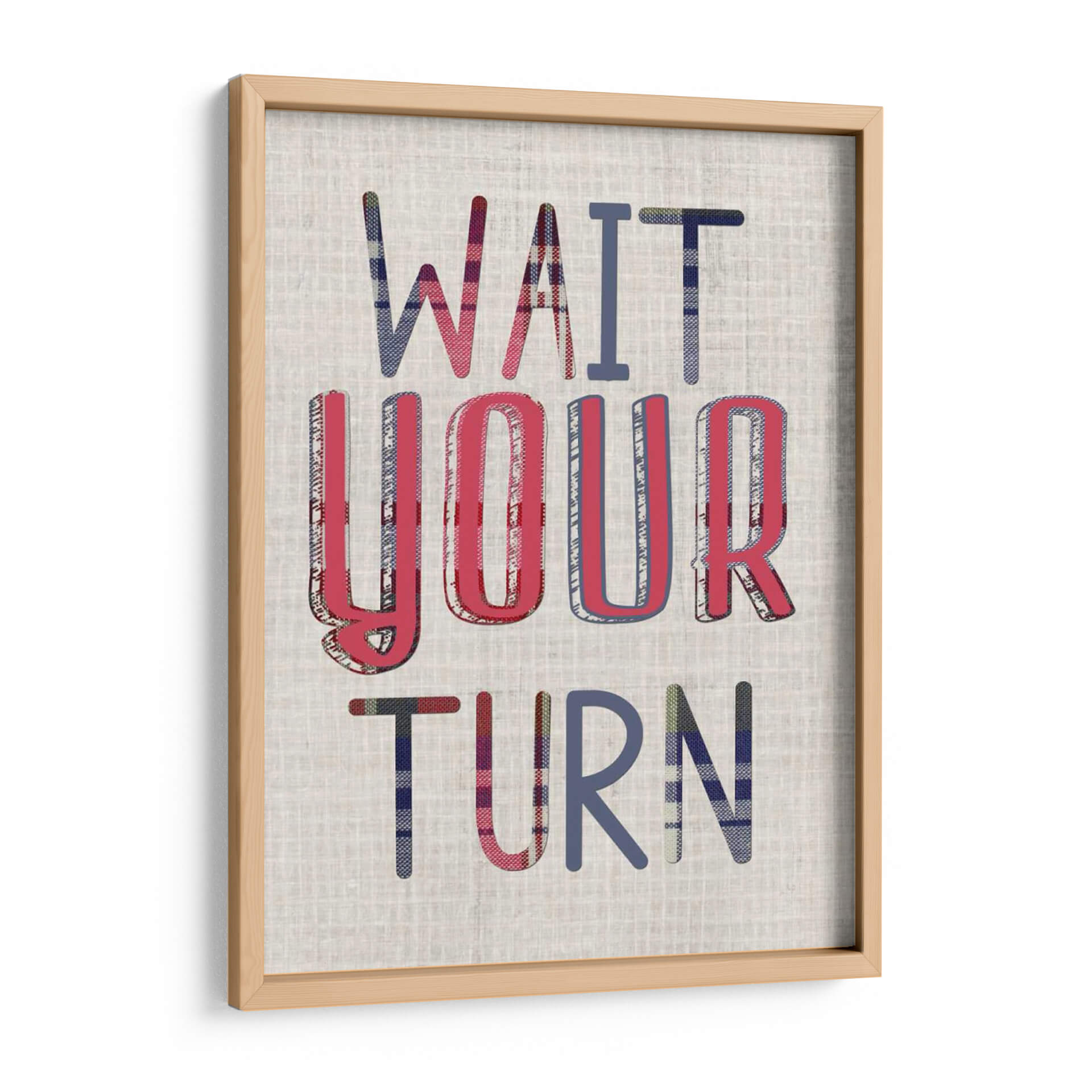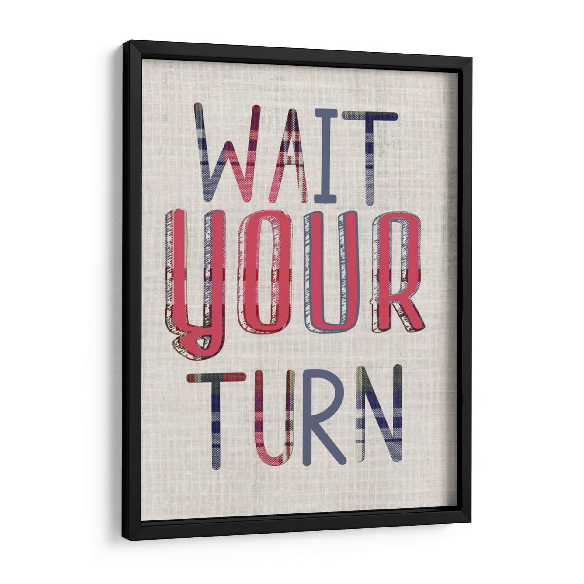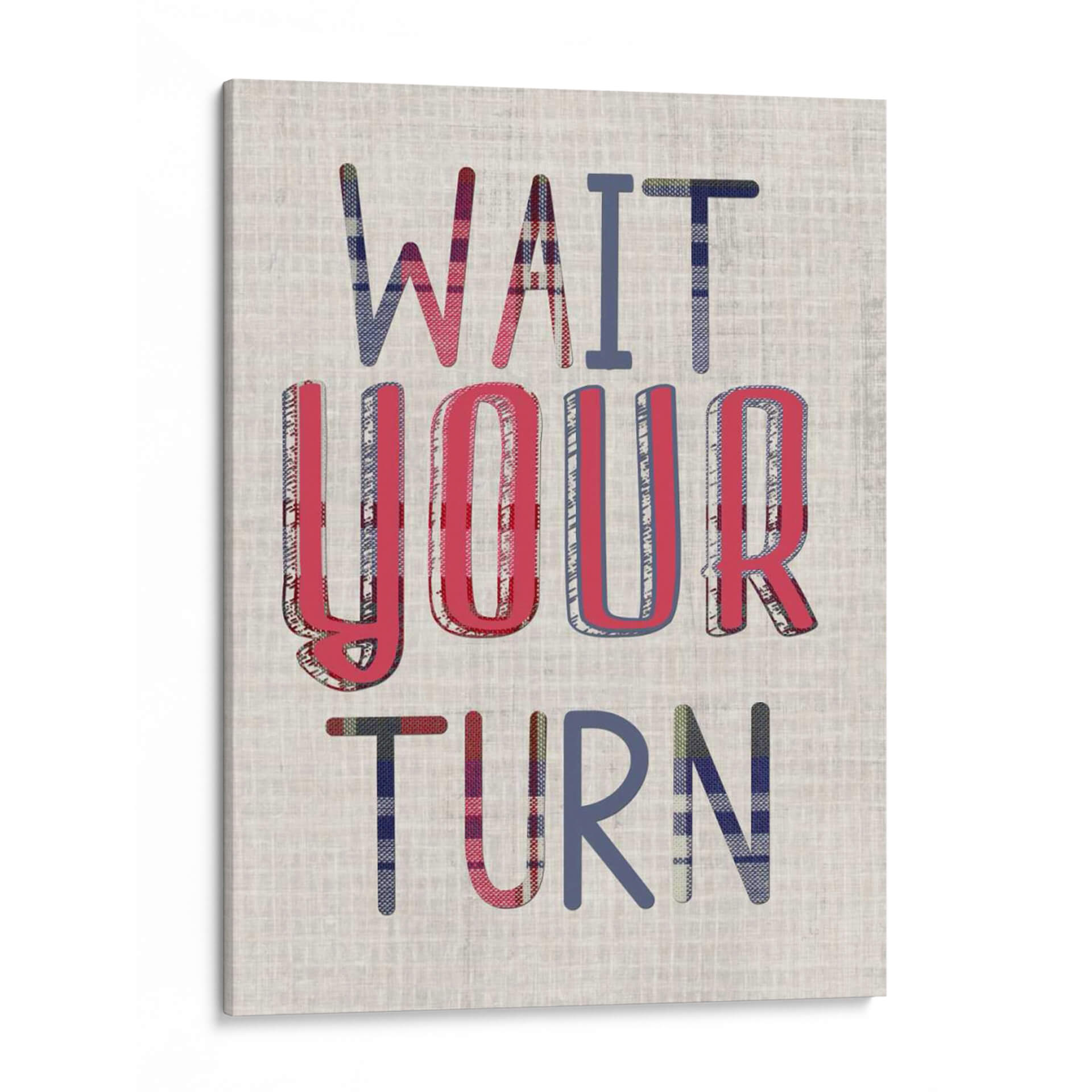Transforma tu espacio con "Manieres Ii", una obra de arte inspiradora de Alicia Ludwig que combina tipografía audaz con un diseño textil texturizado. Las palabras "WAIT YOUR TURN" (Espera tu turno) se presentan en una paleta de colores vibrantes y sutiles, con letras en tonos rojos y azules que contrastan maravillosamente sobre un fondo neutro que imita la textura de la tela. Esta pieza es perfecta para añadir un toque de originalidad y un mensaje reflexivo a cualquier habitación, desde una sala de estar moderna hasta una oficina creativa o incluso un dormitorio juvenil. Su estilo gráfico y contemporáneo la convierte en un punto focal que invita a la contemplación y al diálogo. El uso de patrones tipo tartán o tejido dentro de las letras añade una dimensión táctil y visual única, elevando esta pieza de simple texto a una obra de arte. "Manieres Ii" es ideal para aquellos que buscan decoración de pared que no solo embellezca, sino que también transmita un mensaje con carácter y estilo. Añade esta pieza a tu colección y crea un ambiente lleno de personalidad.