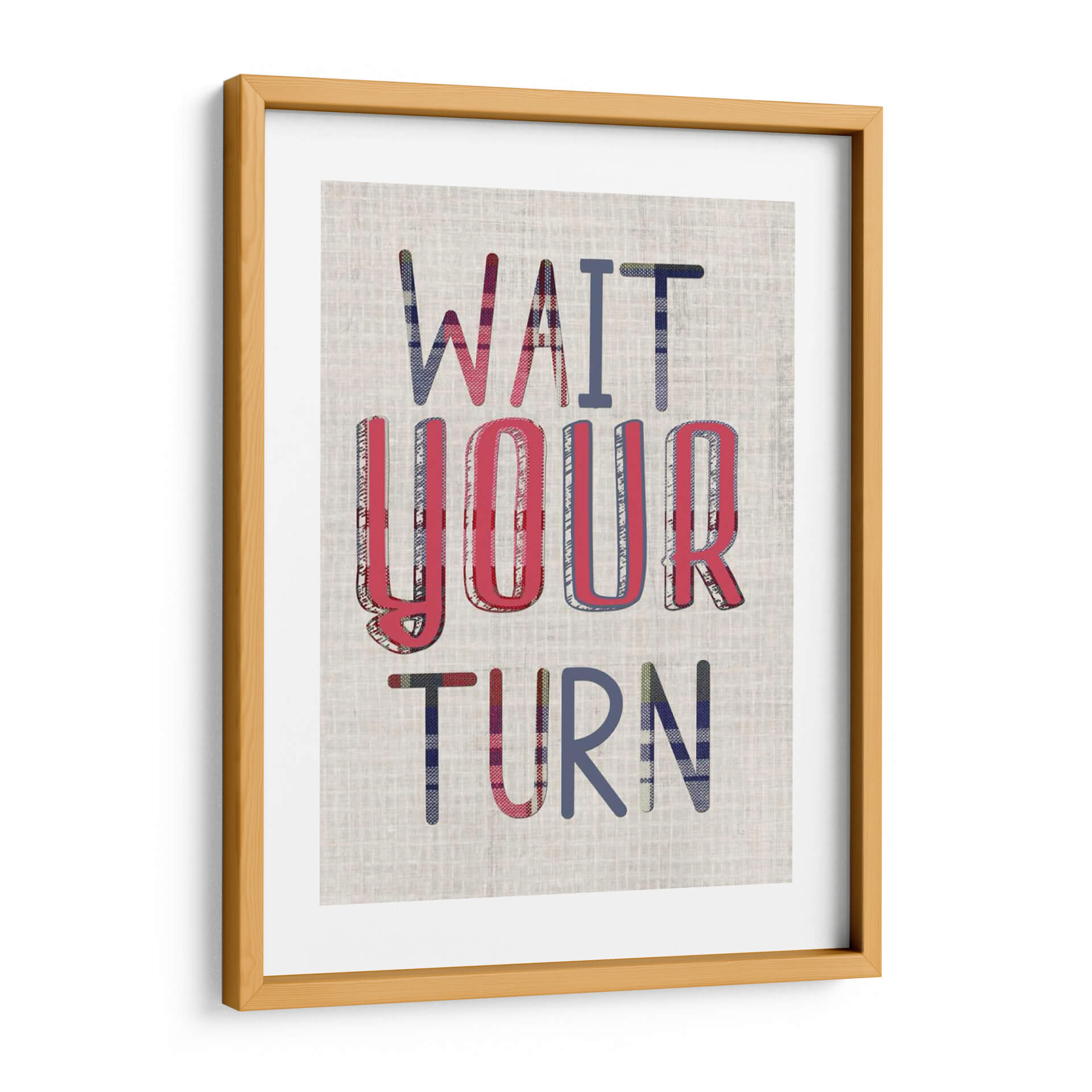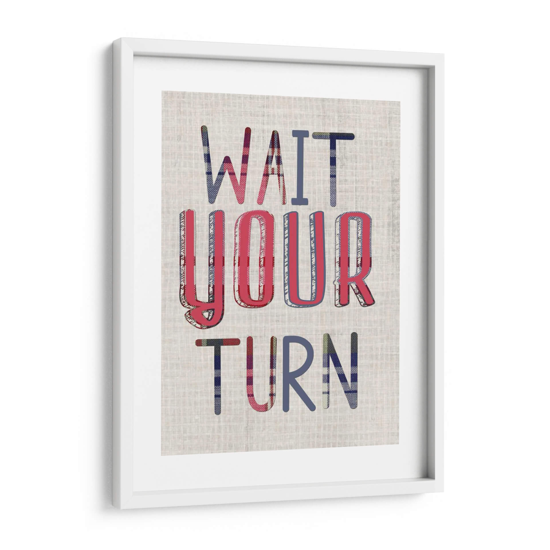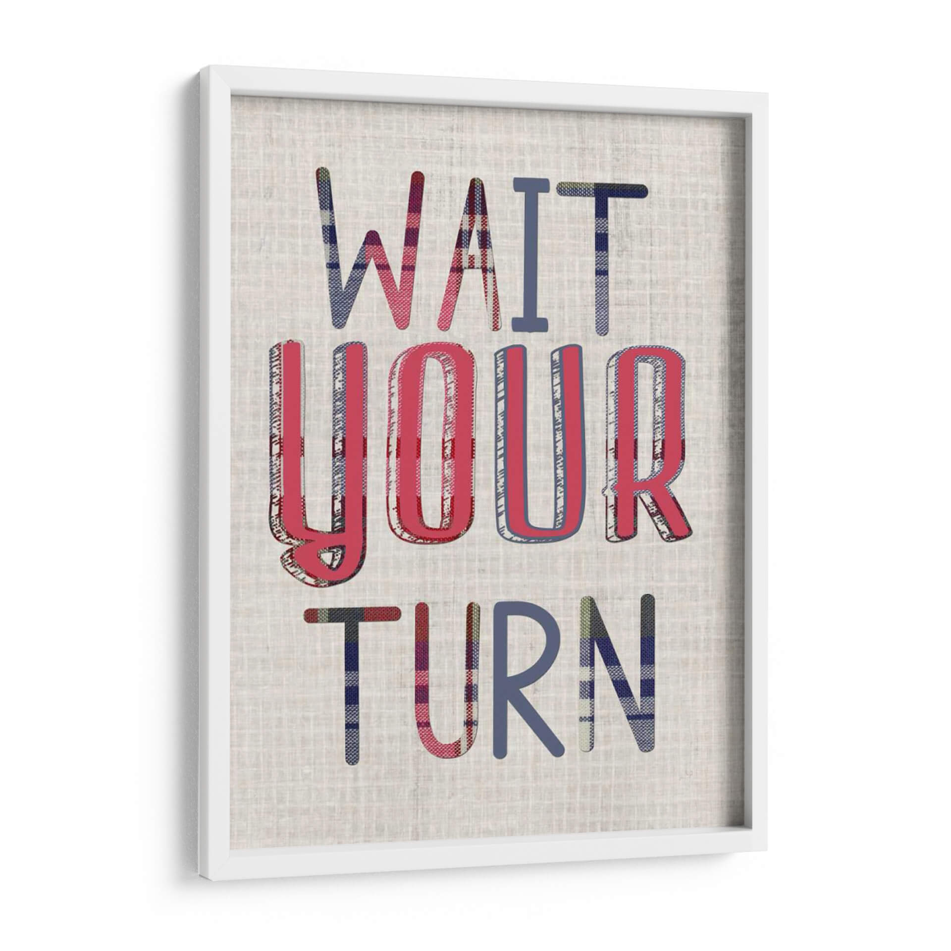 Transforma tu espacio con "Manieres Ii", una obra de arte inspiradora de Alicia Ludwig que combina tipografía audaz con un diseño textil texturizado. Las palabras "WAIT YOUR TURN" (Espera tu turno) se presentan en una paleta de colores vibrantes y sutiles, con letras en tonos rojos y azules que contrastan maravillosamente sobre un fondo neutro que imita la textura de la tela. Esta pieza es perfecta para añadir un toque de originalidad y un mensaje reflexivo a cualquier habitación, desde una sala de estar moderna hasta una oficina creativa o incluso un dormitorio juvenil. Su estilo gráfico y contemporáneo la convierte en un punto focal que invita a la contemplación y al diálogo. El uso de patrones tipo tartán o tejido dentro de las letras añade una dimensión táctil y visual única, elevando esta pieza de simple texto a una obra de arte. "Manieres Ii" es ideal para aquellos que buscan decoración de pared que no solo embellezca, sino que también transmita un mensaje con carácter y estilo. Añade esta pieza a tu colección y crea un ambiente lleno de personalidad.