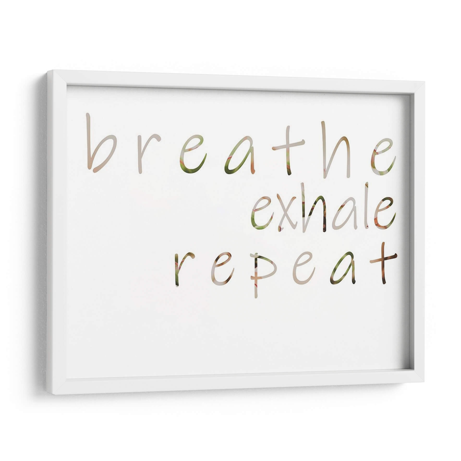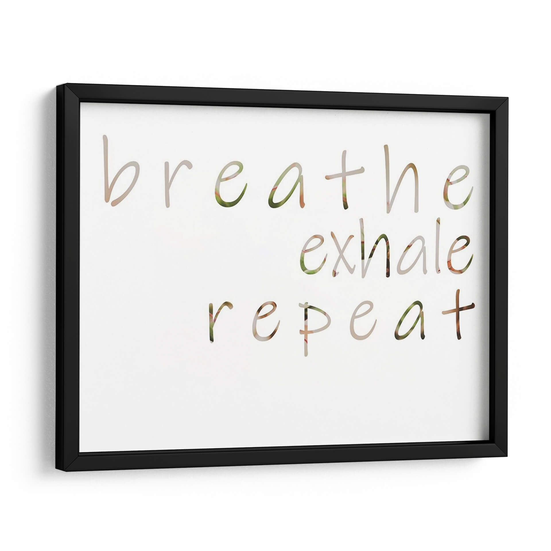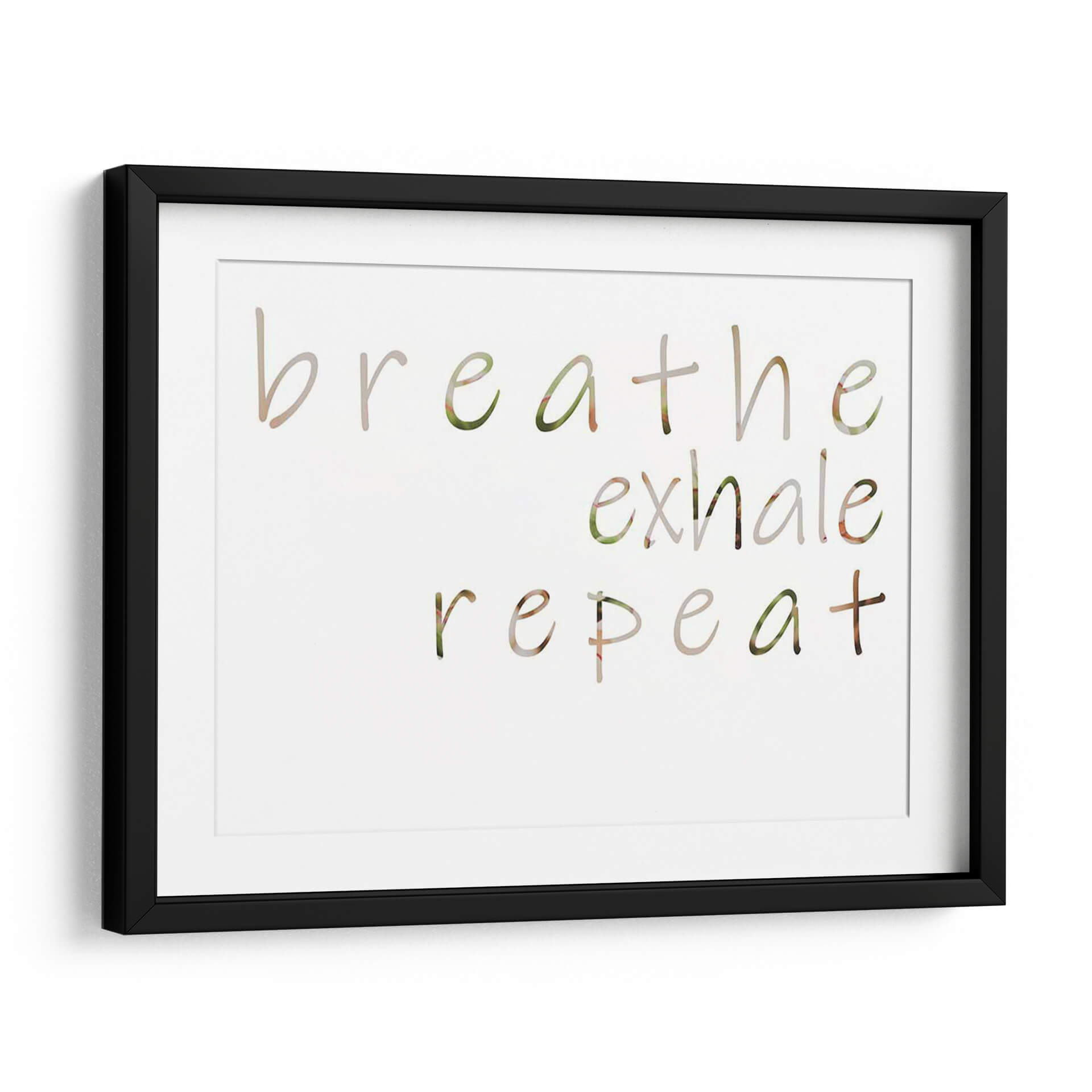 Inyecta calma y positividad en tu hogar con el cuadro decorativo "Mantra Positivo III" de Jennifer Goldberger. Esta obra de arte visualmente serena presenta la frase "breathe exhale repeat" (respira exhala repite) en una tipografía delicada y fluida, con letras que parecen integrarse sutilmente con un fondo de texturas naturales en tonos verdes y tierra. La composición minimalista y el mensaje inspirador lo convierten en una adición perfecta para cualquier espacio que busque fomentar la tranquilidad y el bienestar. Ideal para tu dormitorio, estudio, sala de meditación o incluso un rincón acogedor en la oficina, este cuadro decorativo es un recordatorio constante para centrarse en el presente y cultivar la paz interior. Su paleta de colores suaves y orgánicos se adapta a una variedad de estilos decorativos, desde el nórdico hasta el bohemio o moderno. Transforma tu ambiente con este poderoso mantra visual y crea un santuario personal de serenidad y reflexión.