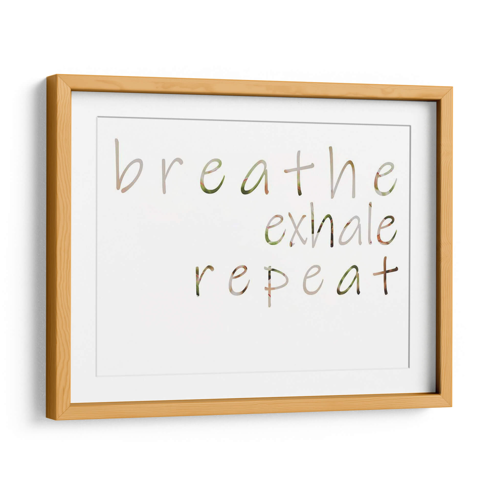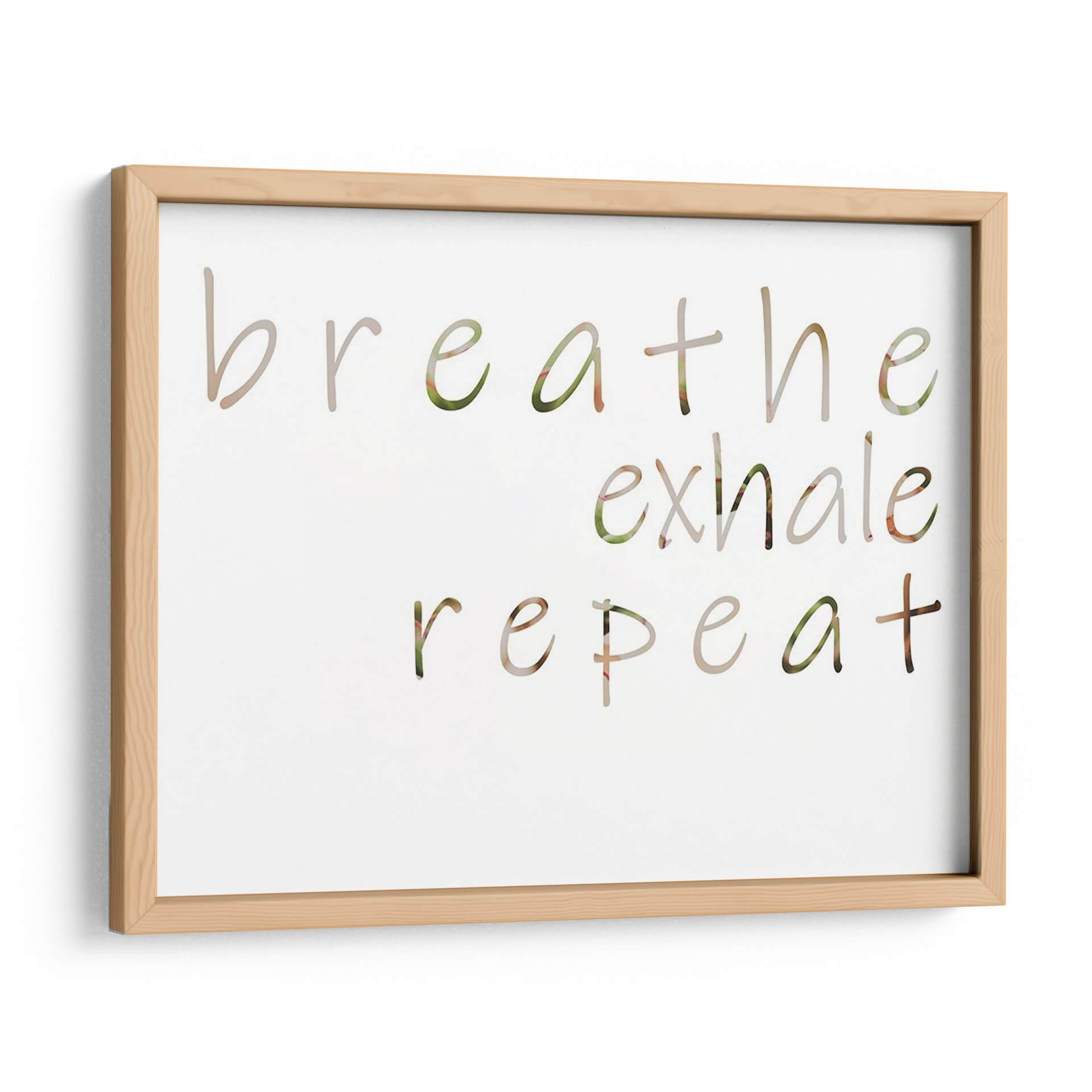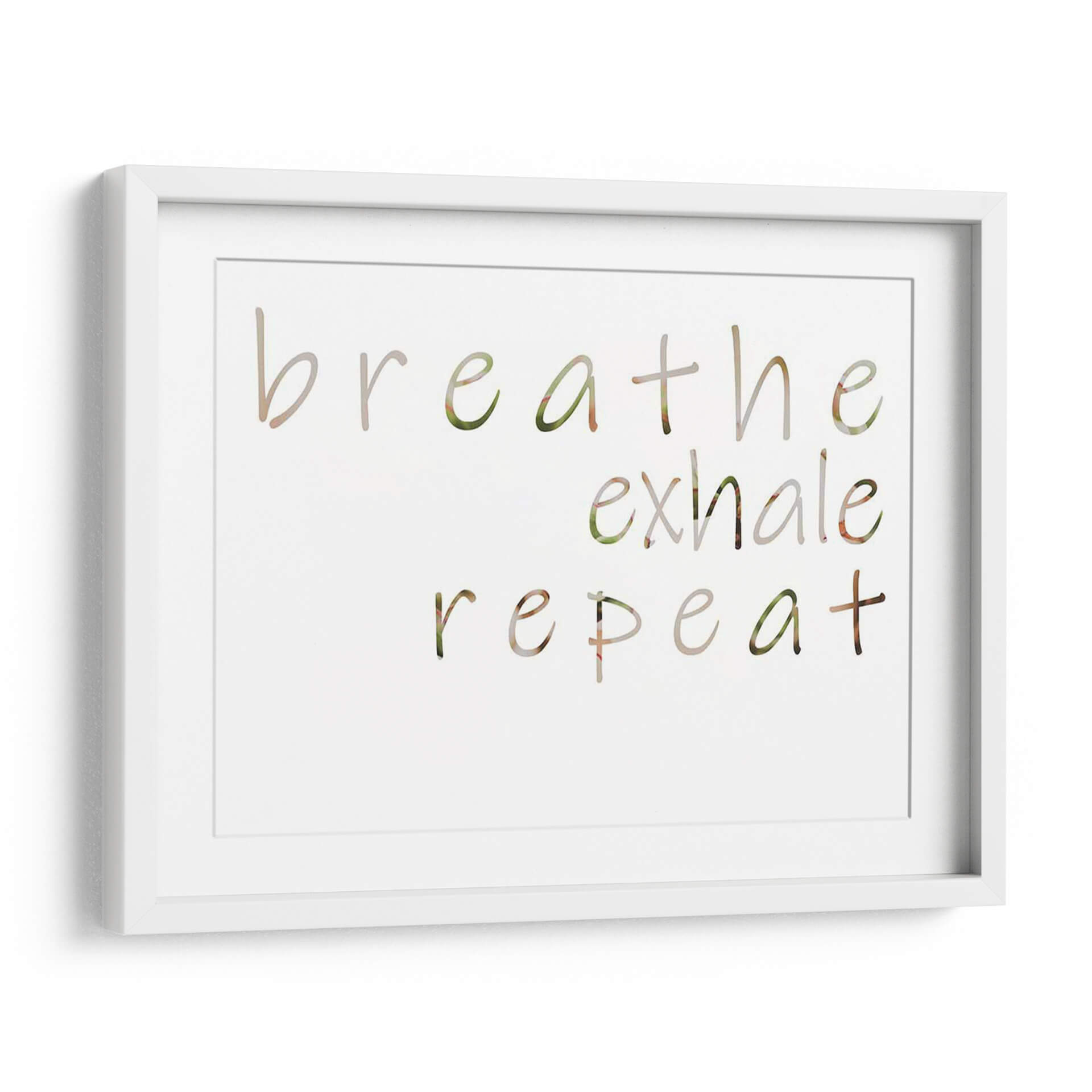Inyecta calma y positividad en tu hogar con el cuadro decorativo "Mantra Positivo III" de Jennifer Goldberger. Esta obra de arte visualmente serena presenta la frase "breathe exhale repeat" (respira exhala repite) en una tipografía delicada y fluida, con letras que parecen integrarse sutilmente con un fondo de texturas naturales en tonos verdes y tierra. La composición minimalista y el mensaje inspirador lo convierten en una adición perfecta para cualquier espacio que busque fomentar la tranquilidad y el bienestar. Ideal para tu dormitorio, estudio, sala de meditación o incluso un rincón acogedor en la oficina, este cuadro decorativo es un recordatorio constante para centrarse en el presente y cultivar la paz interior. Su paleta de colores suaves y orgánicos se adapta a una variedad de estilos decorativos, desde el nórdico hasta el bohemio o moderno. Transforma tu ambiente con este poderoso mantra visual y crea un santuario personal de serenidad y reflexión.