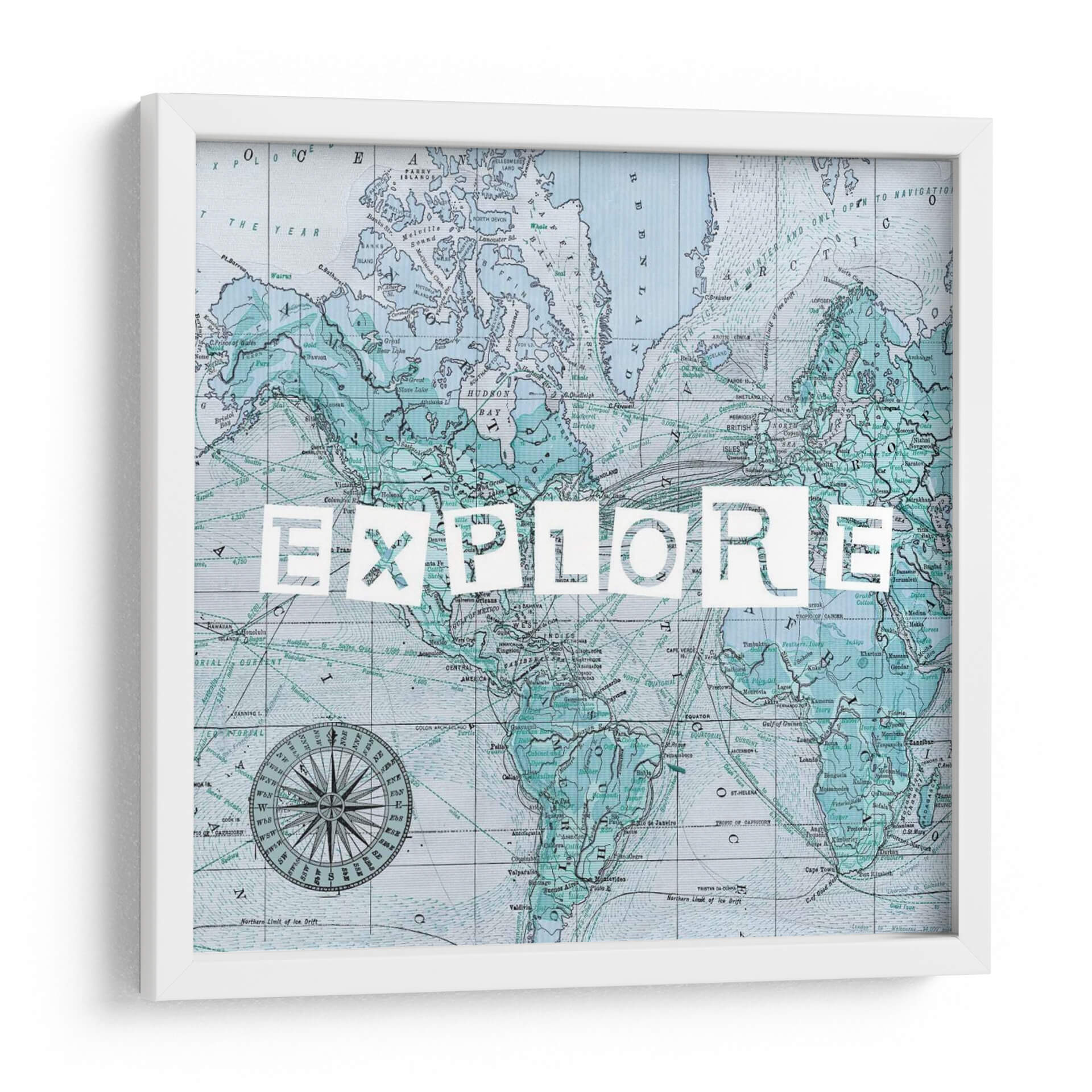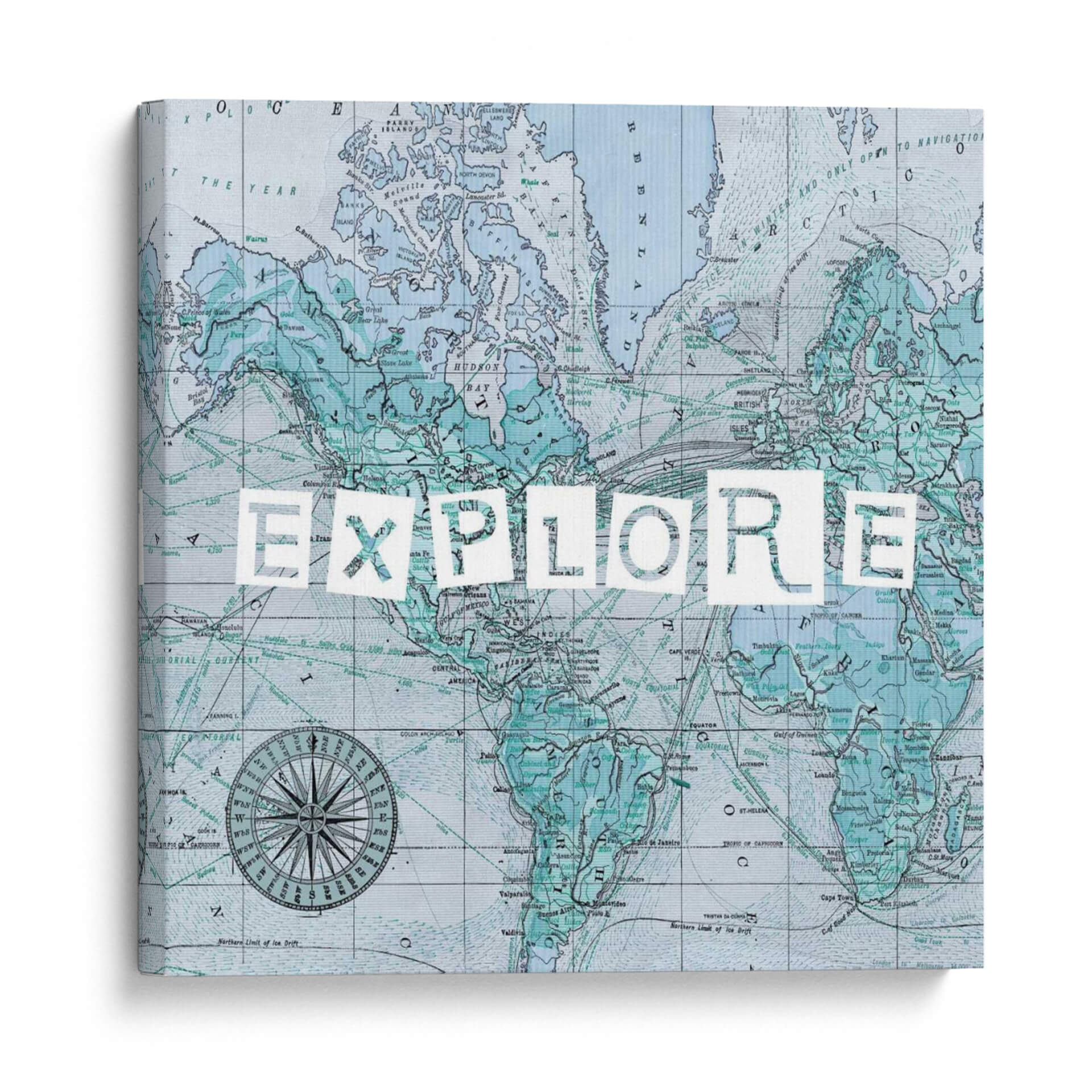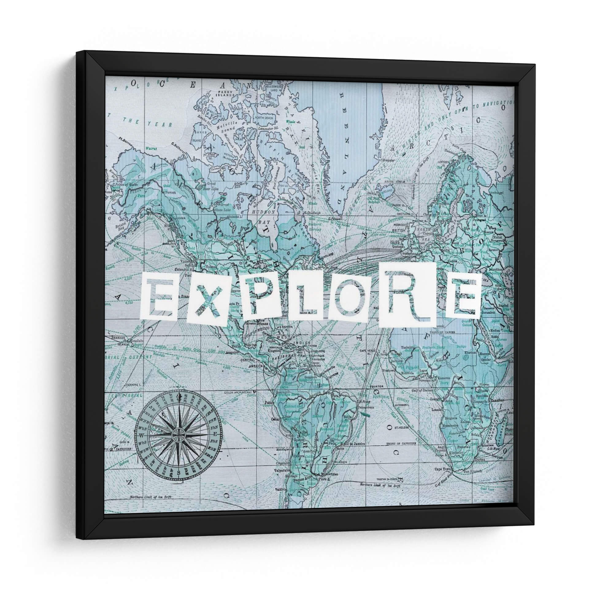 Este cuadro decorativo se inspira en la cartografía histórica y el espíritu de la exploración. Los sutiles detalles del mapa, junto con la poderosa palabra "EXPLORE", crean una pieza que es tanto educativa como inspiradora. Los colores, predominantemente azules y verdes, aportan una atmósfera de calma y serenidad, contrastando con la energía implícita en el tema de la aventura. Es una adición perfecta para cualquier hogar u oficina que desee evocar una sensación de curiosidad y descubrimiento. La obra es un testimonio del arte que trasciende lo puramente estético para transmitir un mensaje profundo y motivacional, invitando a mirar más allá de lo conocido y a abrazar nuevas experiencias. Su diseño versátil se adapta a una amplia gama de estilos decorativos, desde el contemporáneo hasta el más ecléctico, aportando un toque de sofisticación y carácter.
