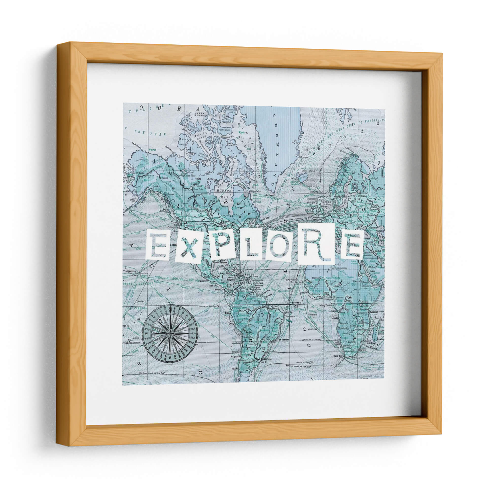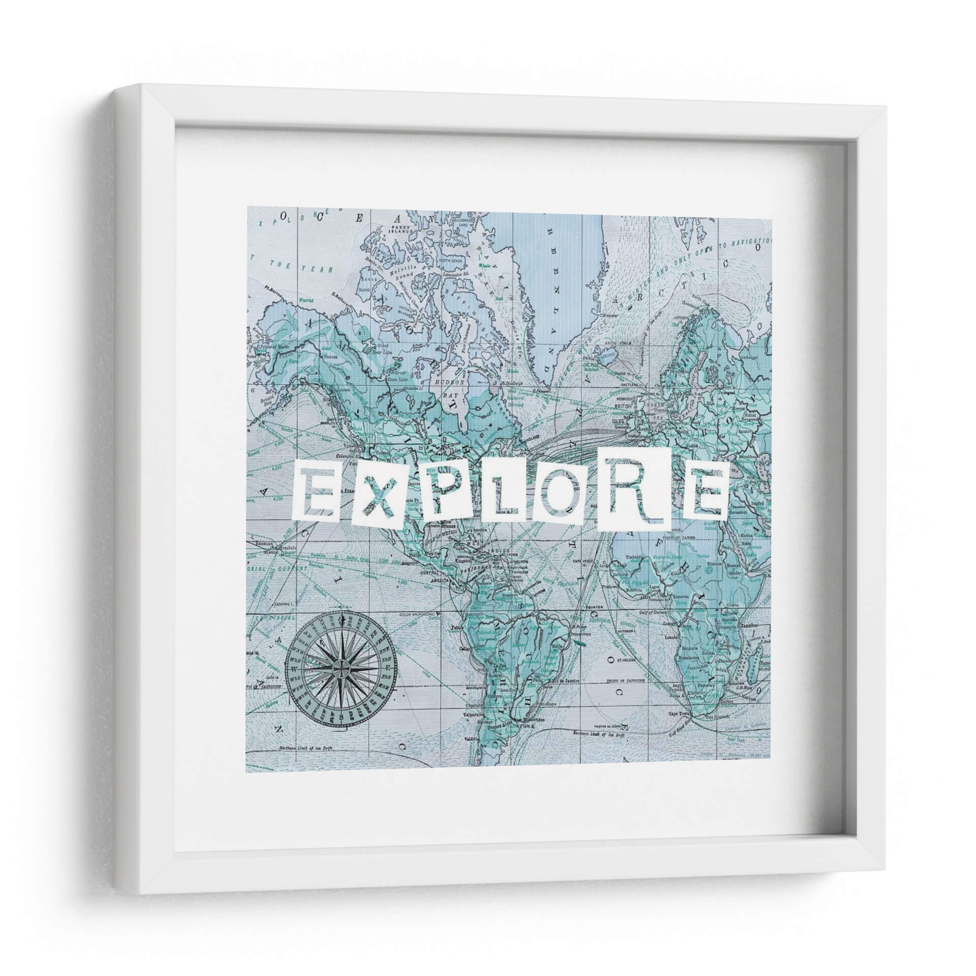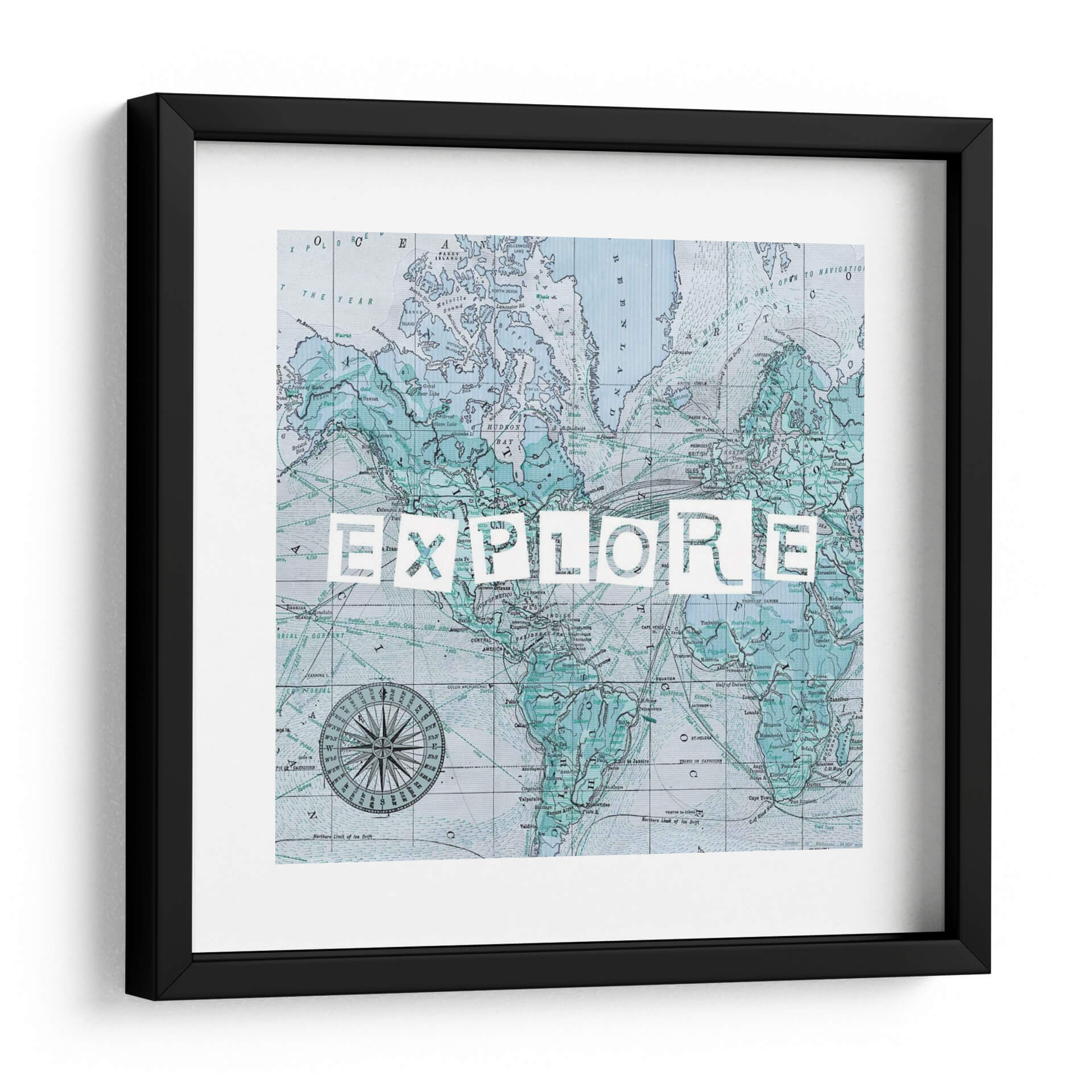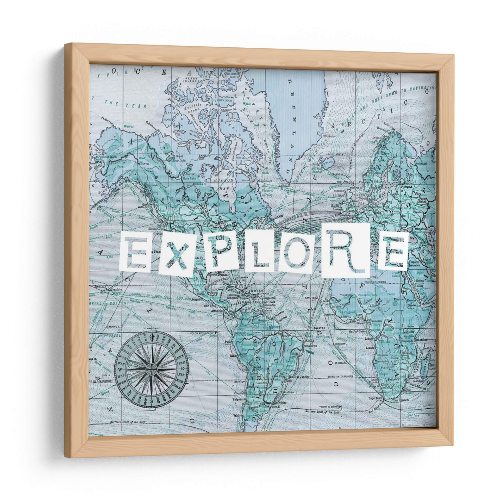 Este cuadro decorativo se inspira en la cartografía histórica y el espíritu de la exploración. Los sutiles detalles del mapa, junto con la poderosa palabra "EXPLORE", crean una pieza que es tanto educativa como inspiradora. Los colores, predominantemente azules y verdes, aportan una atmósfera de calma y serenidad, contrastando con la energía implícita en el tema de la aventura. Es una adición perfecta para cualquier hogar u oficina que desee evocar una sensación de curiosidad y descubrimiento. La obra es un testimonio del arte que trasciende lo puramente estético para transmitir un mensaje profundo y motivacional, invitando a mirar más allá de lo conocido y a abrazar nuevas experiencias. Su diseño versátil se adapta a una amplia gama de estilos decorativos, desde el contemporáneo hasta el más ecléctico, aportando un toque de sofisticación y carácter.