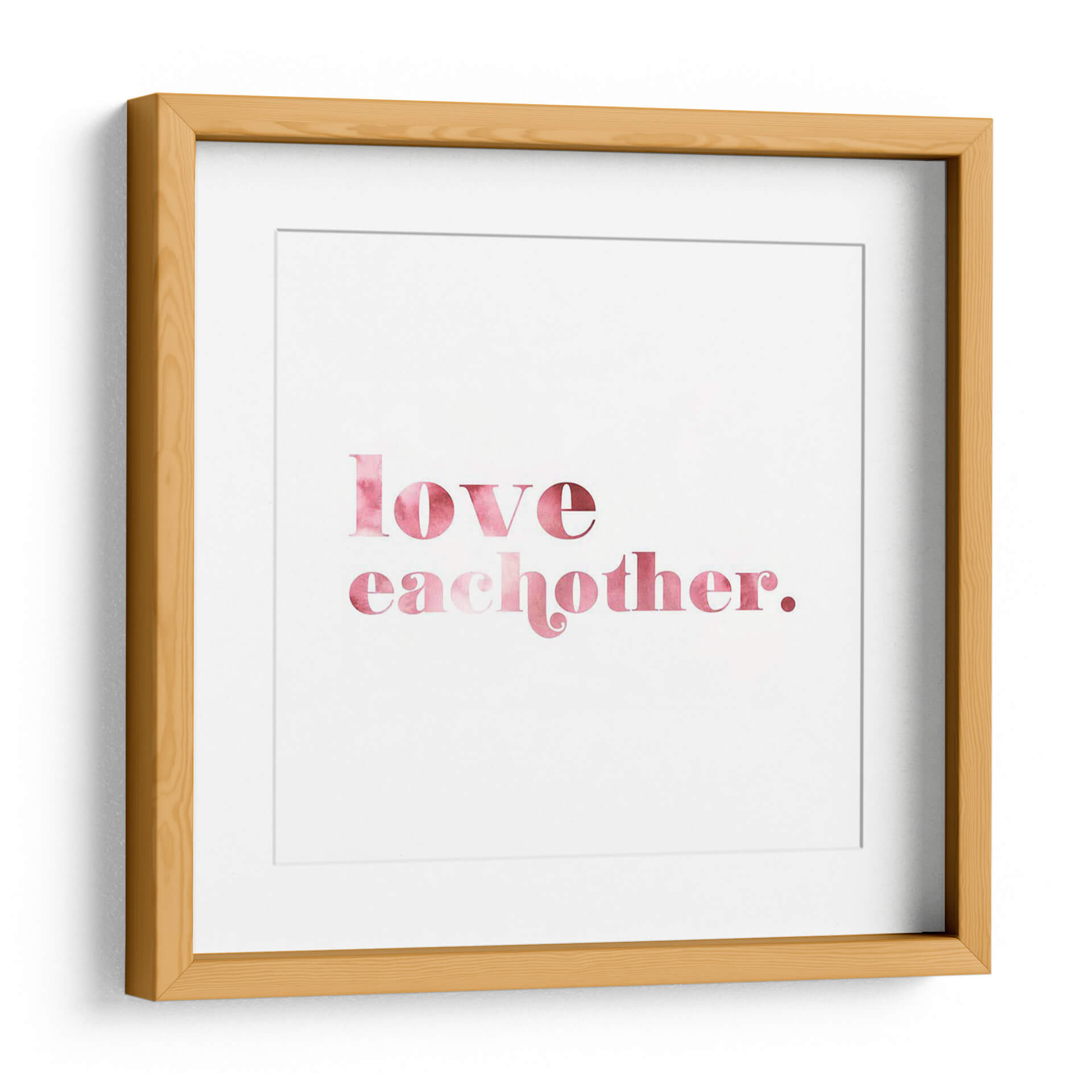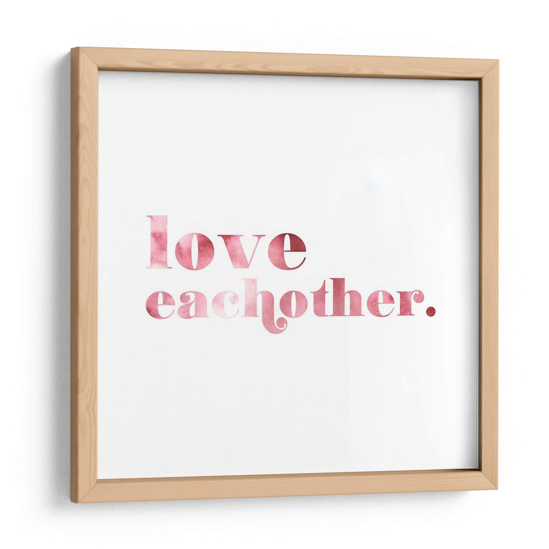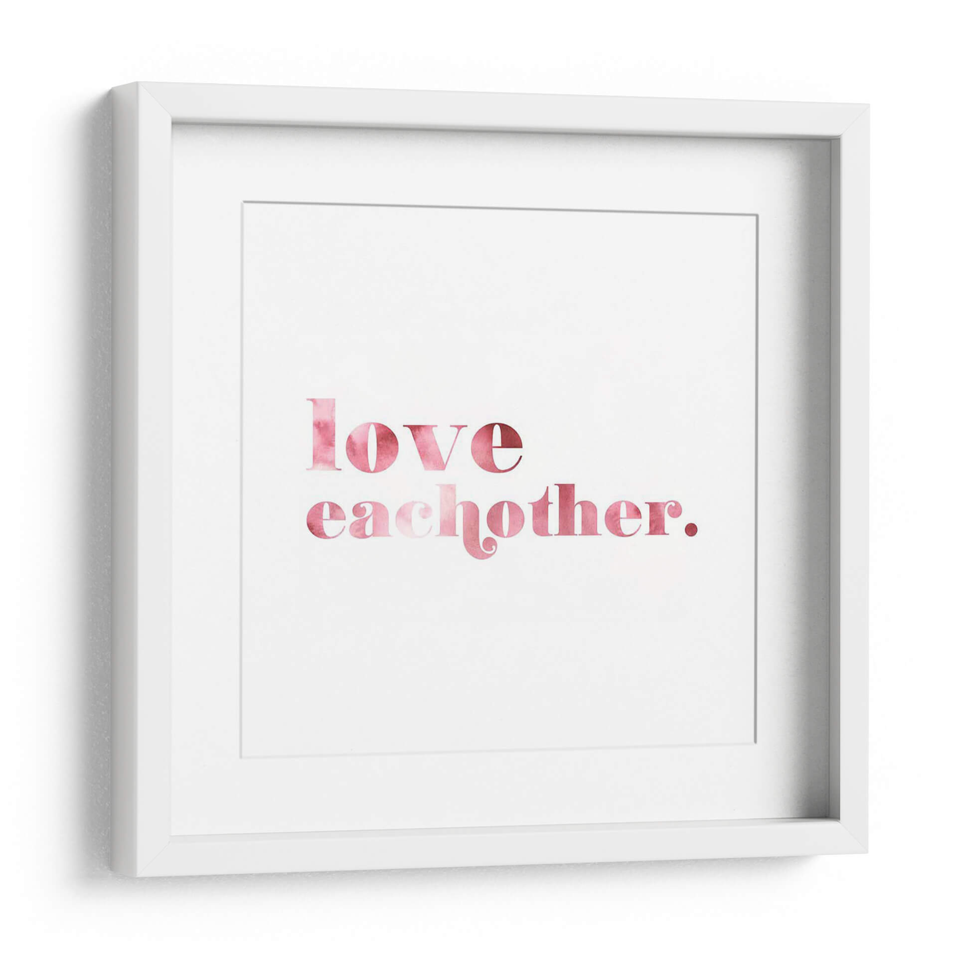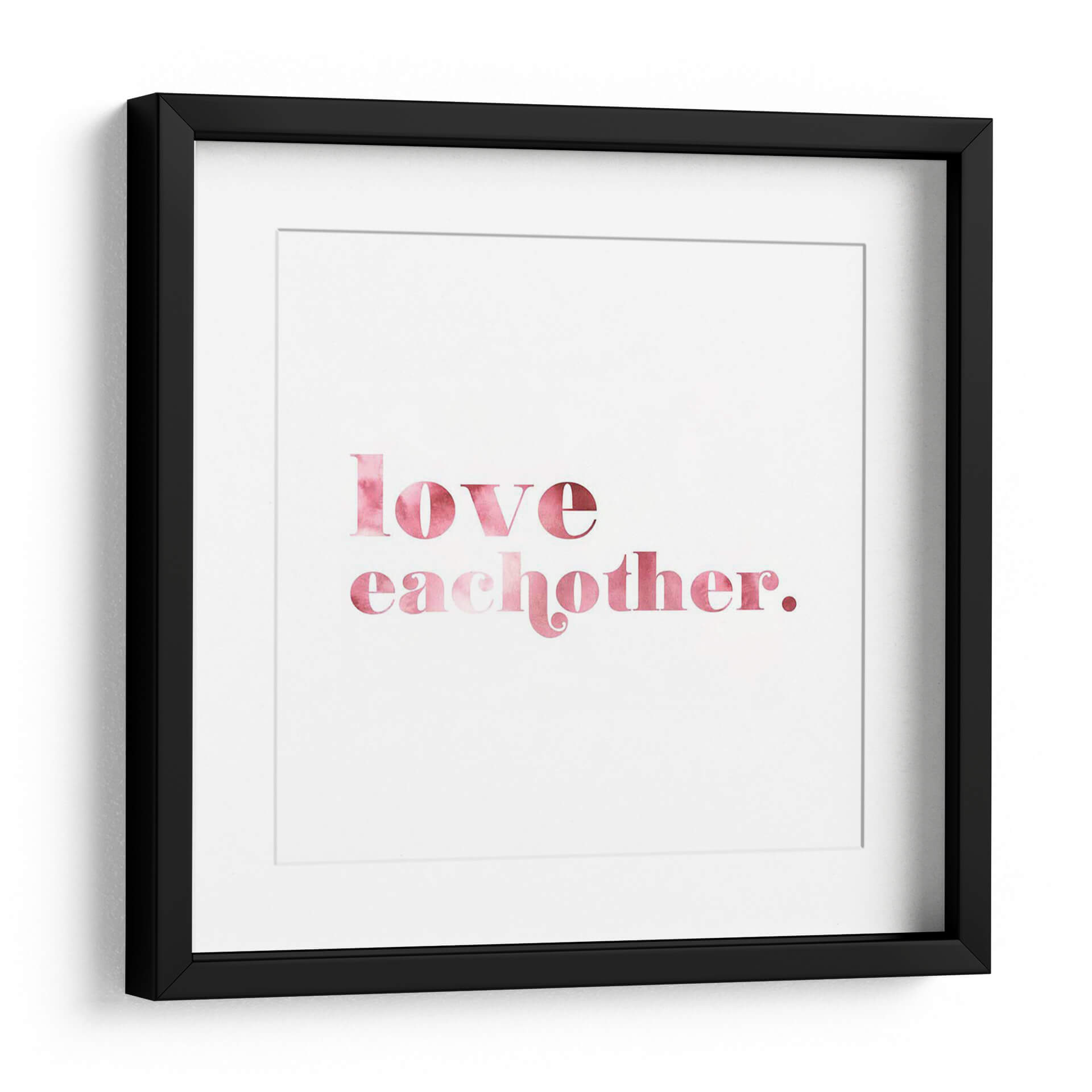 Transforma tu espacio con el inspirador cuadro decorativo "Mejor Mundo II" de Grace Popp. Esta cautivadora obra de arte tipográfica presenta la poderosa frase "love each other" (ámense unos a otros) en una delicada acuarela rosa sobre un fondo blanco nítido. La paleta de colores suave y cálida, que transita del rosa pálido al fucsia intenso, evoca sentimientos de amor, unidad y conexión. El estilo minimalista y la tipografía elegante hacen de esta pieza una adición versátil para cualquier decoración, desde un hogar moderno hasta una oficina acogedora. Su mensaje positivo y esperanzador la convierte en un recordatorio diario de la importancia de la empatía y la bondad. Imagina este cuadro decorativo como un punto focal sereno en tu sala de estar, un toque de dulzura en tu dormitorio, o un mensaje inspirador en tu espacio de trabajo. "Mejor Mundo II" no es solo una obra de arte, es una declaración de intenciones que embellece y eleva el espíritu, añadiendo un toque de color y significado a tus paredes.
