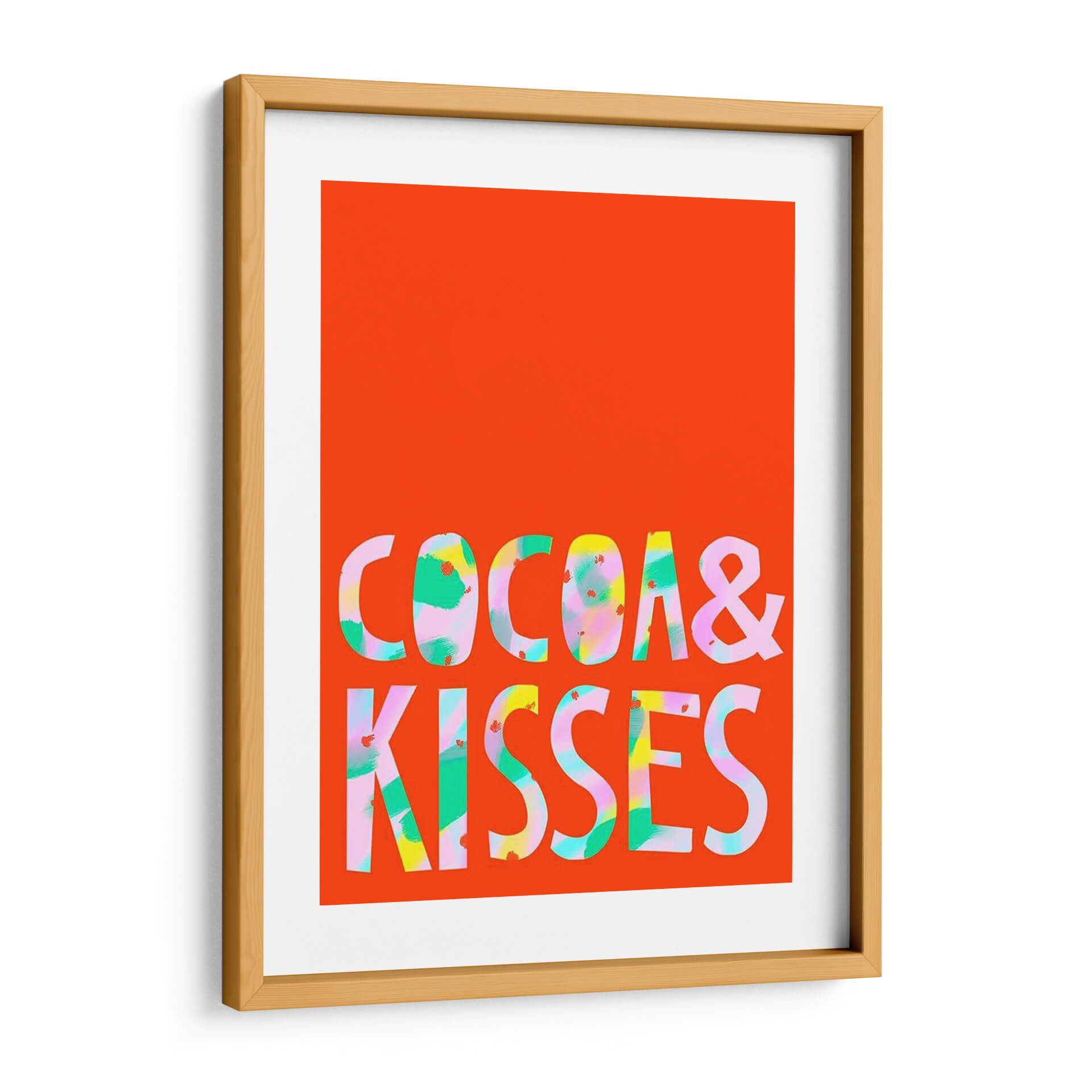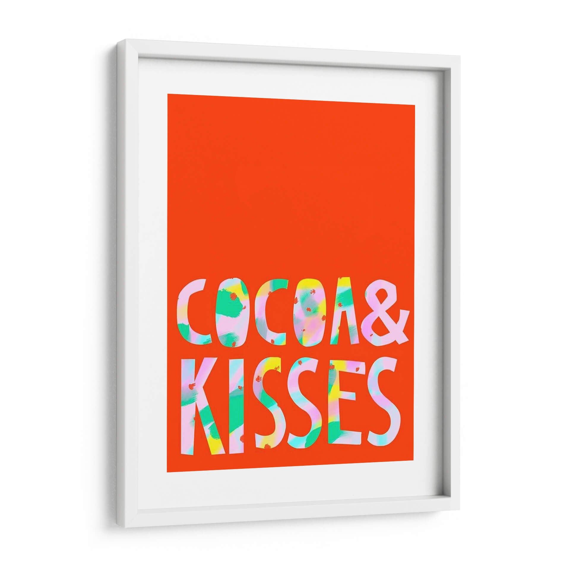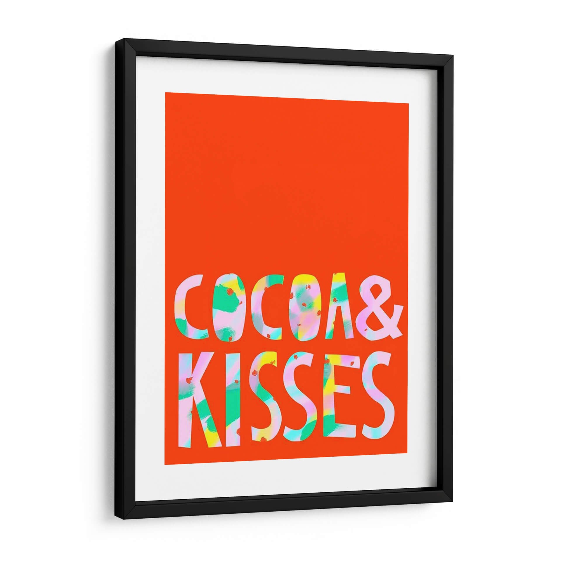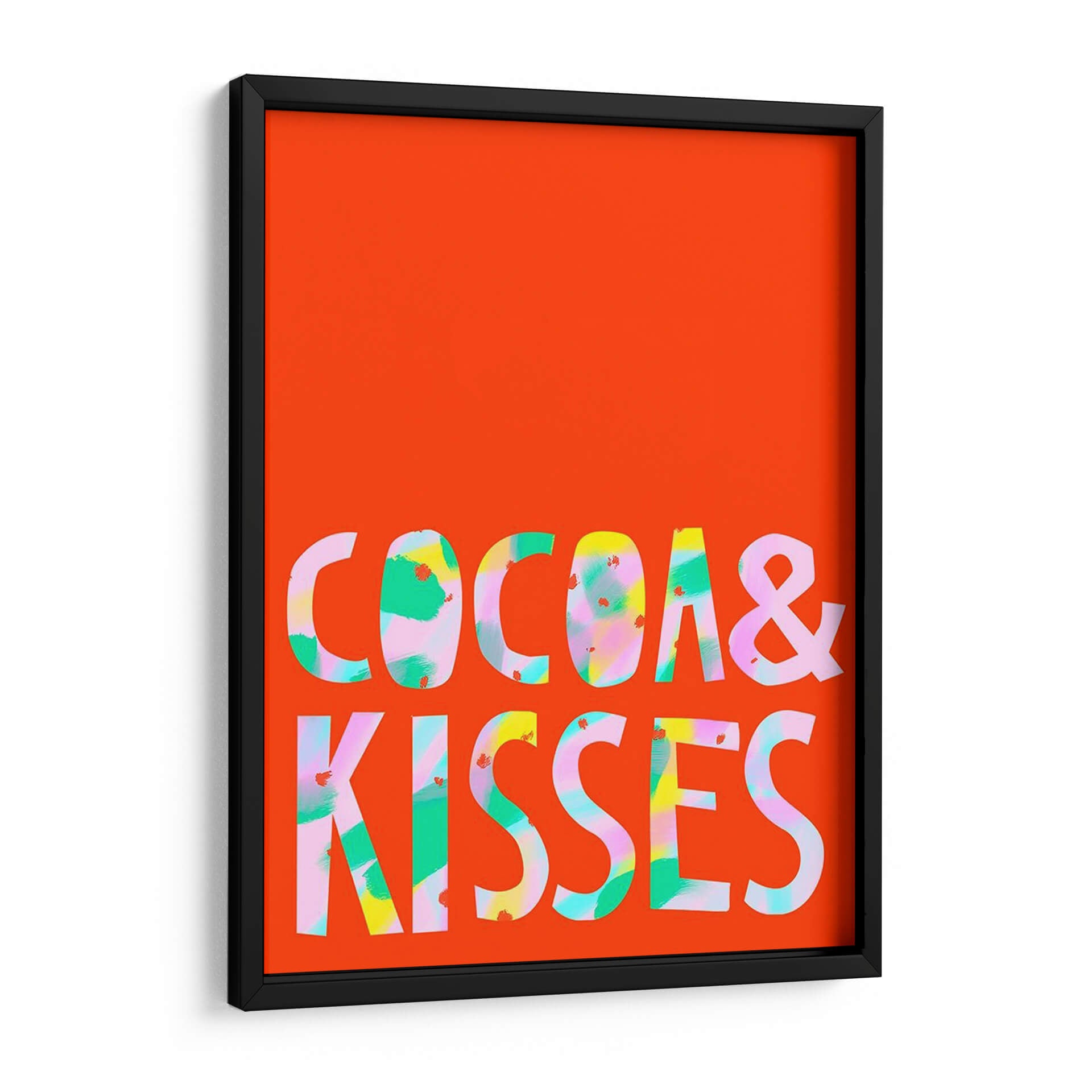 Inyecta una dosis de alegría y vibrante energía a tu espacio con "Merry Y Brillante III", una obra de arte contemporáneo que captura la esencia de la celebración y el optimismo. Este cuadro decorativo presenta un audaz fondo naranja brillante que sirve como lienzo para un texto estilizado en letras mayúsculas, "COCOA & KISSES". Las letras en sí son una explosión de color, con pinceladas audaces y expresivas en tonos de verde menta, rosa pálido, amarillo vibrante y toques de blanco, creando un efecto dinámico y moderno. El estilo abstracto y gestual dentro de las letras contrasta maravillosamente con la simplicidad del fondo, generando un punto focal atractivo y lleno de vida. Ideal para espacios que buscan un toque de personalidad y un ambiente jovial, como una sala de estar, una cocina moderna o incluso un espacio de trabajo creativo. "Merry Y Brillante III" es más que una decoración; es una declaración de intenciones, una invitación a la felicidad y al disfrute de los pequeños placeres de la vida. Añade un toque de color y carácter a tus paredes con esta pieza única que promete ser un tema de conversación.