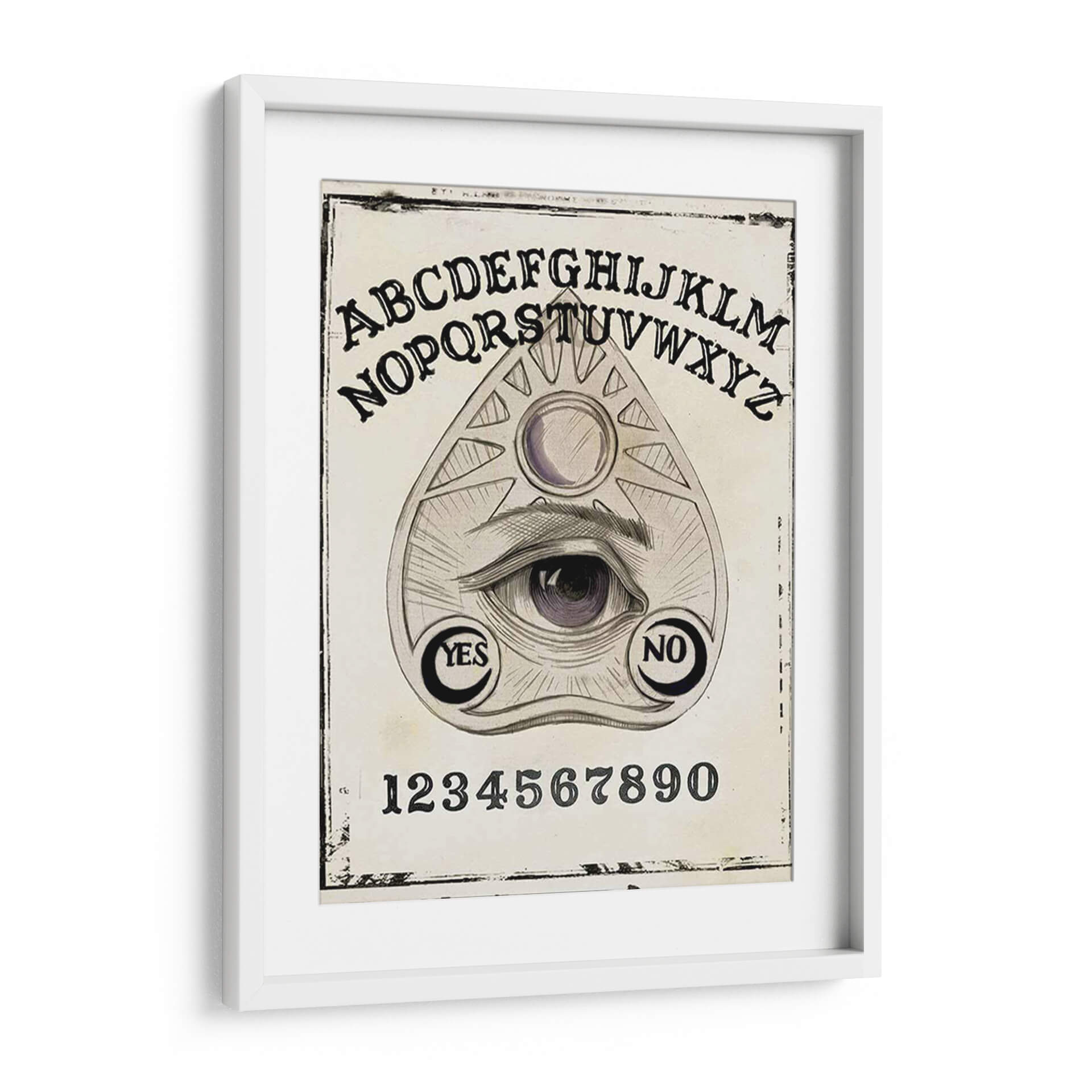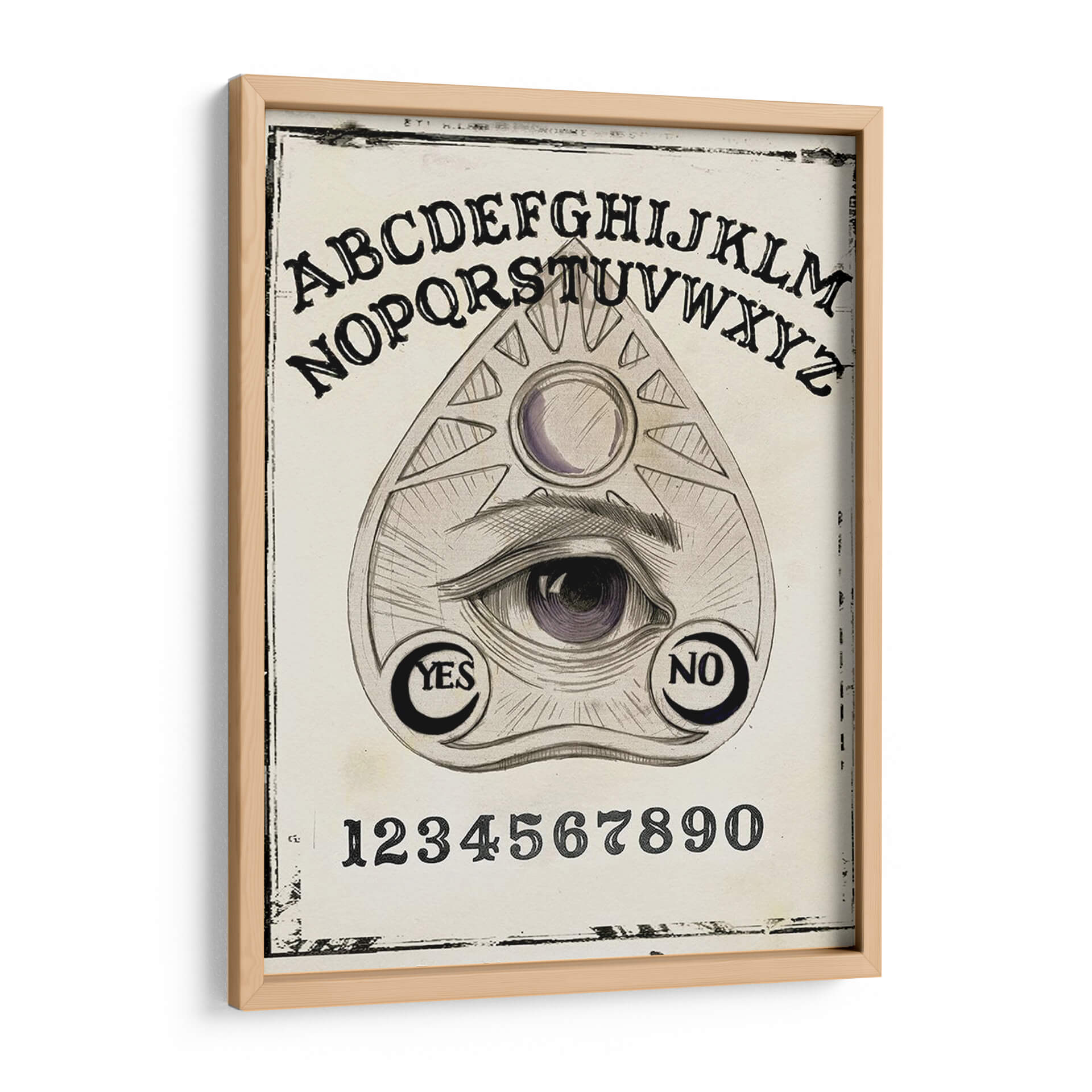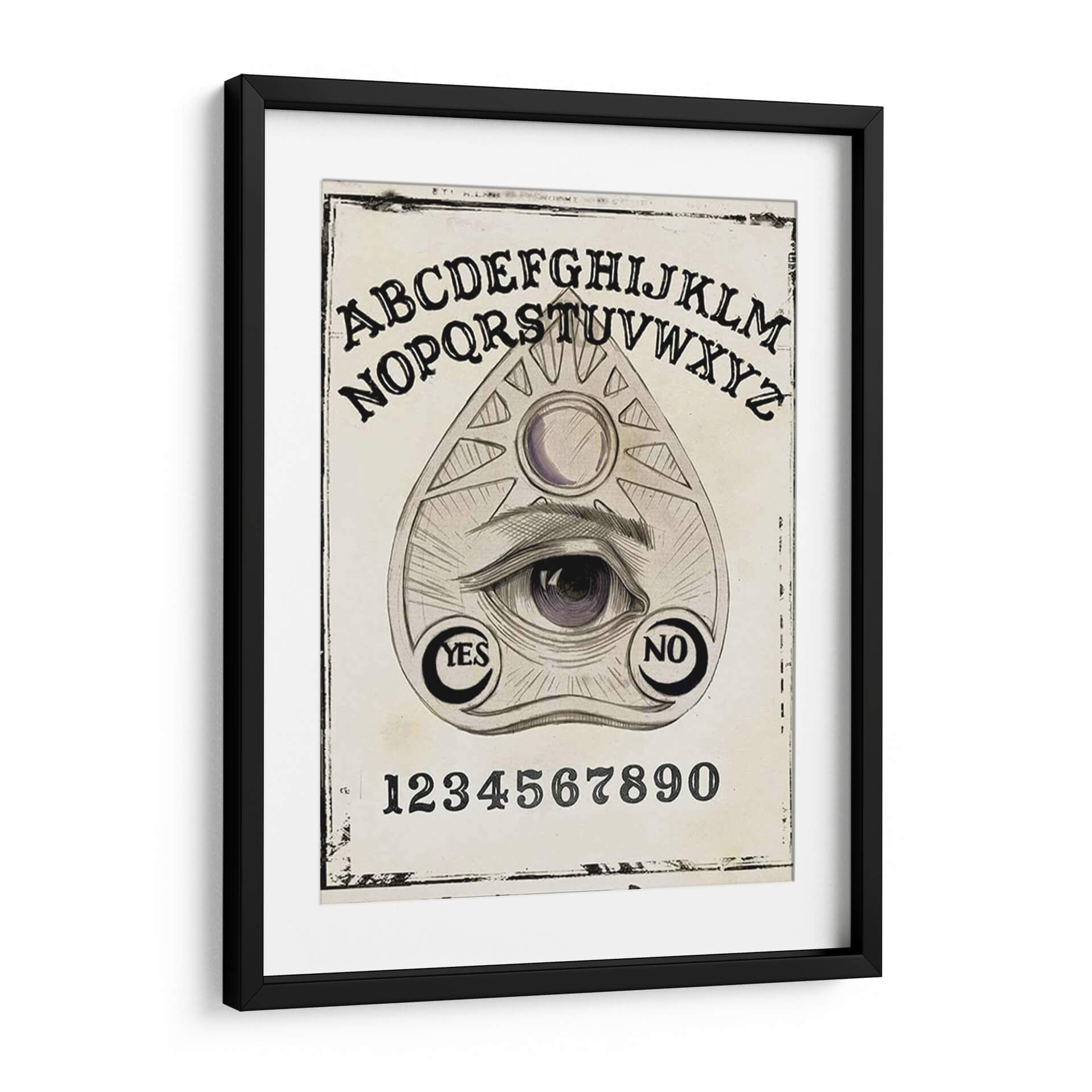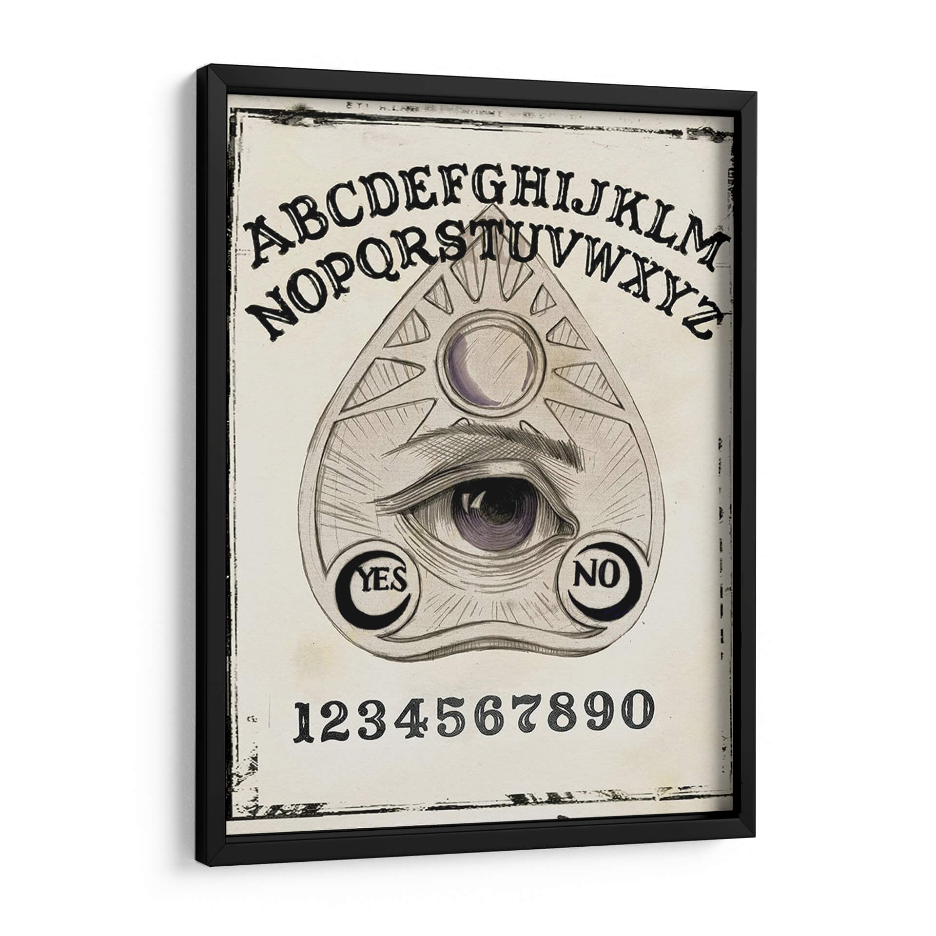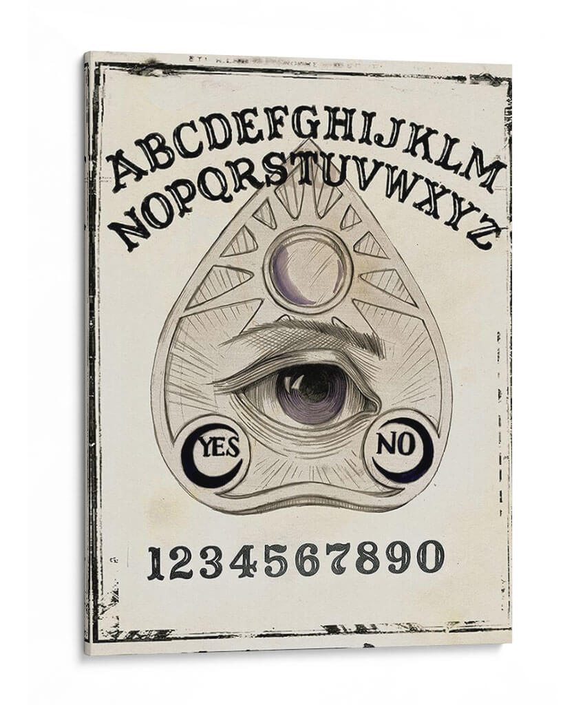 Sumérgete en el misterio y lo oculto con "Místico I", una obra de arte evocadora del artista Jennifer Paxton Parker. Este cuadro decorativo presenta una representación intrigante de una tabla Ouija, dominada por un ojo central con profundos tonos púrpuras, rodeado por el alfabeto completo, los números del 0 al 9, y las palabras "YES" y "NO". La paleta de colores, con su base cremosa y detalles en blanco y negro, evoca una atmósfera vintage y enigmática, complementada por sutiles toques de color púrpura que añaden un aire de profundidad espiritual. El estilo gráfico y detallado de la ilustración, con un toque de surrealismo, lo convierte en una pieza de conversación ideal para espacios que buscan un carácter único y misterioso. Perfecto para salones, estudios o cualquier rincón donde se desee añadir un toque de intriga y misticismo, este cuadro decorativo es una invitación a explorar lo desconocido y a cuestionar la realidad. Su diseño lineal y la composición centrada en el ojo y la tabla Ouija generan una conexión visual poderosa, atrayendo la mirada y estimulando la imaginación. Añade un toque de lo esotérico a tu decoración con esta pieza distintiva.