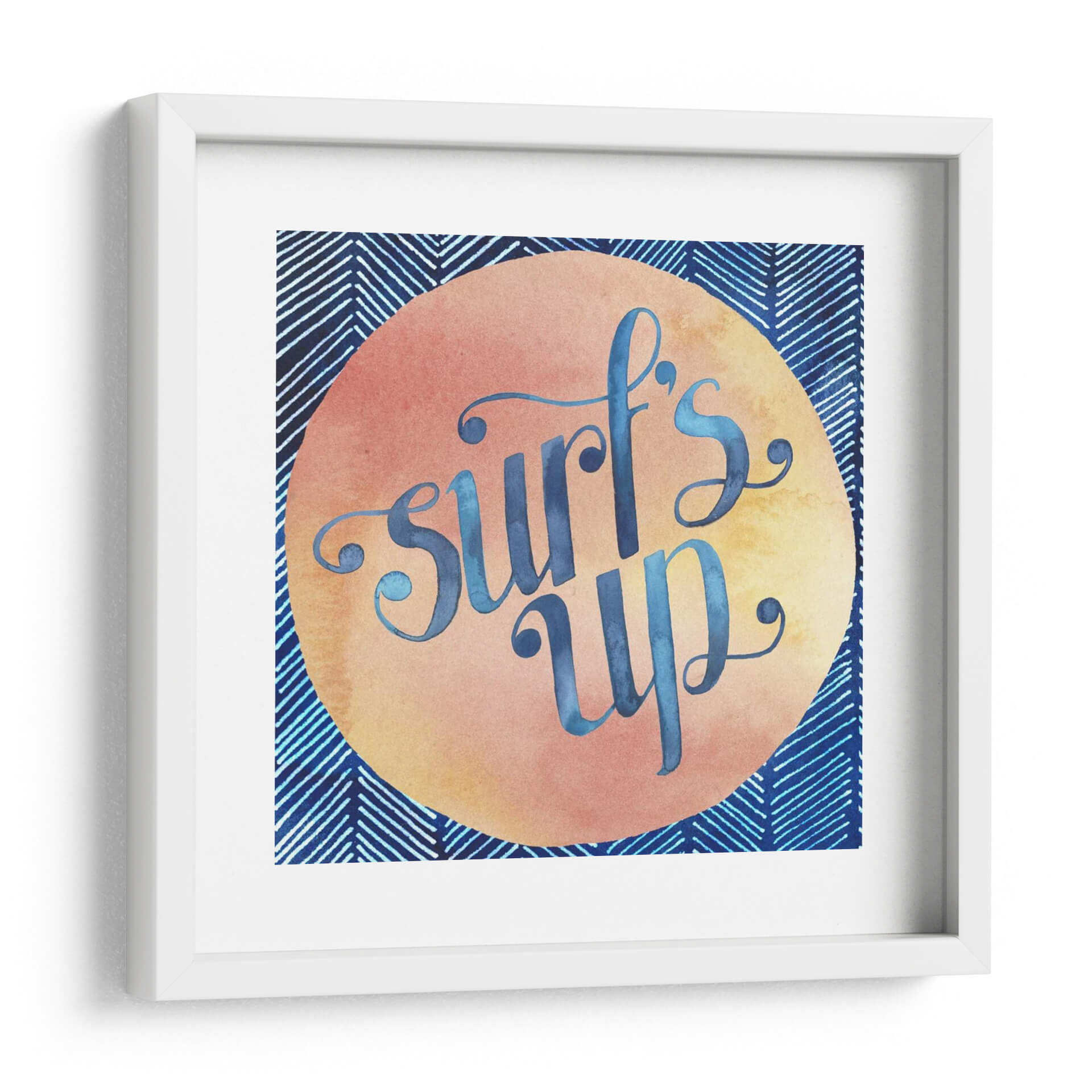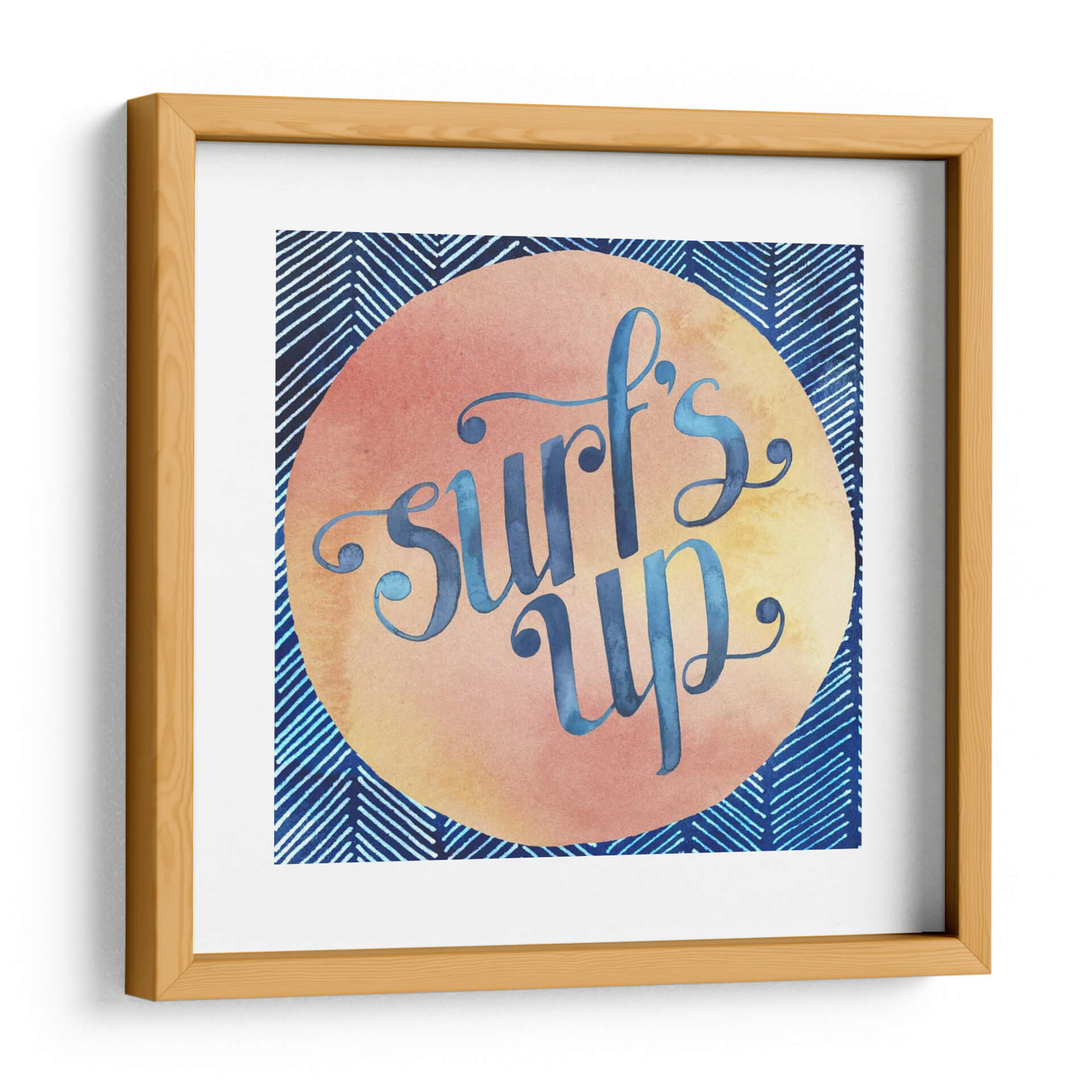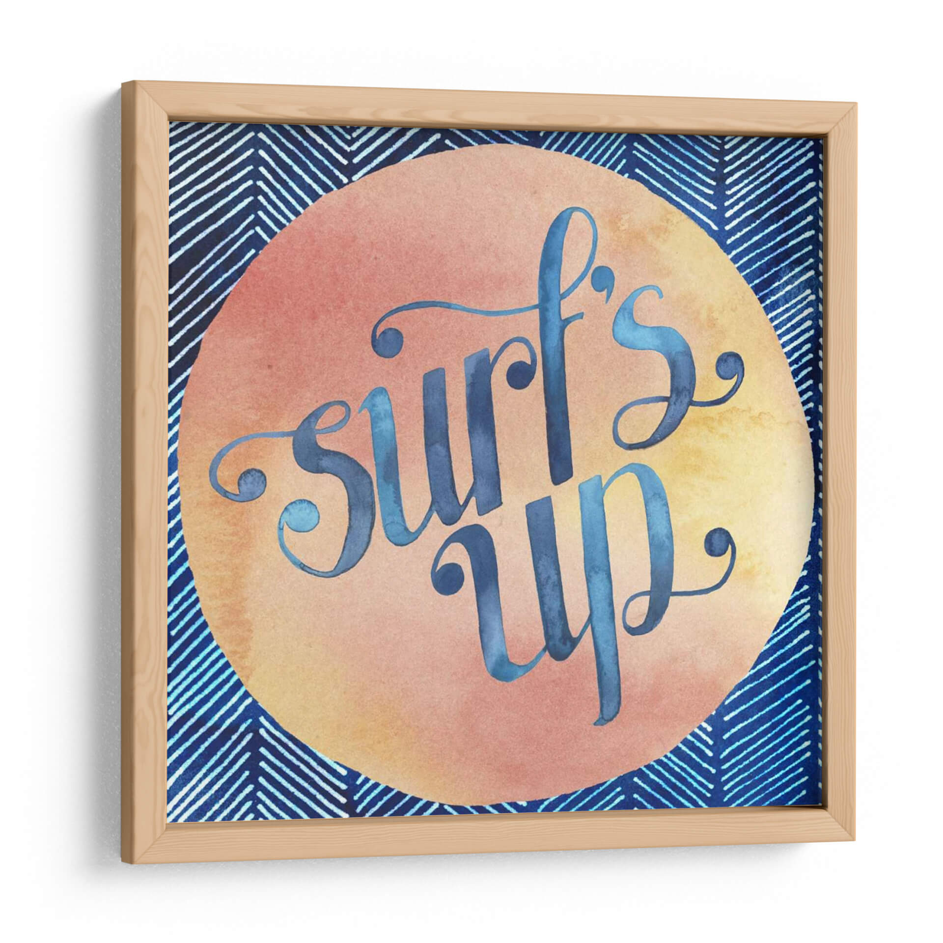 Transforma tu espacio con el vibrante cuadro decorativo "Navega Por Ii" de Grace Popp, una obra que captura la esencia del verano y la energía del océano. Esta pieza presenta la frase "surf's up" escrita en una tipografía fluida y manuscrita, en tonos azules que contrastan sutilmente con un fondo en acuarela de cálidos tonos anaranjados y rosados. Un borde texturizado con un patrón geométrico en azul marino y blanco enmarca la composición circular, añadiendo profundidad y un toque moderno. "Navega Por Ii" evoca una sensación de alegría despreocupada y aventura, perfecta para inyectar optimismo y un estilo playero chic a cualquier habitación. Su estilo contemporáneo y su paleta de colores armoniosa la convierten en una adición versátil para salones, dormitorios, estudios o incluso espacios comerciales que buscan un aire fresco y juvenil. Ideal para quienes aman el mar, los deportes acuáticos o simplemente desean incorporar un mensaje inspirador y visualmente atractivo en su decoración. Añade este cuadro decorativo a tu pared y deja que la brisa marina invada tu hogar, creando un ambiente relajado y lleno de vida.