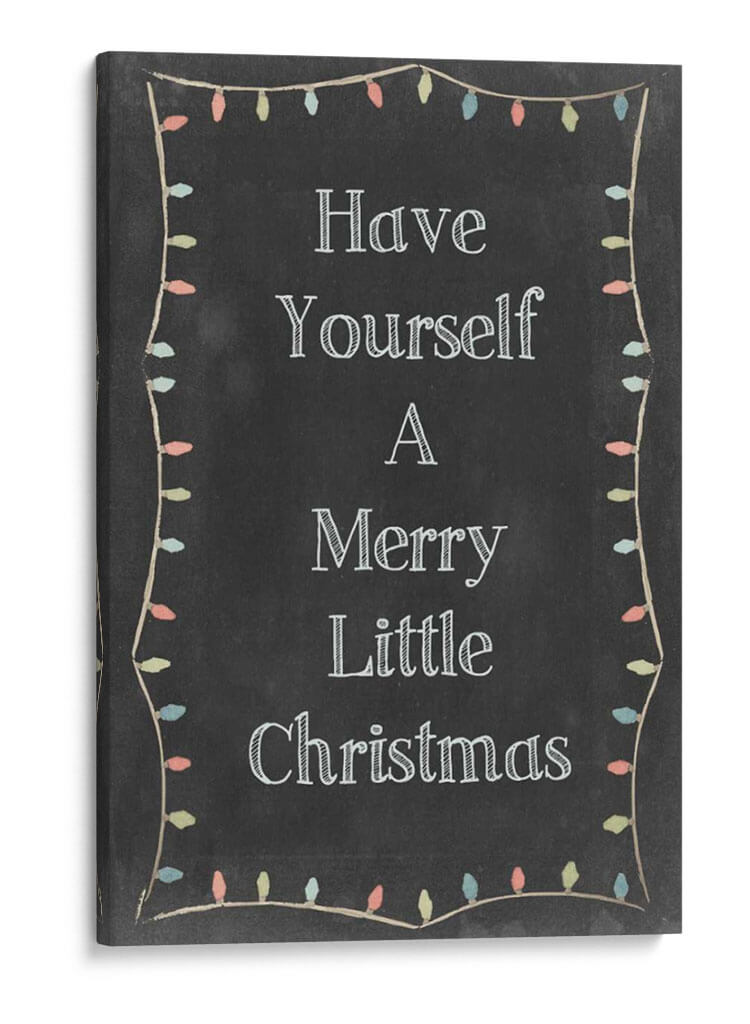 Celebra la magia de la temporada con "Navidad Brillo III", una obra de arte que evoca la calidez y la alegría de las fiestas. Este cuadro decorativo presenta un diseño inspirado en un pizarrón, con la icónica frase "Have Yourself A Merry Little Christmas" escrita en una tipografía blanca y estilizada, como si estuviera plasmada con tiza. Alrededor del texto, una hilera de luces navideñas de colores pastel ilumina sutilmente el fondo oscuro, añadiendo un toque festivo y encantador. La composición es sencilla pero efectiva, centrada en el mensaje de buenos deseos, lo que la convierte en una pieza ideal para infundir espíritu navideño en cualquier espacio. Su estilo rústico y a la vez moderno se adapta perfectamente a salones, comedores o incluso oficinas, creando un ambiente acogedor y celebratorio. "Navidad Brillo III" es más que una simple decoración; es una invitación a la felicidad y la unión familiar durante la época más especial del año, un recordatorio visual de la dulzura de la Navidad.