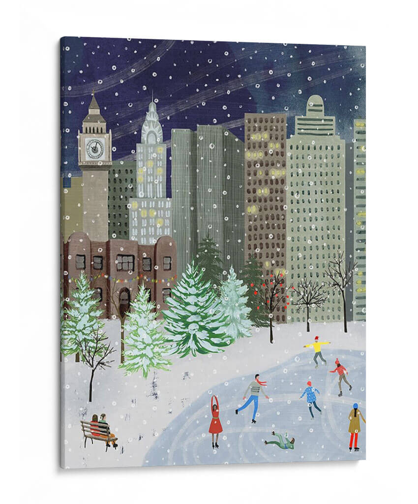 Captura la magia invernal de la ciudad con "Navidad En La Ciudad I", una obra de arte que evoca la alegría y el encanto de las festividades. Esta pieza visualmente cautivadora presenta un paisaje urbano nevado con icónicos rascacielos que brillan bajo un cielo estrellado y oscuro, salpicado por copos de nieve. En primer plano, una vibrante pista de patinaje cobra vida con figuras danzantes y alegres, capturando la esencia de la diversión y la comunidad invernal. Árboles de Navidad decorados con luces festivas y frondosos pinos cubiertos de nieve añaden un toque de calidez y espíritu navideño al escenario. La paleta de colores, dominada por azules profundos, blancos puros y toques cálidos de luces amarillas y rojas, crea una atmósfera acogedora y festiva. El estilo distintivo de Grace Popp, con su enfoque encantador y detallado, transforma una escena cotidiana en una celebración artística. "Navidad En La Ciudad I" es ideal para infundir a tu hogar u oficina una sensación de nostalgia y celebración. Este cuadro decorativo es perfecto para quienes buscan añadir un toque de alegría festiva y un punto focal encantador a su decoración, ya sea en la sala de estar, un dormitorio acogedor o un espacio de trabajo.